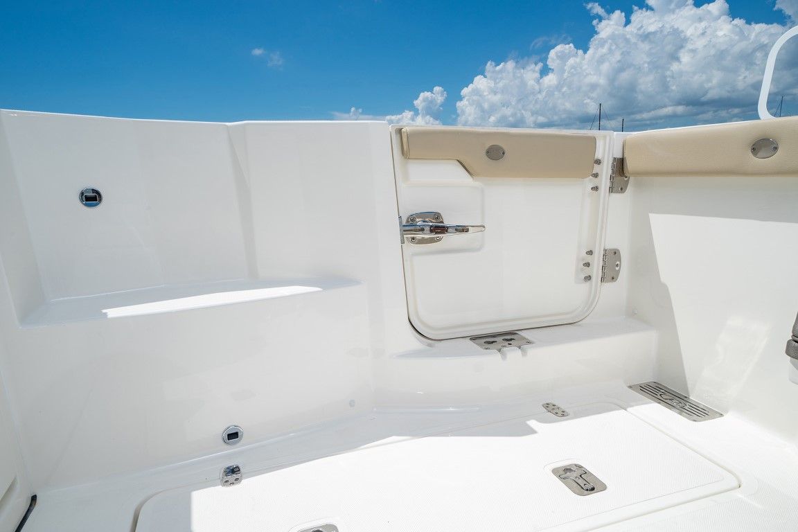 The Pursuit 326 DC is as practical as it is stylish. Thoughtful storage compartments make it easy to keep the deck clutter-free, while the intuitive layout simplifies movement around the boat. Docking is a breeze thanks to the responsive handling and well-placed cleats, making it easy to tie up at your favorite marina or waterfront restaurant. The efficient hull design contributes to fuel savings, allowing you to spend more time on the water and less time refueling. Whether you are planning a quick day trip or an extended adventure, this dual console boat for sale is equipped to meet your needs with ease and convenience.