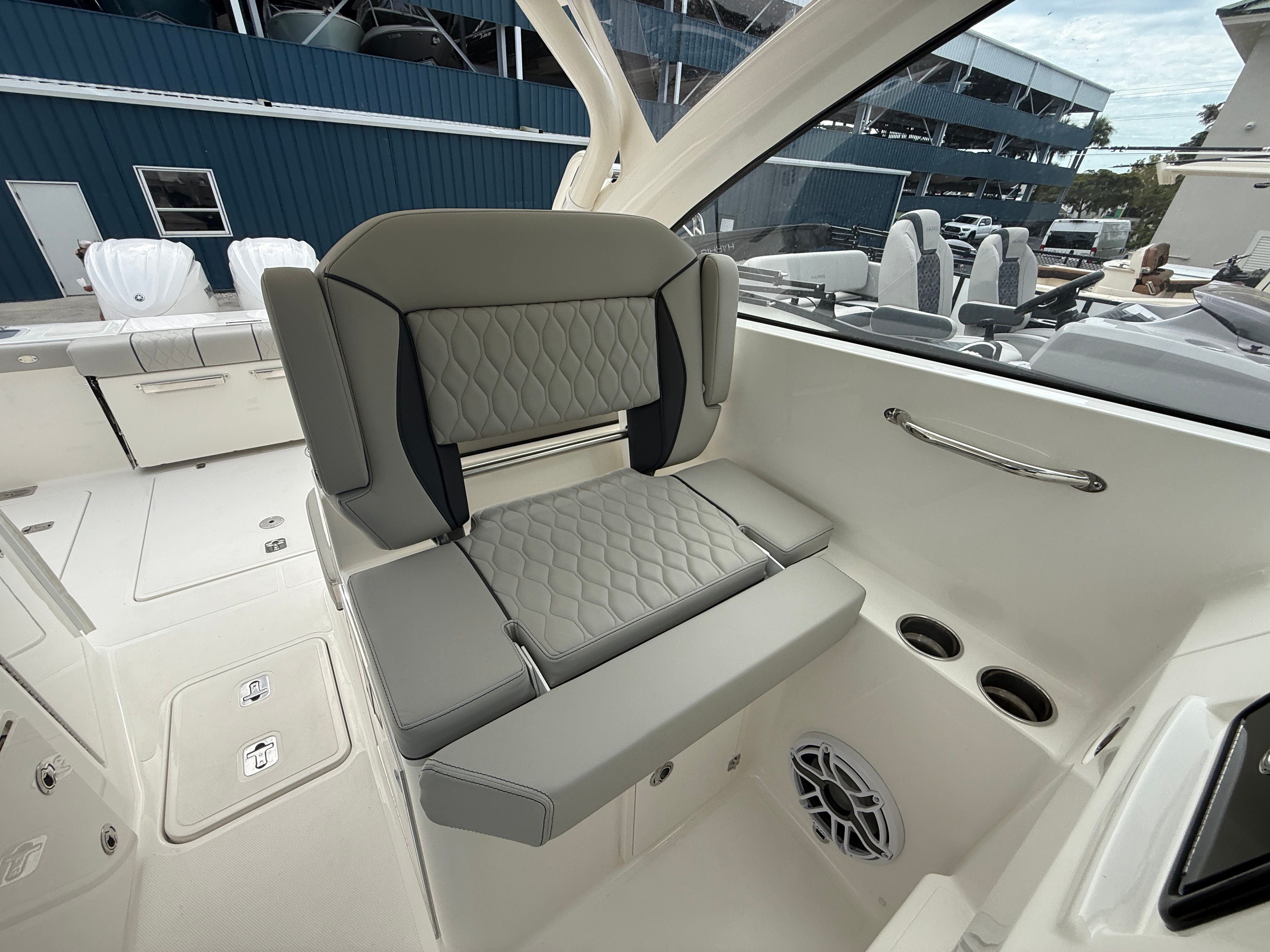 The Pursuit DC 306 is engineered for practical, everyday enjoyment. Its nearly 32-foot length strikes the perfect balance between spaciousness and maneuverability, making docking and storage straightforward even in busy marinas. The efficient twin Yamaha engines not only provide impressive power but also offer excellent fuel economy, allowing you to spend more time on the water and less time refueling.The inclusion of dockside power ensures that your onboard systems remain operational during overnight stays or extended trips, while the dedicated storage solutions keep your gear organized and your deck clutter-free. The stainless steel refrigerator/freezer is perfect for keeping snacks and beverages cold, making it easy to entertain guests or prepare for a day of fishing.