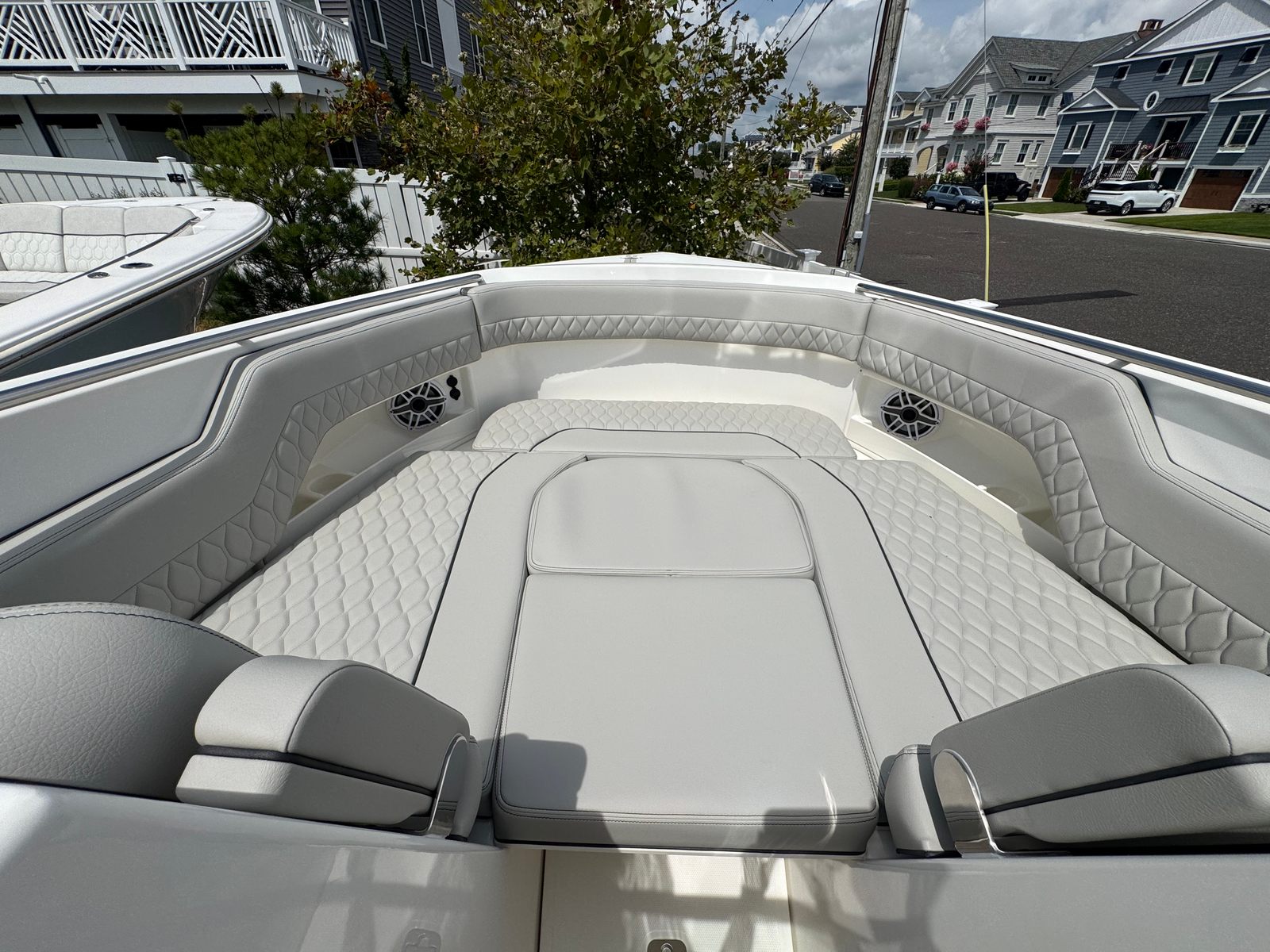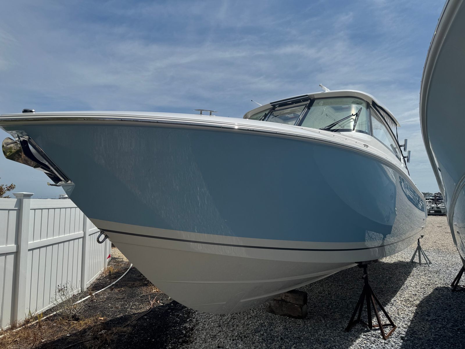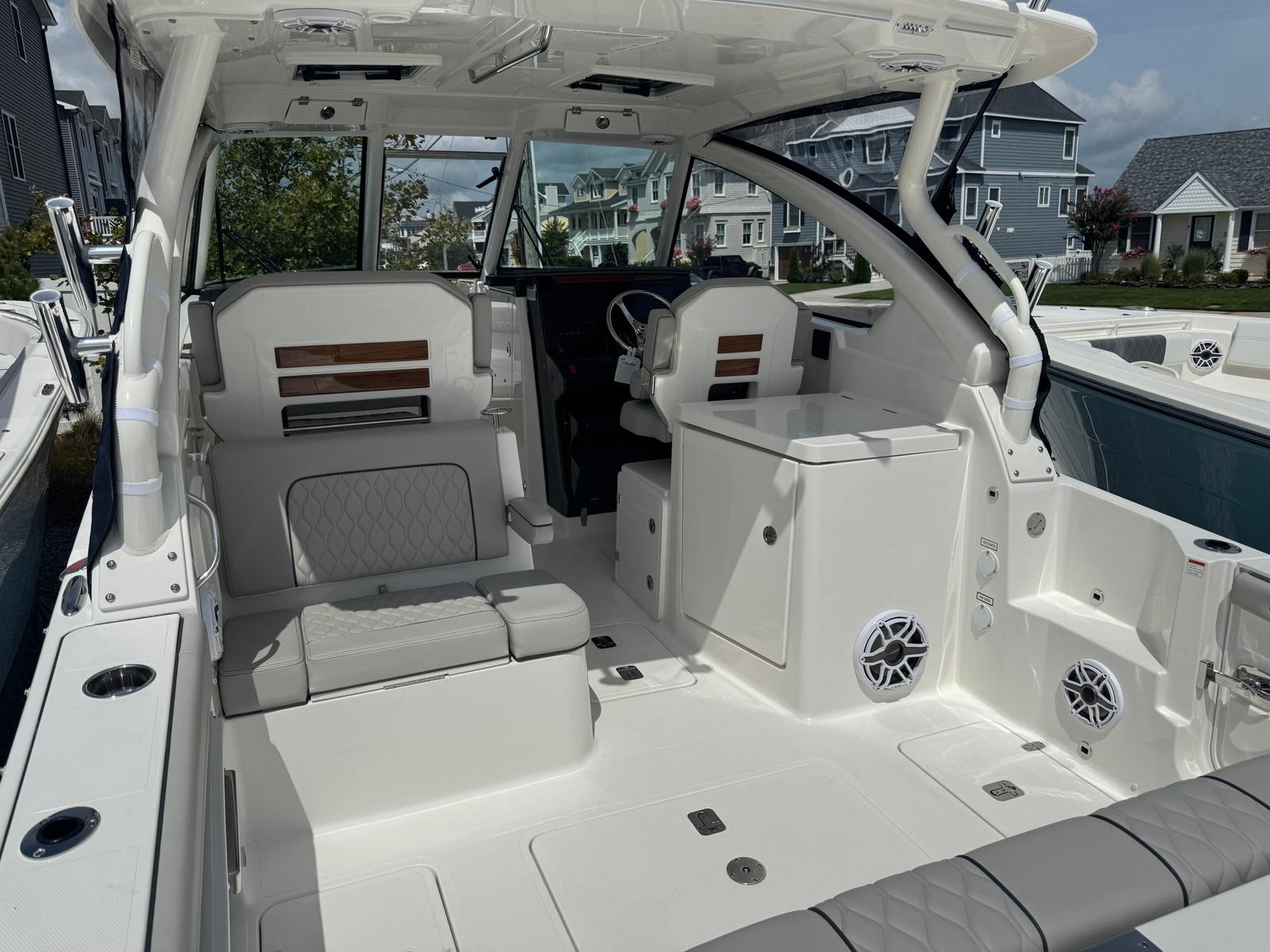 Practicality is at the core of the Pursuit DC 306’s design. The dual console layout provides excellent protection from the elements, allowing you to enjoy your boat in a variety of weather conditions. The dedicated storage solutions, including the fiberglass cockpit table storage and the stainless steel refrigerator/freezer, keep your gear organized and your refreshments chilled. Dockside power ensures that you have the energy you need for extended stays at the marina or overnight trips.The DC 306’s manageable size makes it easy to dock and maneuver, even in crowded marinas or tight spaces. The efficient twin Yamaha engines offer a balance of power and fuel economy, reducing operating costs and maximizing your time on the water. Whether you are heading out for a quick afternoon cruise or planning a weekend getaway, this Pursuit boat for sale is ready to meet your needs.