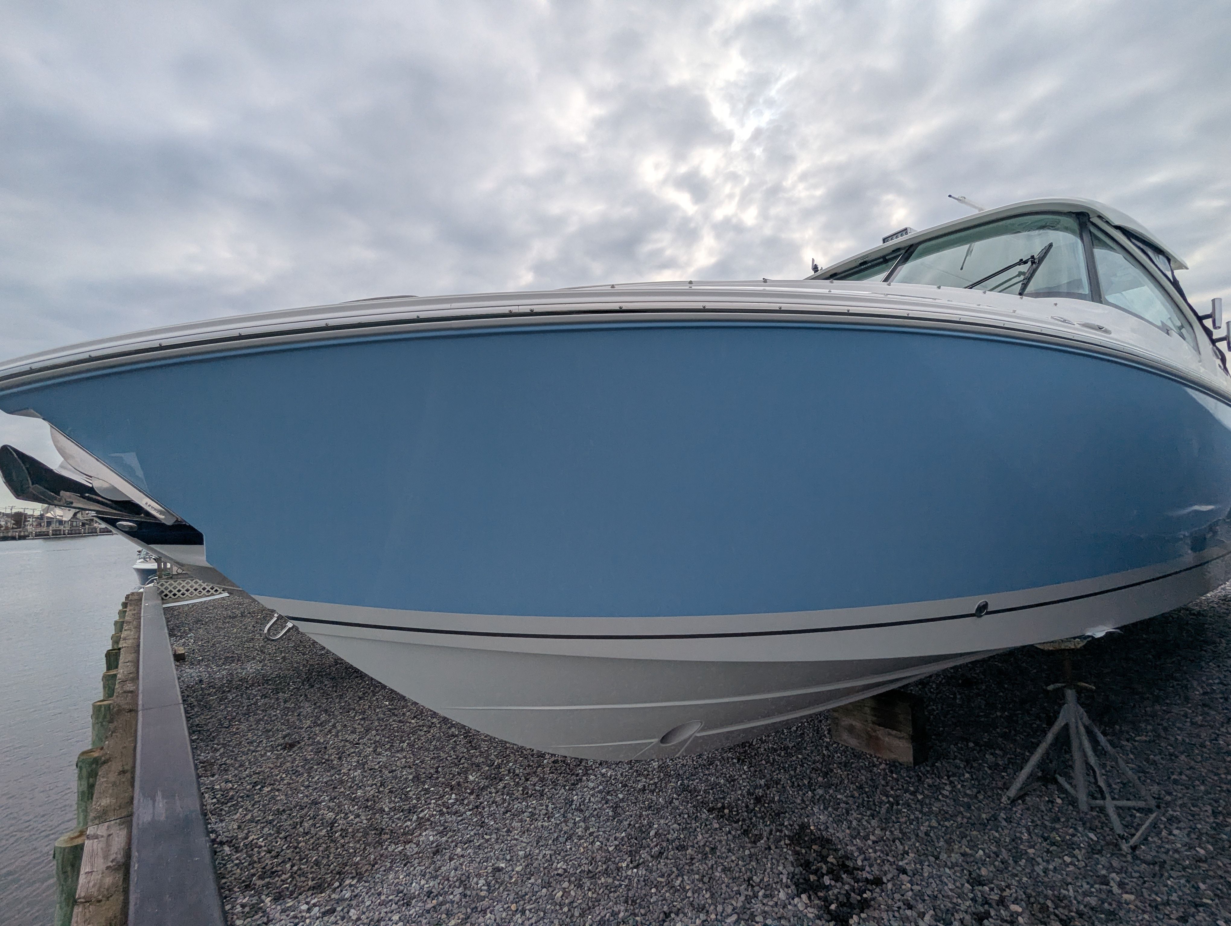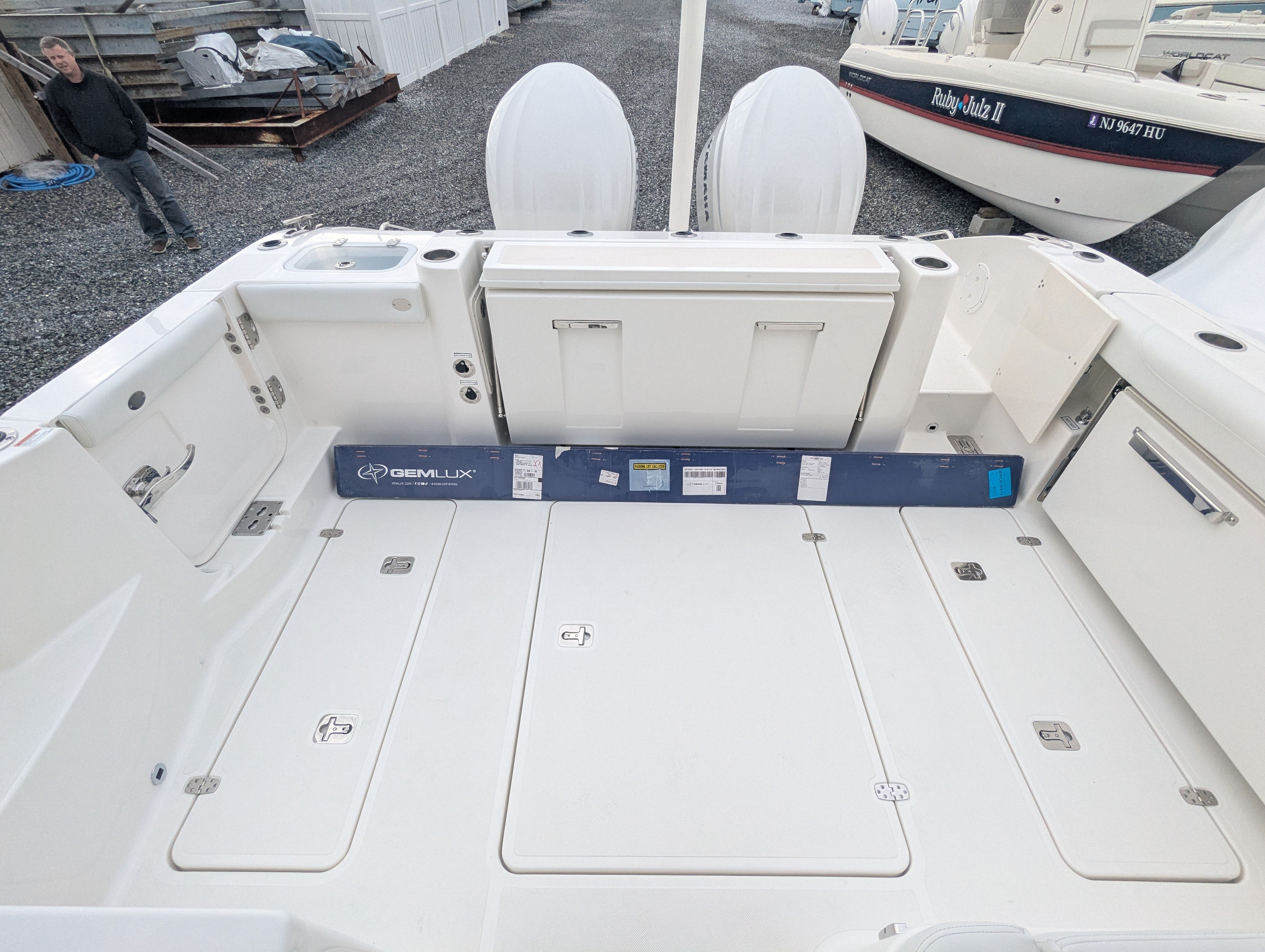 The Pursuit DC 326 is a 34.5-foot dual console boat that represents the pinnacle of modern marine engineering. Built for the 2026 season, this vessel is brand new and ready to deliver unforgettable adventures. The Arctic Blue hull, accented with an Arctic White and Quartz Gray bootstripe, gives the DC 326 a sleek, contemporary look that turns heads at every marina. Inside, the Tranquil Sea interior and upgraded white/gray upholstery create a relaxing and elegant atmosphere, making every outing feel like a luxury getaway.