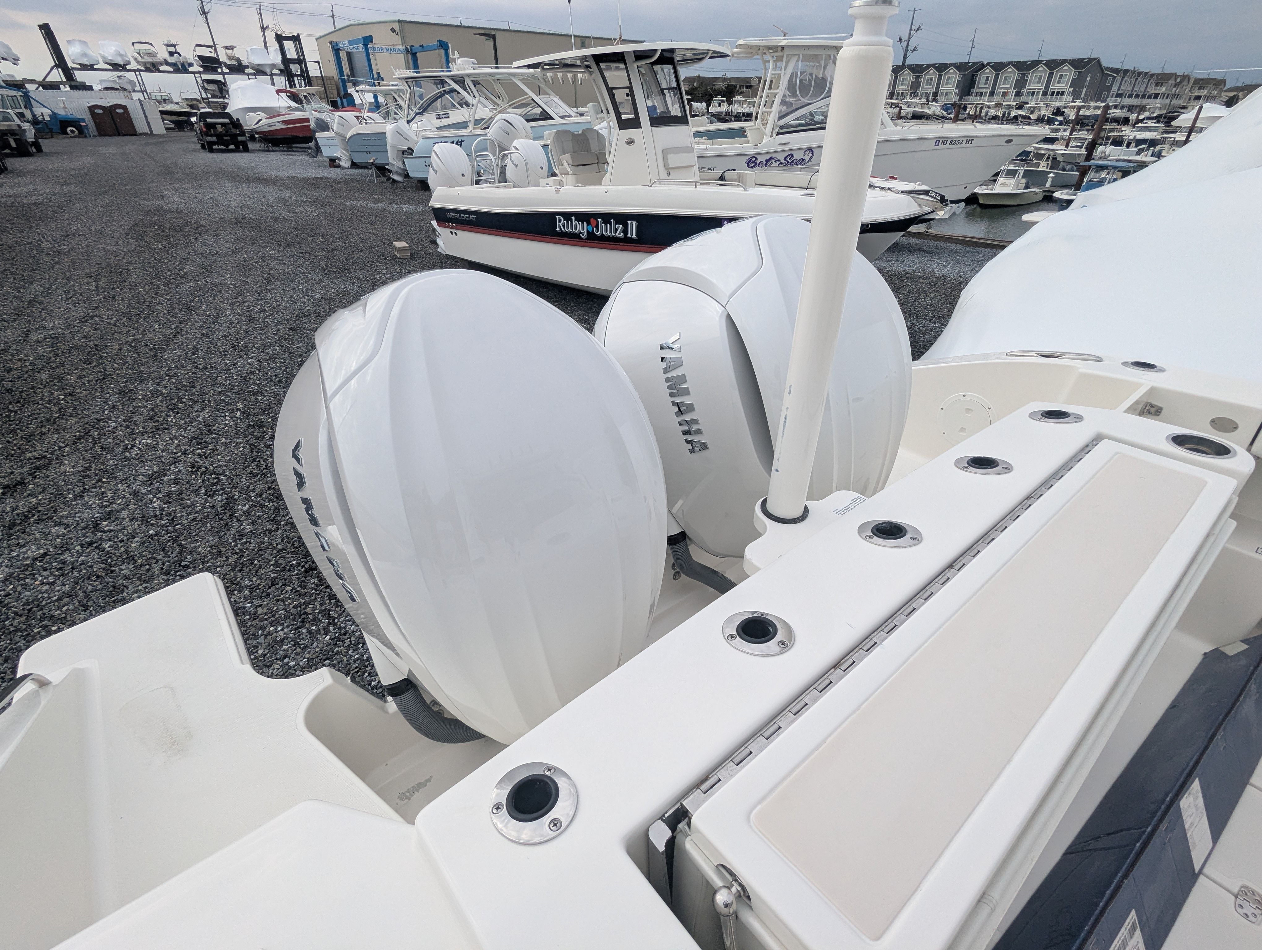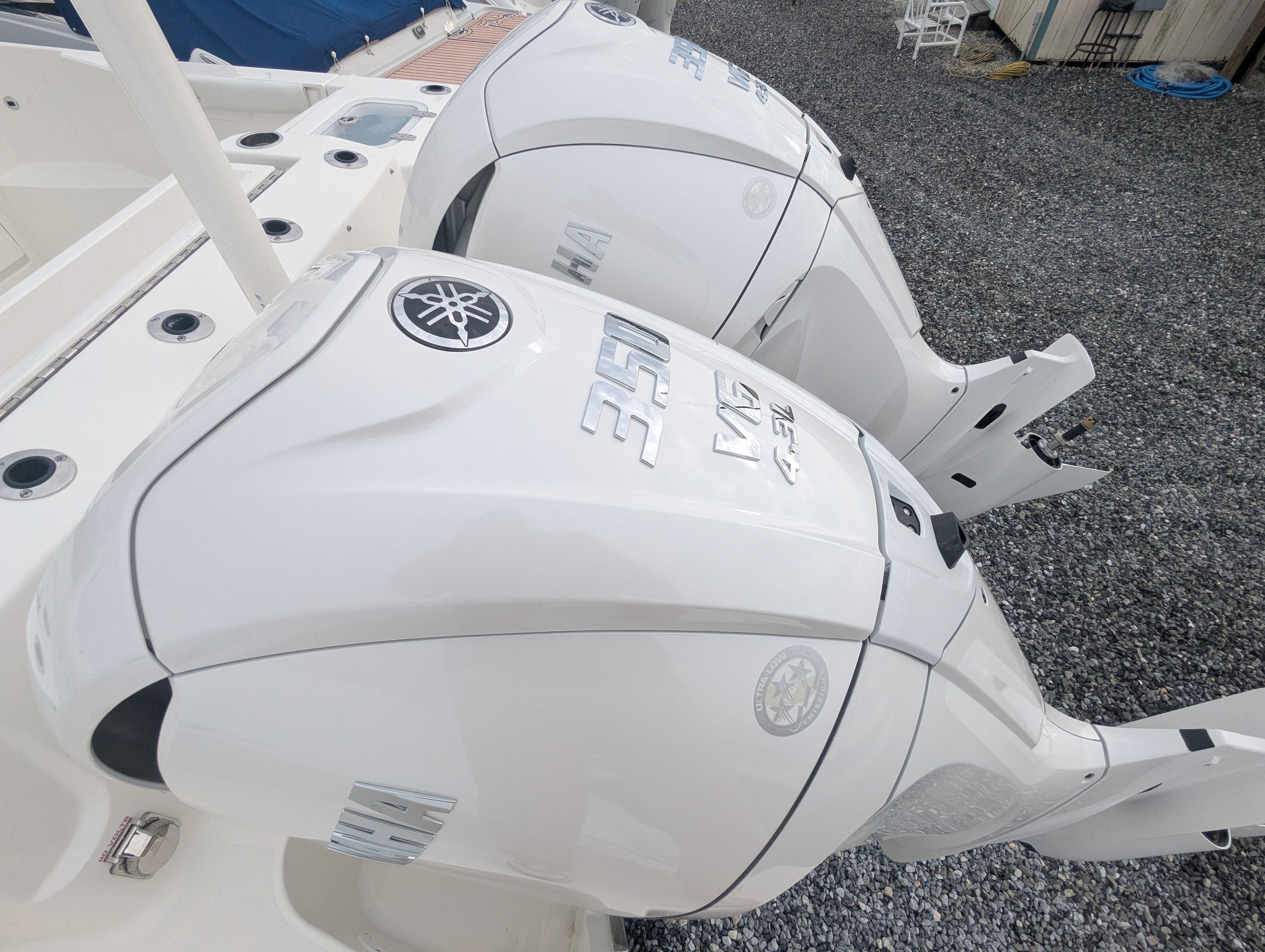 - Twin Yamaha® Digital F350 V6 Offshore (Pearlescent White) w/Integrated Digital Electric Steering (DES) and Helm Master® EX Digital Electronic Control (DEC) (does not include joystick control), Multifunction Display Interface and Manual Engine Flushing System