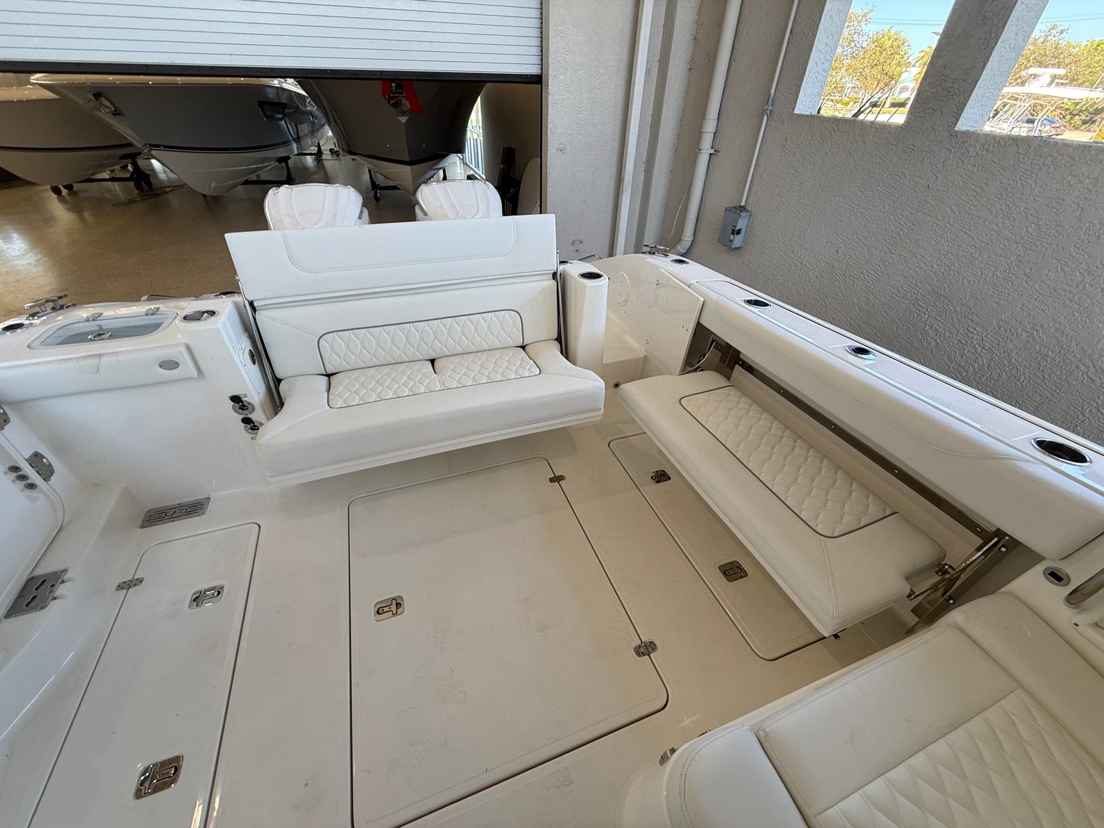 The Pursuit DC 326 is designed with practicality in mind, making ownership as enjoyable as it is rewarding. The joystick control system simplifies docking and maneuvering, reducing stress and increasing confidence for boaters of all experience levels. The efficient twin Yamaha F350 engines offer a balance of power and fuel economy, allowing you to explore further without frequent refueling stops.Ample storage throughout the boat ensures you have space for gear, water toys, and personal items, keeping the deck clutter-free and organized. The integrated cooler with chill plate and cockpit grill make it easy to entertain guests, while the air conditioning package and retractable sunshade provide comfort in any weather. The diesel generator supports all your electrical needs, from charging devices to running appliances, so you can enjoy extended stays on the water without compromise.