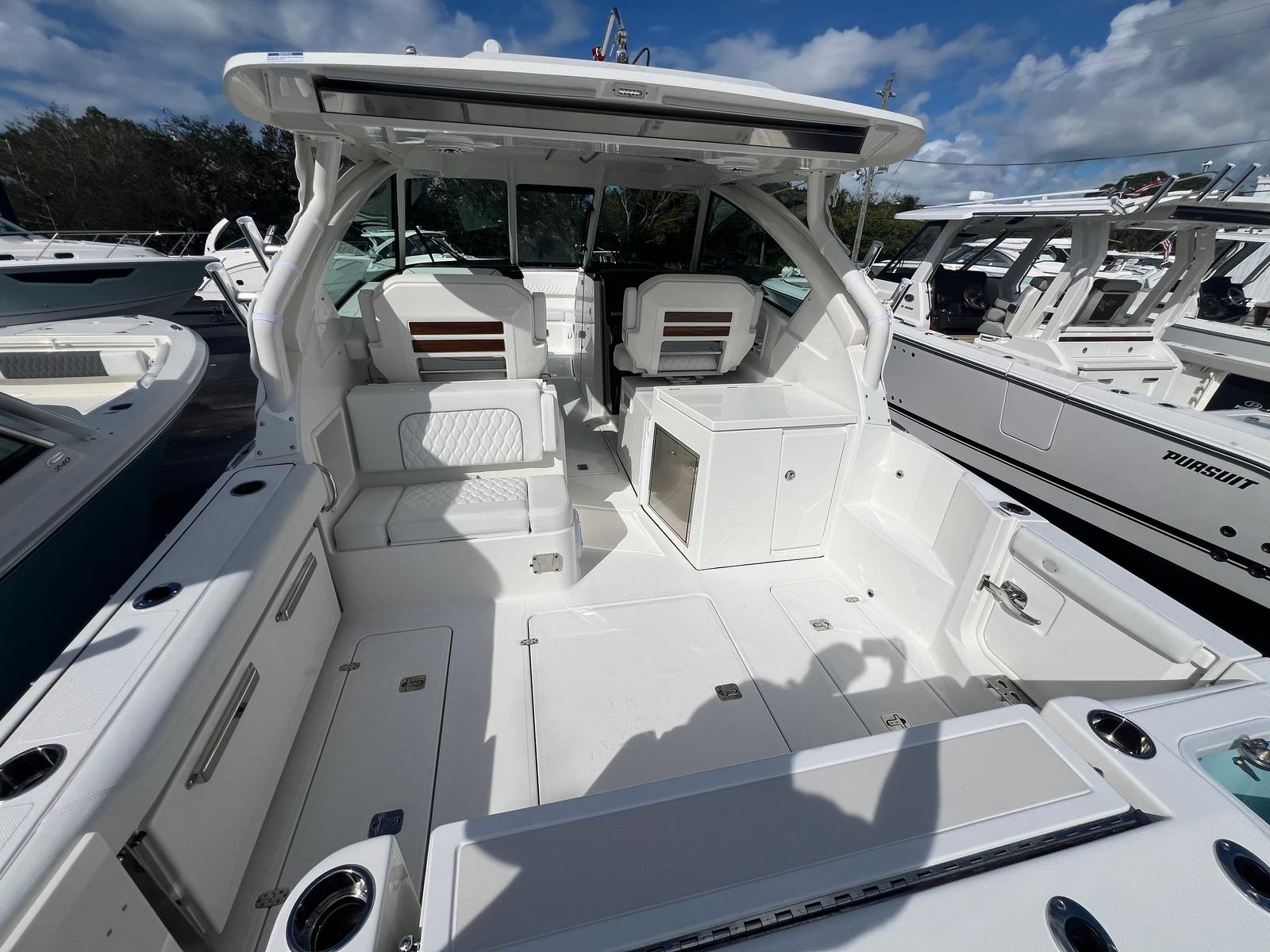 The Pursuit DC 326 is designed with practicality in mind, making ownership as enjoyable as it is effortless. The ample storage throughout the boat ensures that all your gear, water toys, and personal items have a designated place, keeping the deck clutter-free and organized. Docking and maneuvering are made easy thanks to the responsive twin Yamaha engines and intuitive helm controls.The efficient generator provides reliable power for all your onboard amenities, so you can enjoy extended trips without sacrificing comfort. The air conditioning system, combined with the retractable sunshade, allows you to create the perfect environment for relaxation, no matter the weather. The cockpit grill and cooler make it simple to prepare and enjoy meals on the go, adding convenience to your boating lifestyle.