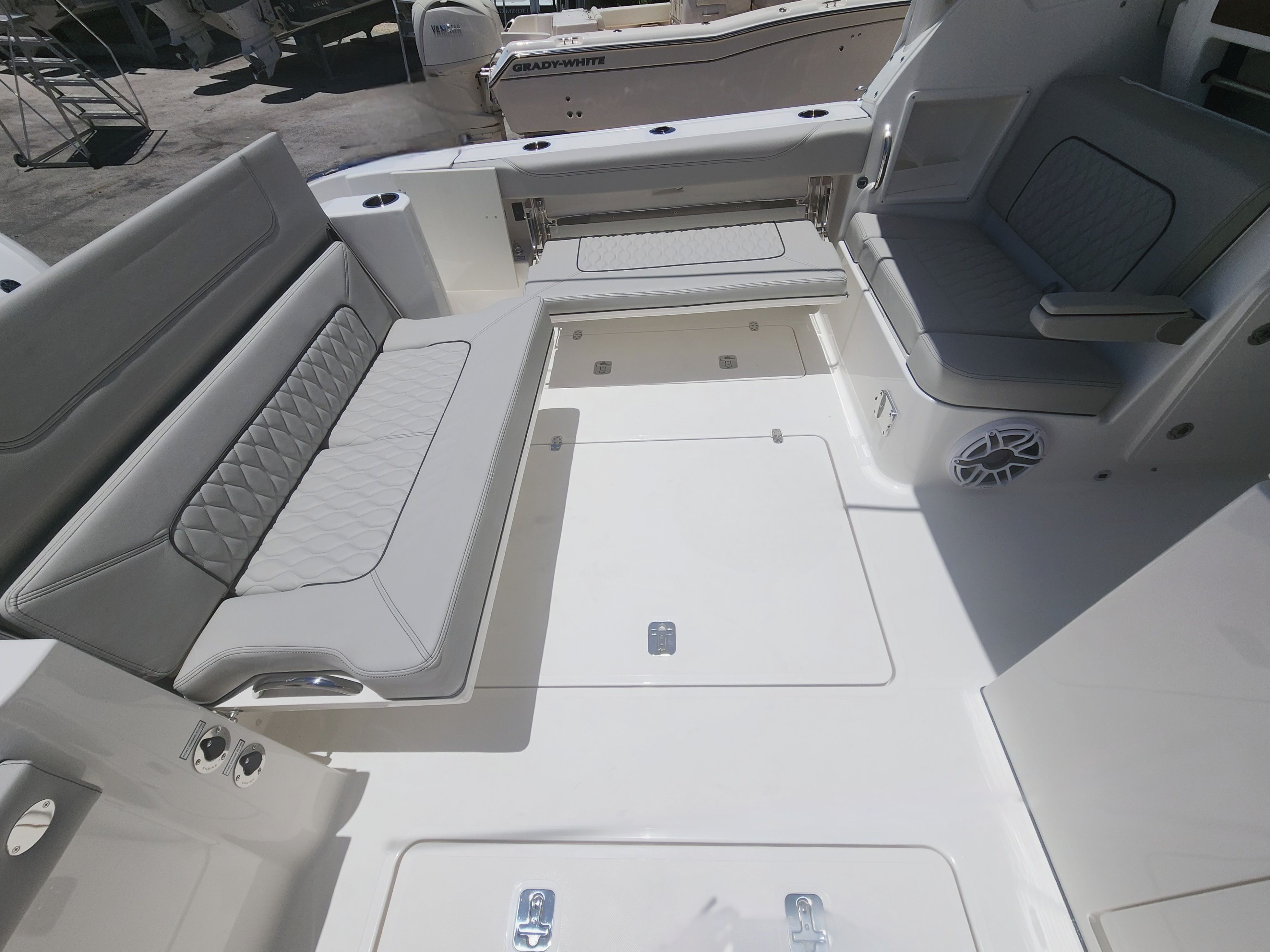 Beyond its impressive performance and luxurious features, the Pursuit DC 326 is designed with practicality in mind. The dual console configuration offers excellent storage options for gear, water toys, and personal belongings, keeping the deck clutter-free and organized. The joystick control system simplifies docking, making it accessible even for less experienced boaters. Fuel efficiency is optimized by the advanced Yamaha engines, allowing you to spend more time enjoying the water and less time refueling.The integrated genset and air conditioning package provide reliable comfort during overnight stays or long days on the water, while the cockpit grill adds a new dimension to onboard dining. The underwater lights not only enhance the boat’s appearance but also improve visibility and safety during nighttime activities. Every aspect of the DC 326 is engineered to make ownership as enjoyable and hassle-free as possible.