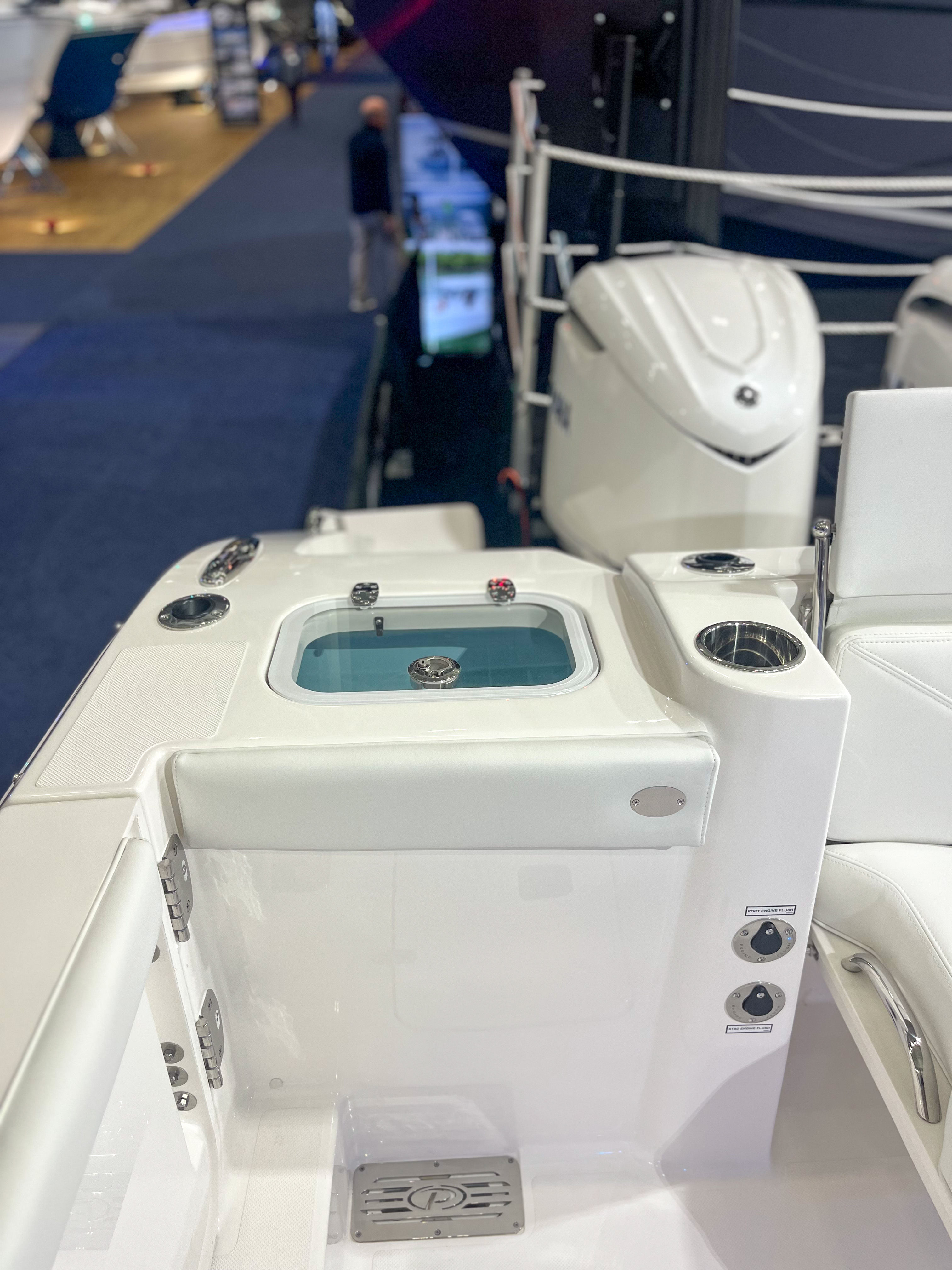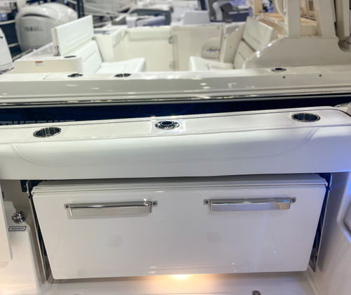 Powering the Pursuit DC 326 are twin Yamaha Digital F350 V6 Offshore engines in a stunning Pearlescent White finish. With a combined 700 horsepower, this dual console boat for sale is engineered for exhilarating performance and smooth handling, whether you’re slicing through open water or maneuvering into a tight slip. The integrated Digital Electric Steering (DES) and Helm Master EX Digital Electronic Control (DEC) system provide precise control and effortless navigation, while the Yamaha Joystick Control with full maneuverability, Set Point, and Autopilot functions make docking and close-quarters handling a breeze. The manual engine flushing system ensures easy maintenance, keeping your engines in peak condition for years to come.