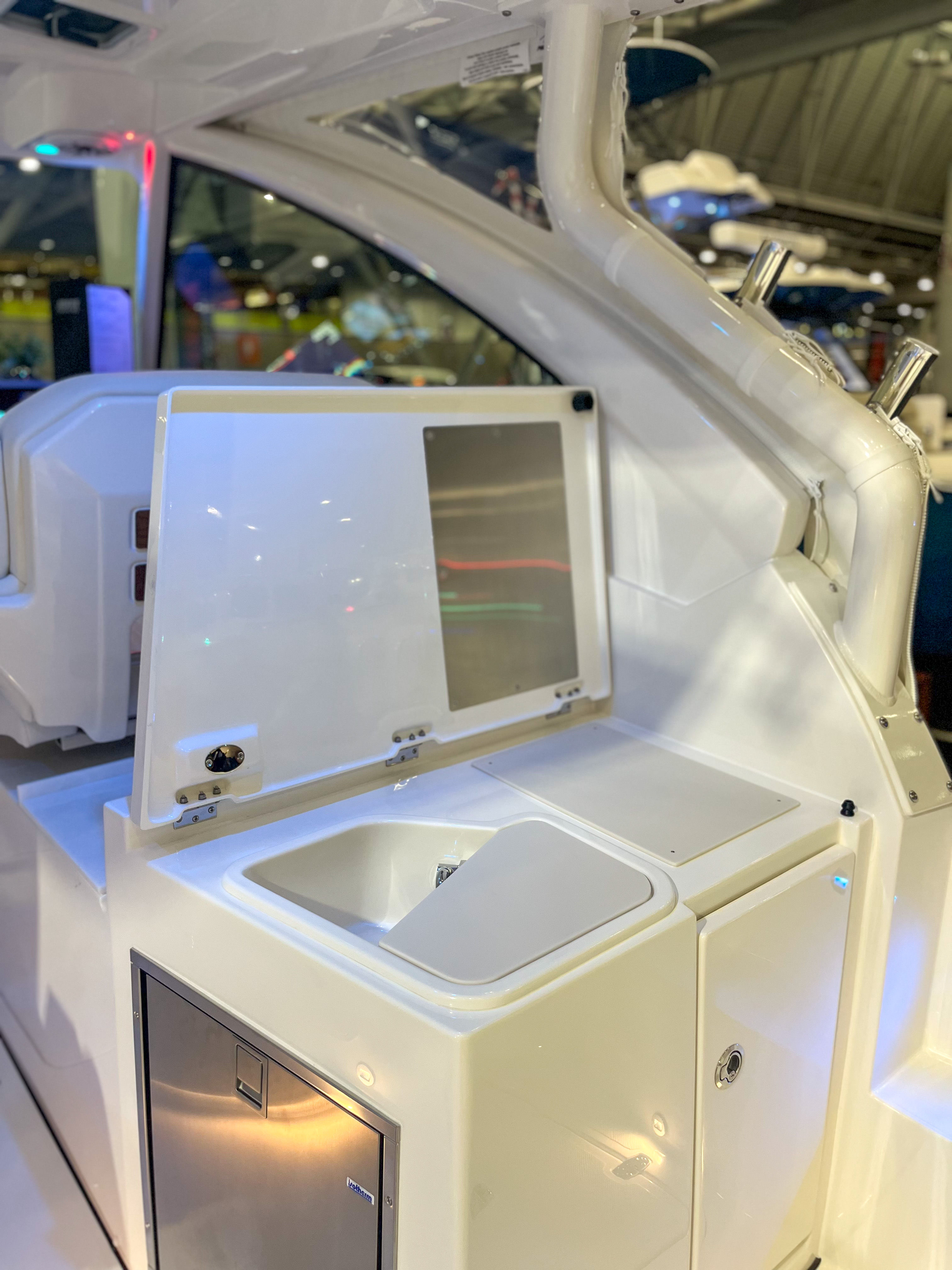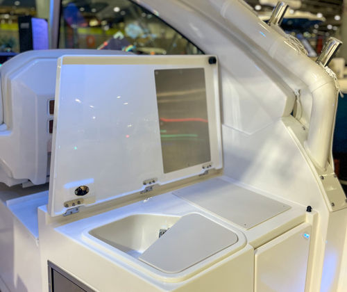The Pursuit DC 326 is as practical as it is luxurious. The Yamaha Joystick Control with Set Point and Autopilot functions simplifies docking and maneuvering, reducing stress and making it easy to handle the boat solo or with a small crew. The manual engine flushing system streamlines maintenance, helping you protect your investment and maximize time on the water.Storage solutions are thoughtfully integrated throughout the boat, including the bridge deck teak table with dedicated storage, ensuring your gear and essentials are always within reach but never in the way. The hardtop-mounted rod holders keep fishing equipment organized and accessible, while the stowable sunshade offers flexible protection from the elements.