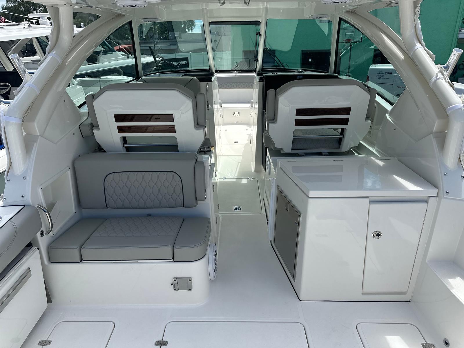 Powering the Pursuit DC 326 are two robust engines, delivering a combined 700 horsepower. This impressive setup ensures exhilarating acceleration, smooth cruising, and reliable handling in a variety of water conditions. Whether you’re navigating coastal waters or venturing offshore, the DC 326’s twin engines provide the confidence and power you need for every adventure. The advanced engineering behind this Dual Console boat guarantees a responsive ride, excellent fuel efficiency, and the ability to reach your favorite destinations quickly and comfortably.