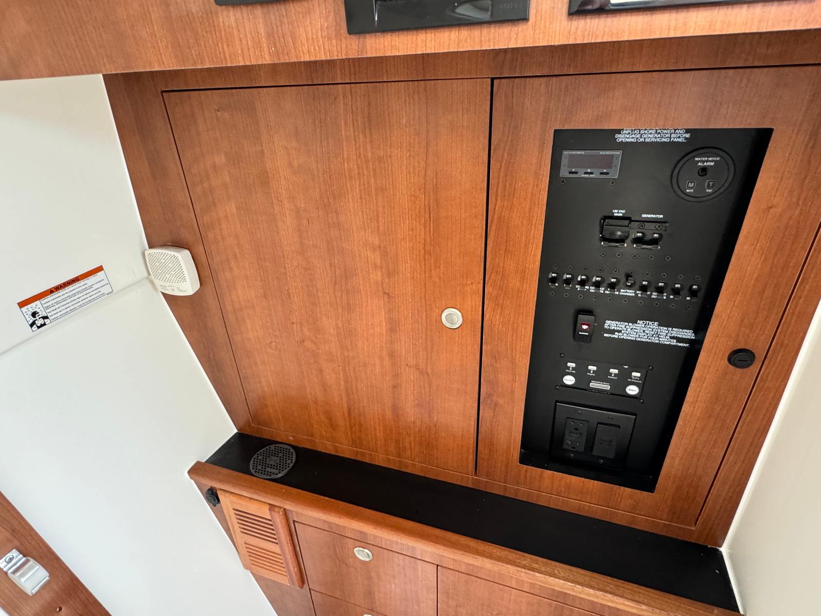 The Pursuit DC 326 is packed with special features designed to enhance your boating experience. The 110V/60Hz cockpit grill with drip pan lets you prepare delicious meals right on deck, perfect for entertaining friends and family. The 120V/60Hz generator (5.0kW Fischer Panda Genset) with a 16-gallon diesel tank provides reliable power for all your onboard systems, ensuring comfort and convenience wherever you go. The air conditioning package with reverse cycle (Cabin/Head 6,000 BTU, Cockpit 12,000 BTU) keeps the interior cool and comfortable, even on the hottest days, and is easily managed with the drop curtain. The bridge deck teak table with storage adds a touch of elegance and practicality, offering a perfect spot for dining, socializing, or simply relaxing with a view.