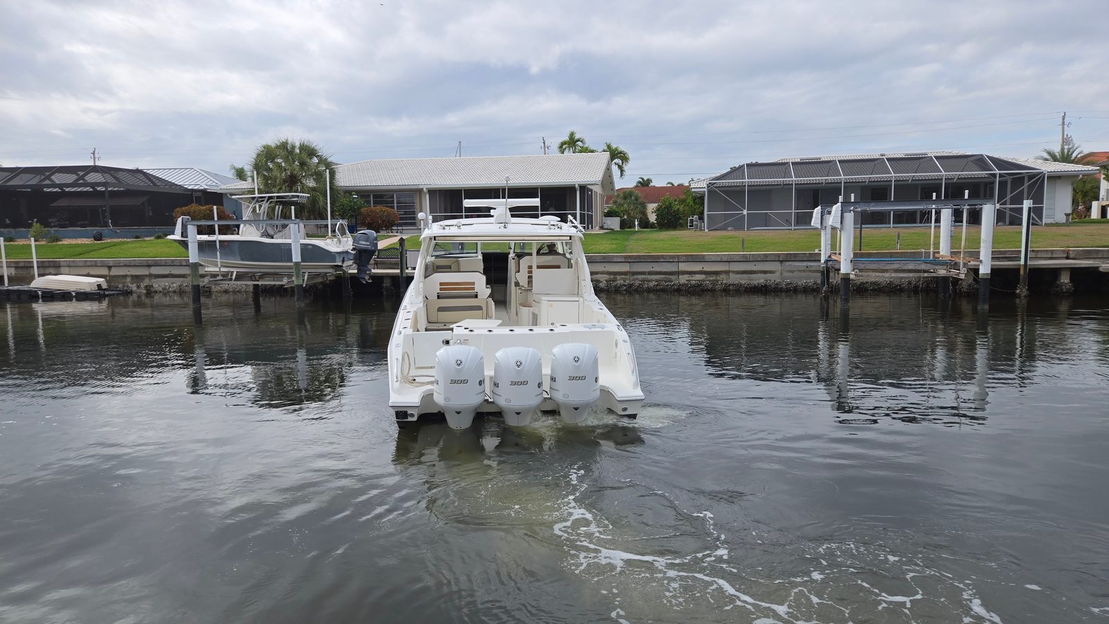 Performance: Power and precision define the performance of the Pursuit 365 DC. Equipped with three robust engines delivering a combined 900 horsepower, this Dual Console boat is engineered for exhilarating speed and smooth handling. With 650 engine hours, these motors have been well maintained and are ready to provide reliable performance for years to come. The triple engine setup ensures quick acceleration, effortless cruising, and the ability to tackle a variety of water conditions with confidence. Whether you’re navigating coastal waters or exploring offshore destinations, the Pursuit 365 DC offers the power and agility you need for a thrilling boating experience.