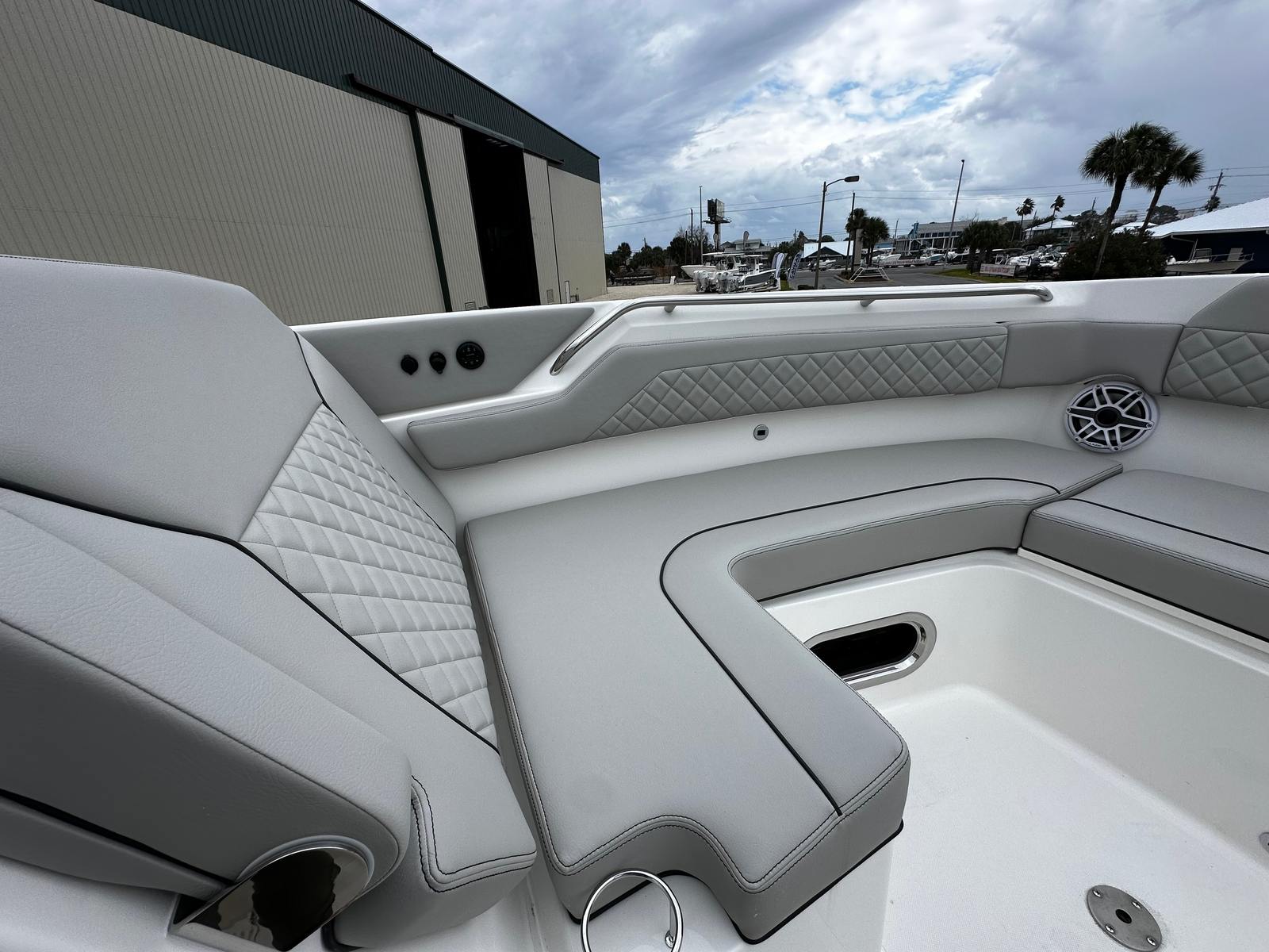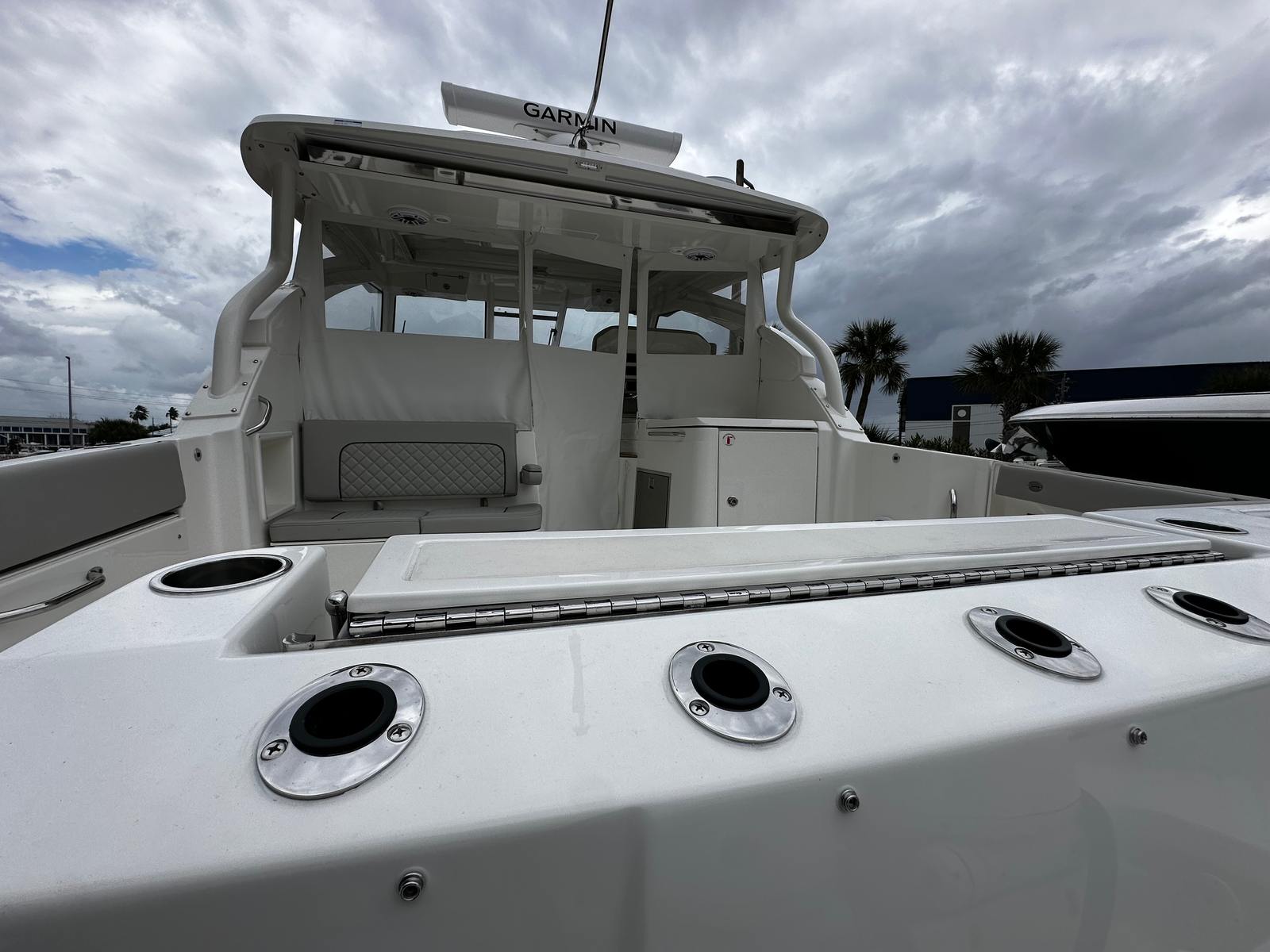 The 2025 Pursuit DC 365 measures an impressive 37.92 feet in length, offering ample space for relaxation, entertainment, and adventure. This new model is meticulously crafted to deliver a seamless blend of comfort and functionality, making it an ideal choice for boaters who appreciate both form and function. The sleek lines and modern profile of the DC 365 are accentuated by a striking black bootstripe, giving this Pursuit boat for sale a sophisticated and commanding presence on the water.