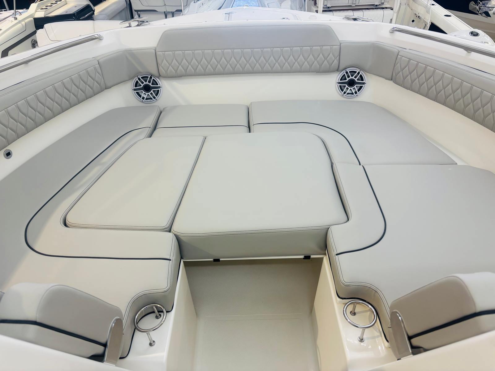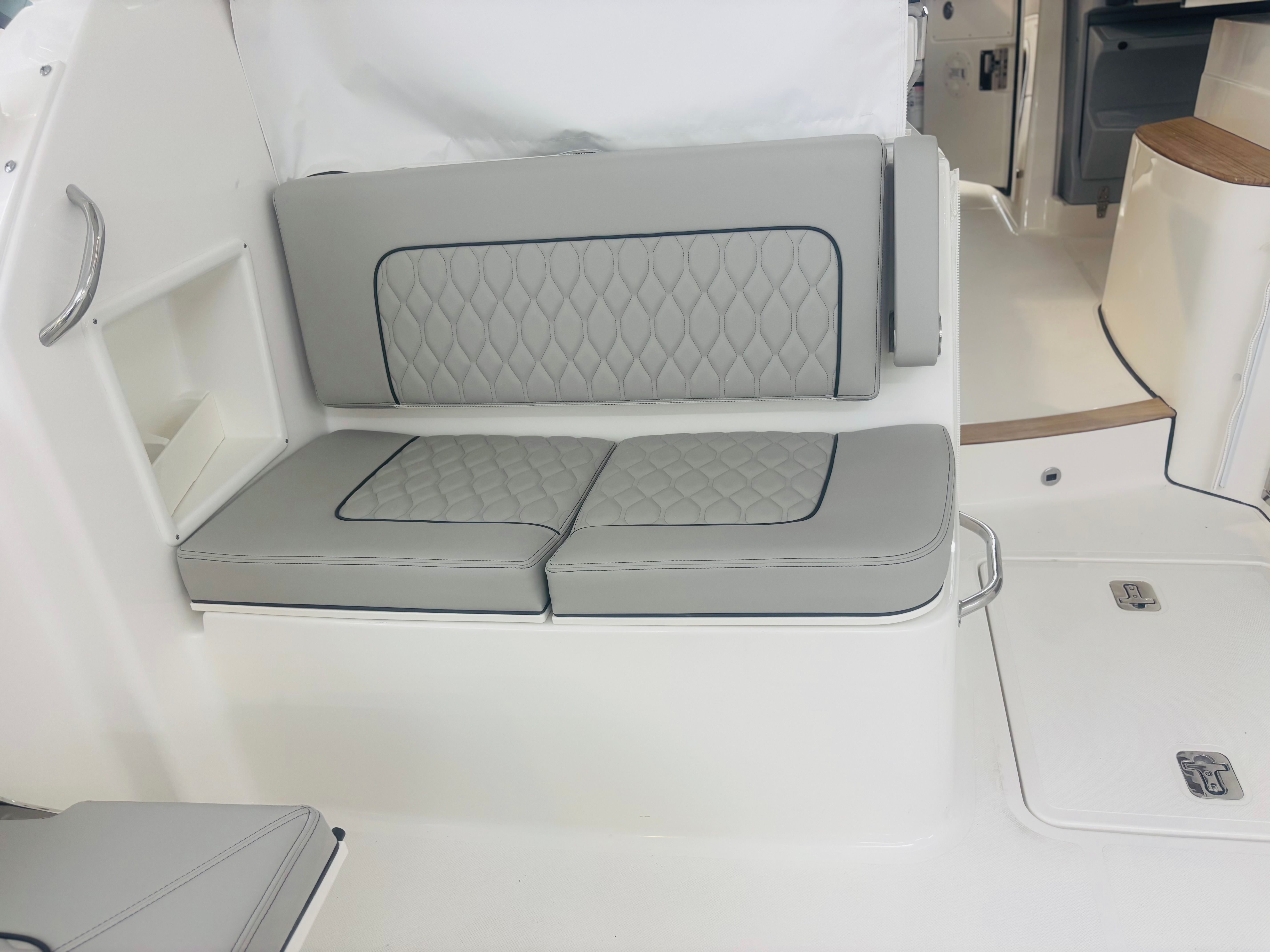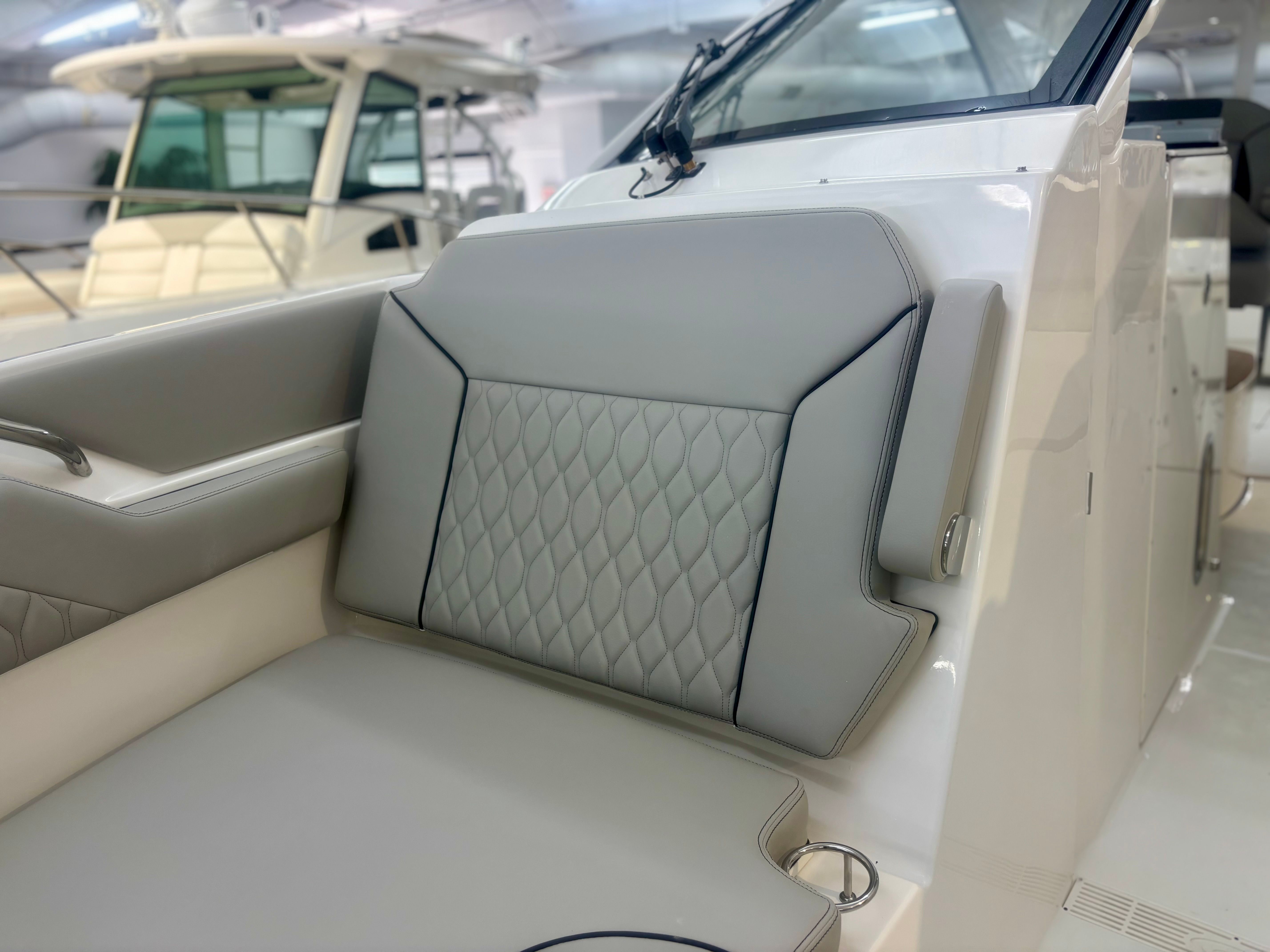 Owning the Pursuit DC 365 means embracing a lifestyle of fun, relaxation, and adventure. The spacious dual console layout is perfect for socializing, with plenty of seating and open areas for guests to mingle. The advanced air conditioning system and sunshades create a comfortable environment for all-day enjoyment, while the premium audio system sets the mood for any occasion.The triple Yamaha engines provide not only impressive speed and agility but also peace of mind with their reliability and advanced control systems. The joystick control and autopilot features make handling the boat intuitive, reducing stress and allowing you to focus on the fun. The SeaKeeper gyro stabilizer ensures everyone on board remains comfortable, even when the water gets rough, making it ideal for families and guests who may be new to boating.