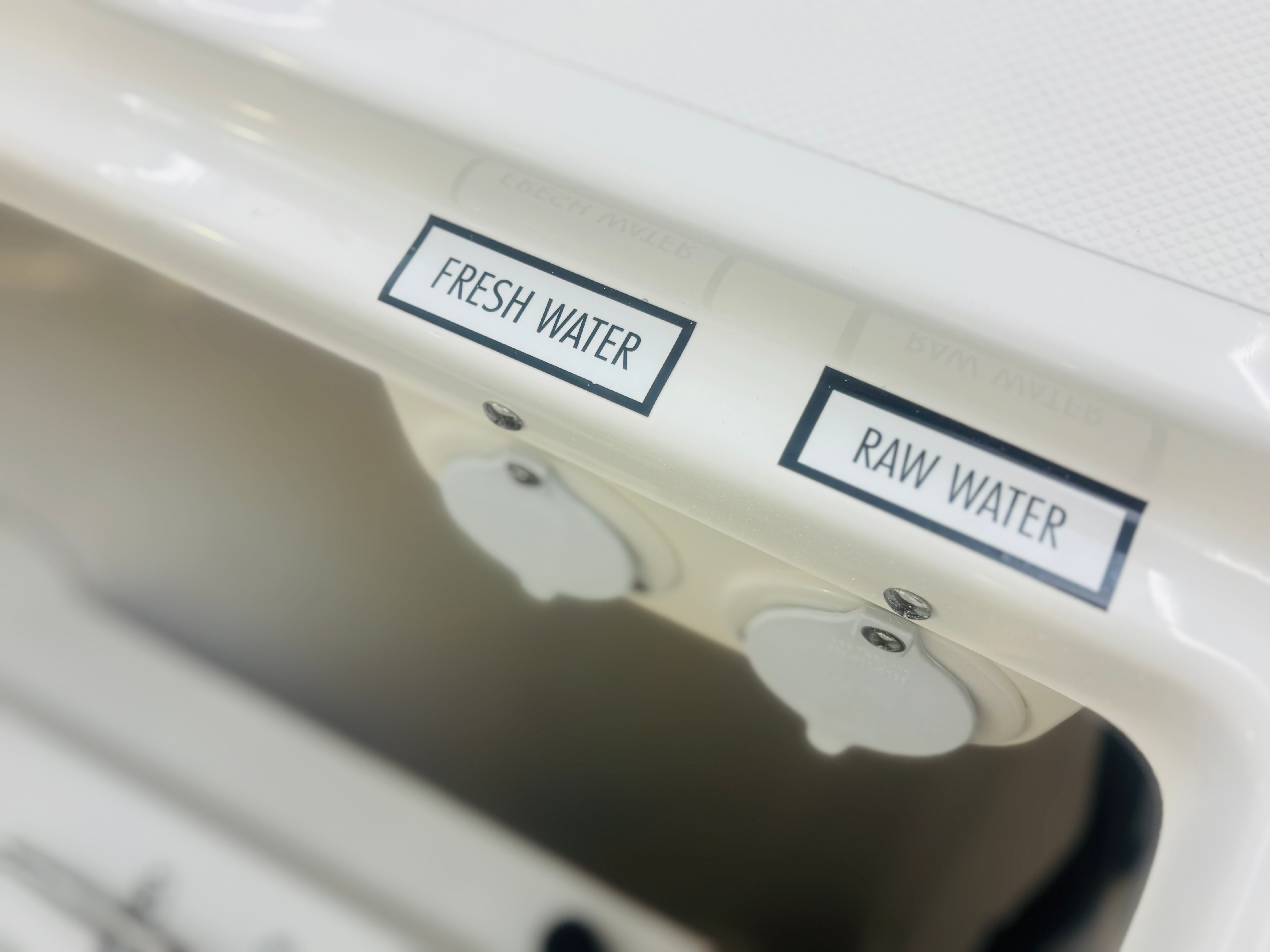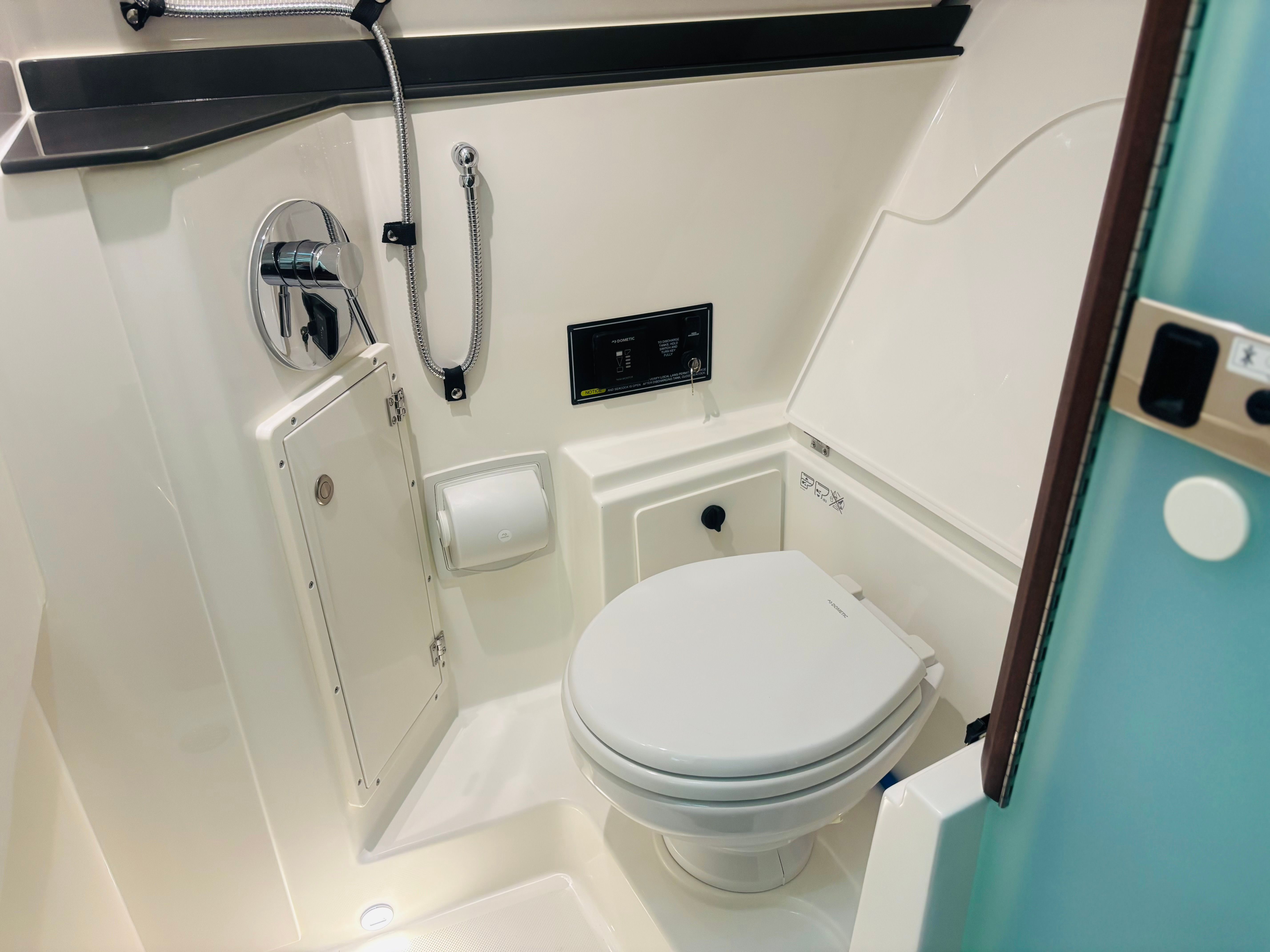 The Pursuit DC 365 is as practical as it is luxurious. The manual engine flushing system streamlines maintenance, helping to extend the life of your engines. The cooler with a chill plate keeps food and beverages fresh, perfect for long days on the water. The stowable sunshades and retractable Makefast sunshade offer flexible protection from the elements, while the teak table and ample seating make it easy to host gatherings or enjoy meals al fresco.Docking and maneuvering are simplified with the Yamaha joystick control and Set Point system, making it easy to handle the boat in marinas or tight spaces. The underwater lights not only enhance the boat’s appearance but also improve visibility and safety during nighttime outings. The spotlight with remote control adds another layer of convenience, ensuring you can navigate confidently after dark.