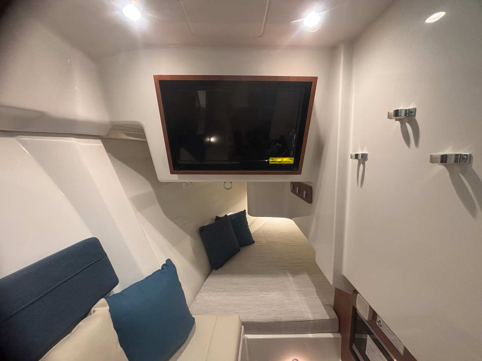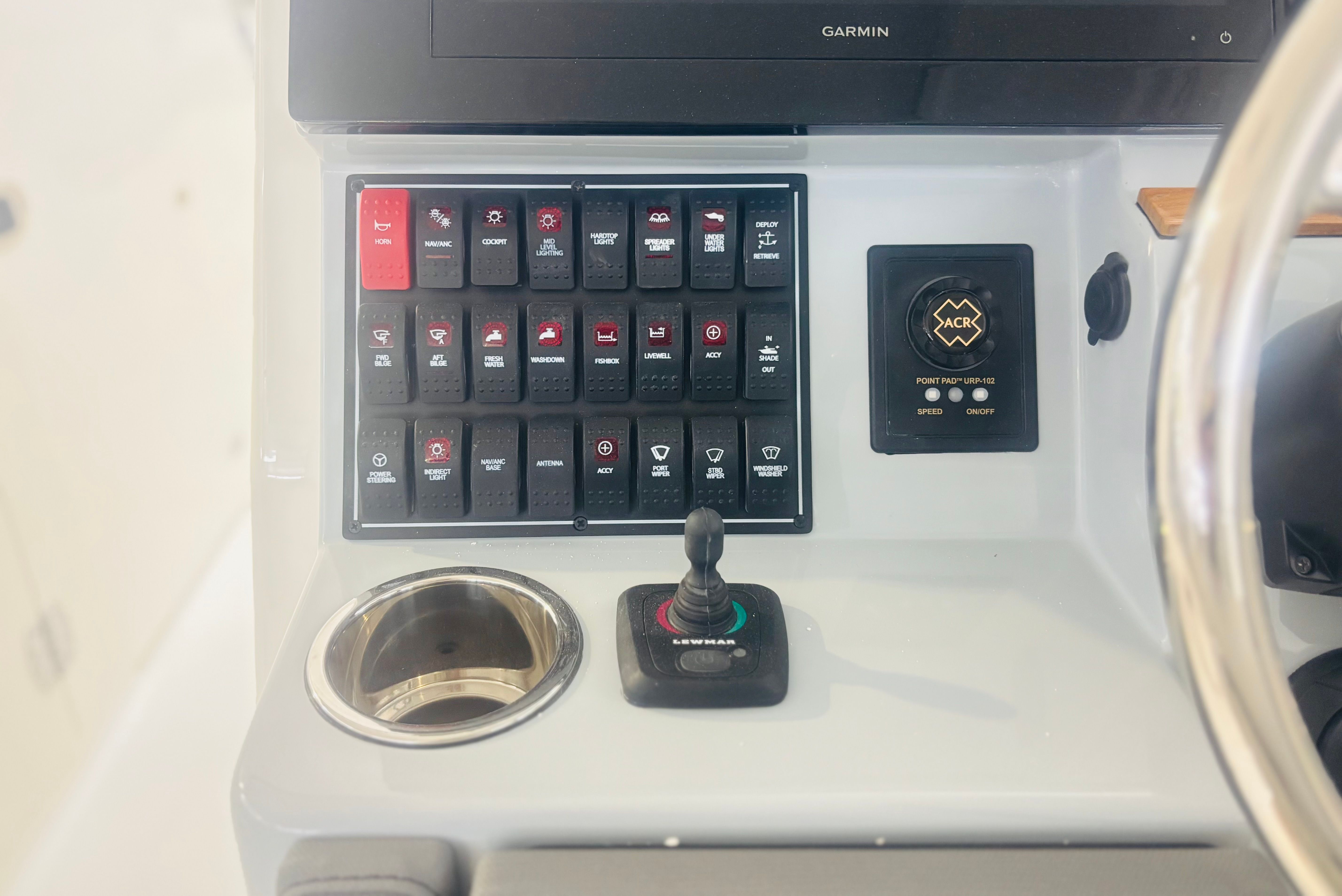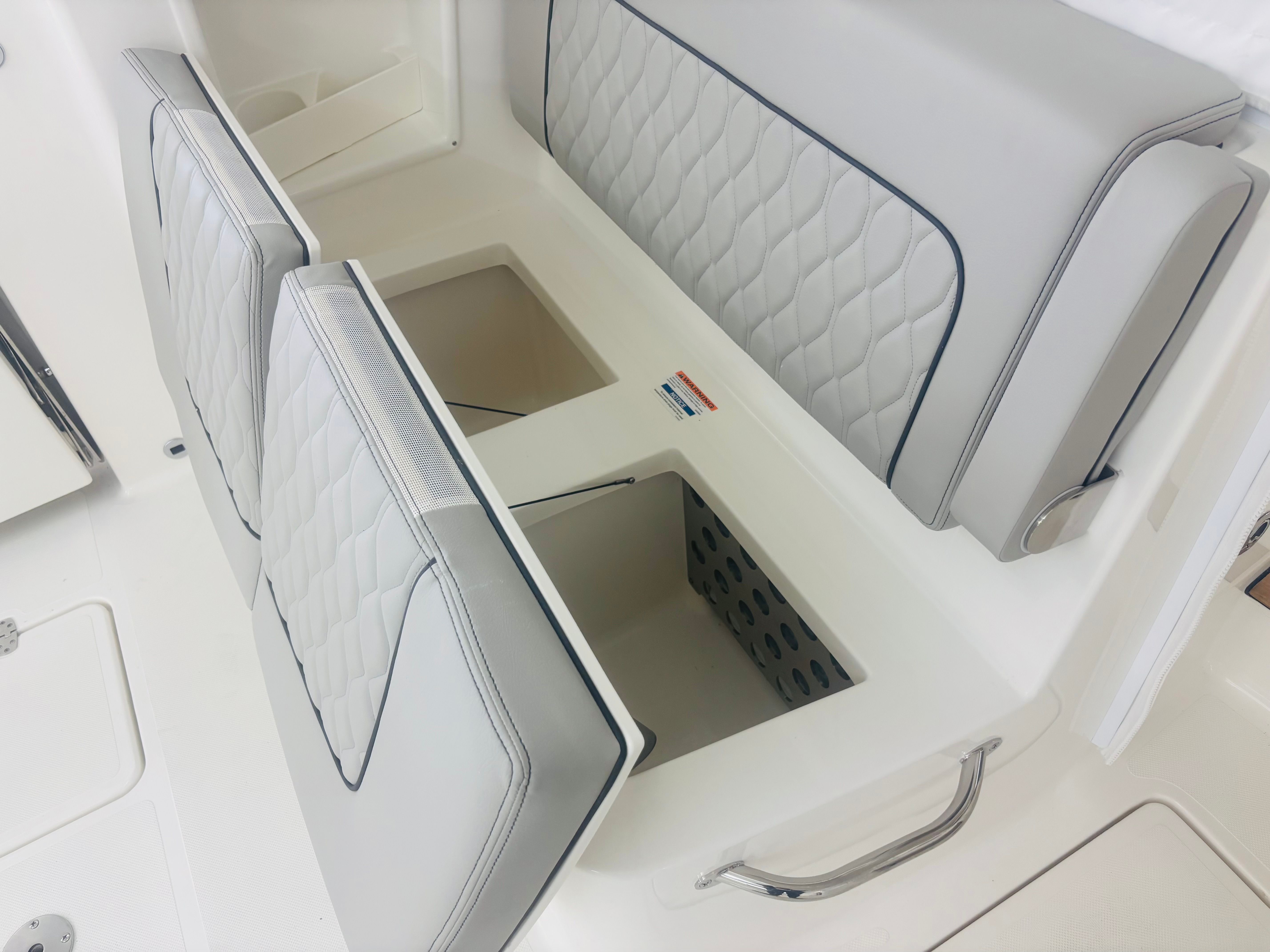 The Pursuit DC 365 is loaded with premium features designed to enhance every moment on the water. The Multifunction Display Interface provides intuitive access to navigation, entertainment, and vessel systems, keeping you in command at all times. The manual engine flushing system simplifies maintenance, ensuring your engines remain in peak condition.For those who value comfort, the 12v, 2.3 cu. ft. cooler with a chill plate under the aft-facing seat keeps refreshments perfectly chilled, while the 240v/60Hz cockpit air conditioning system with 16,000 BTU ensures a cool and comfortable environment, even on the hottest days. The bow Mediterranean-style sunshade is stowable, offering flexible protection from the sun, and the custom retractable Makefast sunshade with one-touch operation provides instant shade at the touch of a button.Entertain guests in style with the bridgedeck teak table, which features convenient storage for when you need more space. The premium stereo upgrade includes M6 Sport speakers and a subwoofer with full-spectrum backlighting, a custom-tuned 8-channel DSP amp, and a Sirius receiver with a three-month subscription, delivering an immersive audio experience controlled through the multifunction displays.Stability is paramount, and the SeaKeeper 3 Gyro Stabilizer, with factory-certified installation and a gold-level warranty, ensures a smooth ride by minimizing roll, even in choppy conditions. Additional features include an ACR RCL-100 LED spotlight with remote control at the helm, four Sea Blaze X2 Spectrum underwater lights for stunning nighttime ambiance, and a host of other thoughtful touches that elevate the DC 365 above the competition.
