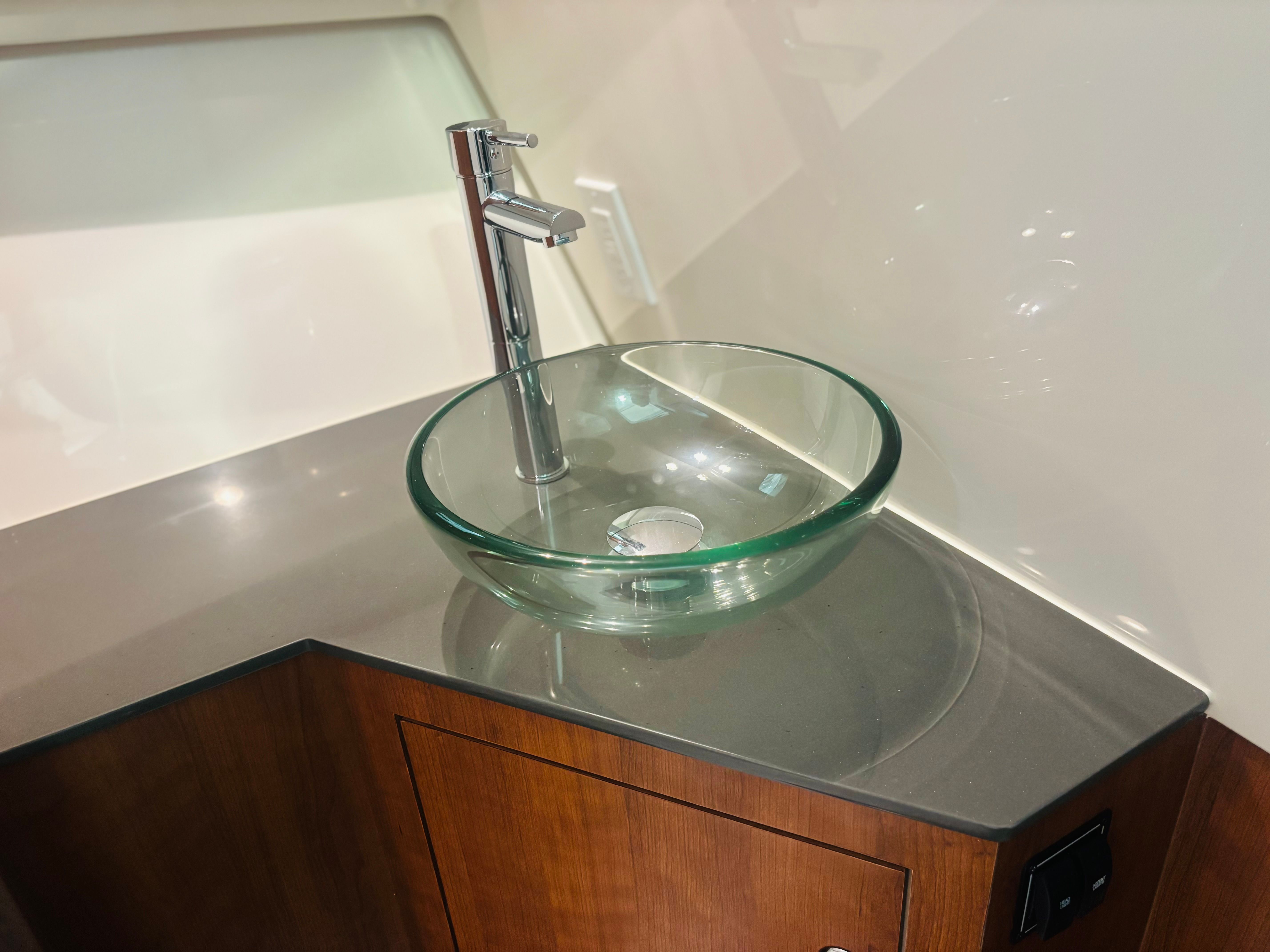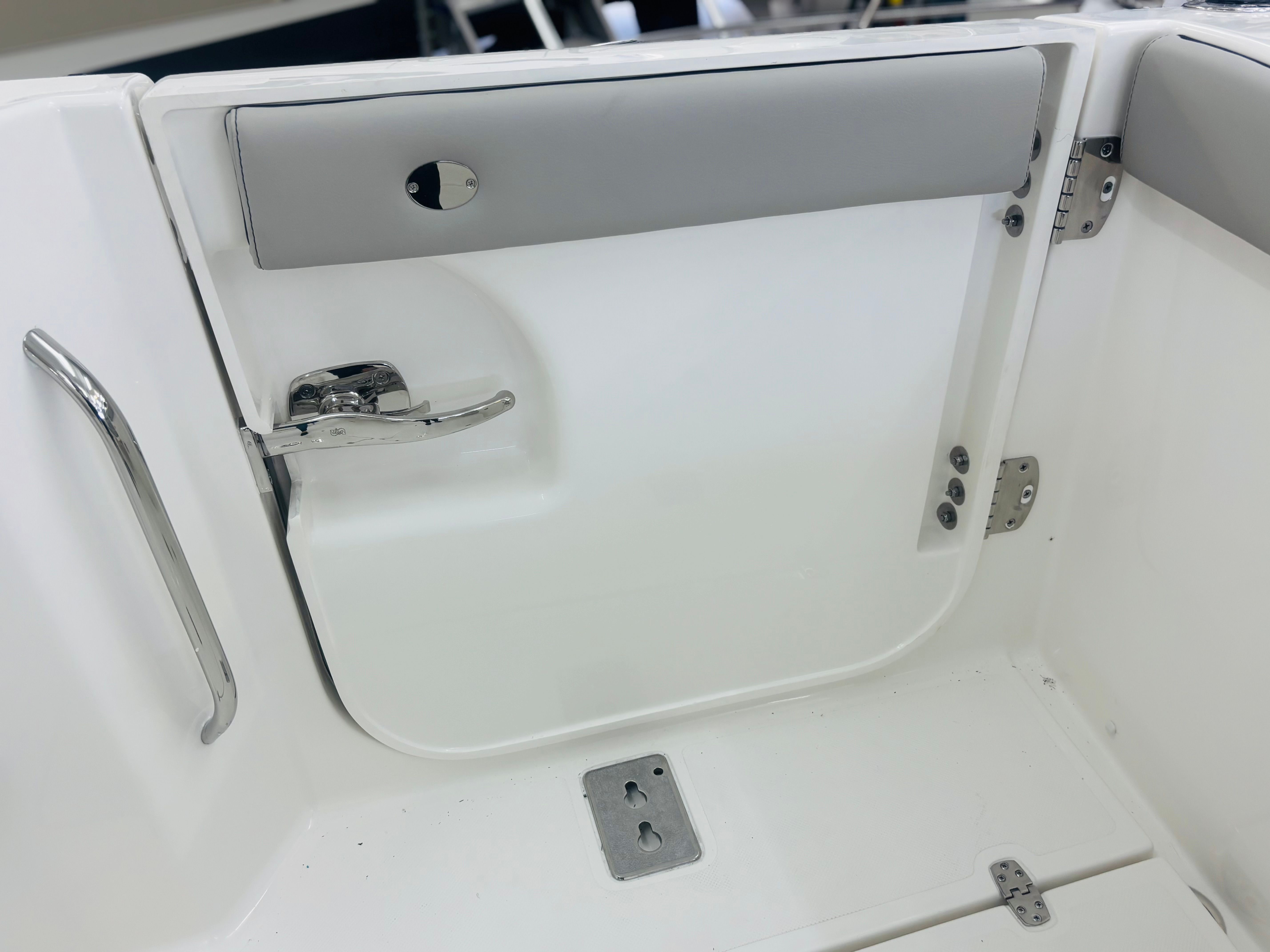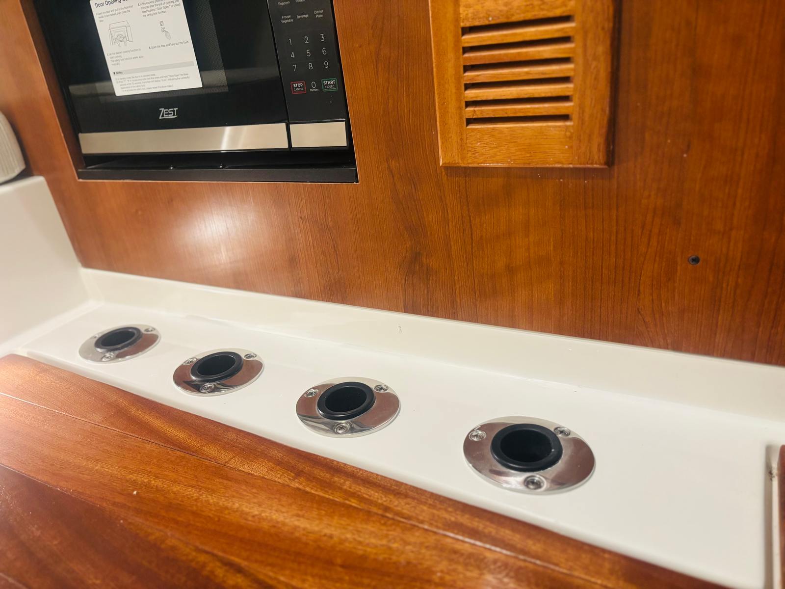 The Pursuit DC 365 is loaded with premium features designed to enhance every moment on the water. The Multifunction Display Interface provides intuitive access to navigation, entertainment, and vessel systems, keeping you in command at all times. The manual engine flushing system simplifies maintenance, ensuring your engines remain in peak condition.For those who value comfort, the 12v, 2.3 cu. ft. cooler with a chill plate under the aft-facing seat keeps refreshments perfectly chilled, while the 240v/60Hz cockpit air conditioning system with 16,000 BTU ensures a cool and comfortable environment, even on the hottest days. The bow Mediterranean-style sunshade is stowable, offering flexible protection from the sun, and the custom retractable Makefast sunshade with one-touch operation provides instant shade at the touch of a button.Entertain guests in style with the bridgedeck teak table, which features convenient storage for when you need more space. The premium stereo upgrade includes M6 Sport speakers and a subwoofer with full-spectrum backlighting, a custom-tuned 8-channel DSP amp, and a Sirius receiver with a three-month subscription, delivering an immersive audio experience controlled through the multifunction displays.Stability is paramount, and the SeaKeeper 3 Gyro Stabilizer, with factory-certified installation and a gold-level warranty, ensures a smooth ride by minimizing roll, even in choppy conditions. Additional features include an ACR RCL-100 LED spotlight with remote control at the helm, four Sea Blaze X2 Spectrum underwater lights for stunning nighttime ambiance, and a host of other thoughtful touches that elevate the DC 365 above the competition.