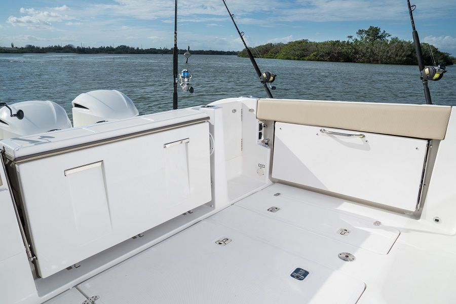 Power and precision are at the heart of the Pursuit DC 365. Equipped with triple Yamaha Pearl White F350 engines, this dual console boat boasts a combined 1,050 horsepower, delivering exhilarating speed and smooth handling. Whether you’re cruising along the coastline or heading offshore for a day of fishing, the DC 365’s advanced propulsion system ensures reliable performance and responsive maneuverability. The Seakeeper Gyro Stabilization System further elevates your boating experience by minimizing roll and providing unmatched stability, even in challenging conditions. This means you and your guests can enjoy a comfortable ride, no matter where your adventures take you.