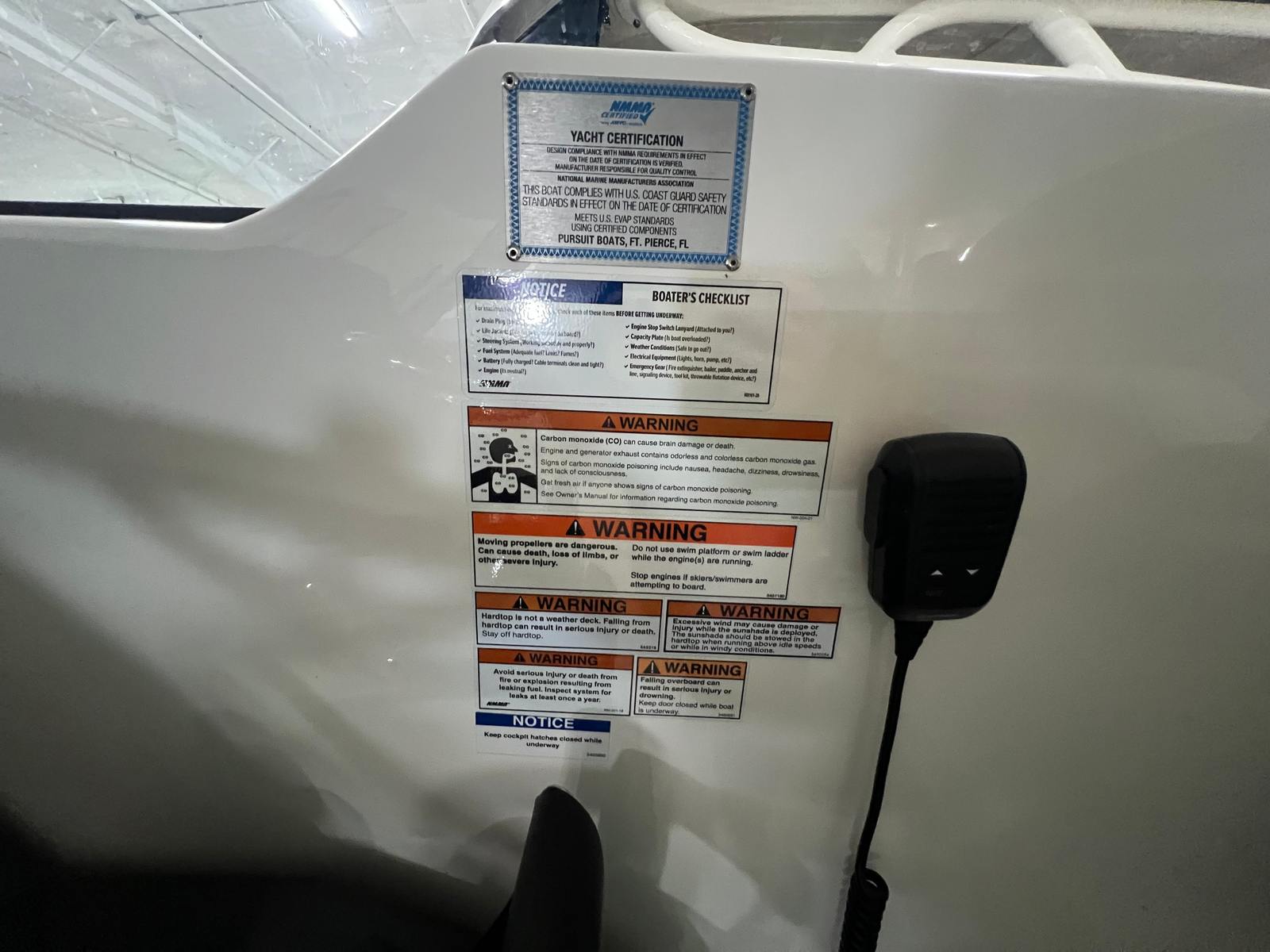Practicality meets luxury in the Pursuit DC 365. The generous storage options throughout the boat make it easy to stow gear, water toys, and provisions for extended trips. The six-battery system and battery charger provide peace of mind, ensuring that your electronics, lighting, and entertainment systems are always ready to go.Docking and maneuvering are simplified by the boat’s responsive handling and powerful engines, making it a breeze to navigate marinas or tight waterways. The aft bench seat and bow seating offer flexible spaces for lounging or dining, while the cockpit coaming bolsters add safety and comfort during more active pursuits. The hard top not only shields you from the sun and rain but also supports additional accessories for fishing or navigation.