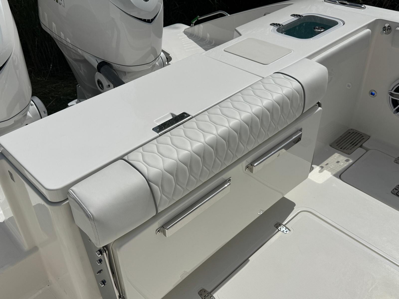 - Twin Yamaha® Digital F350 V6 Offshore (Pearlescent White) w/Integrated Digital Electric Steering (DES) and Helm Master® EX Digital Electronic Control (DEC) (does not include joystick control), Multifunction Display Interface and Manual Engine Flushing System