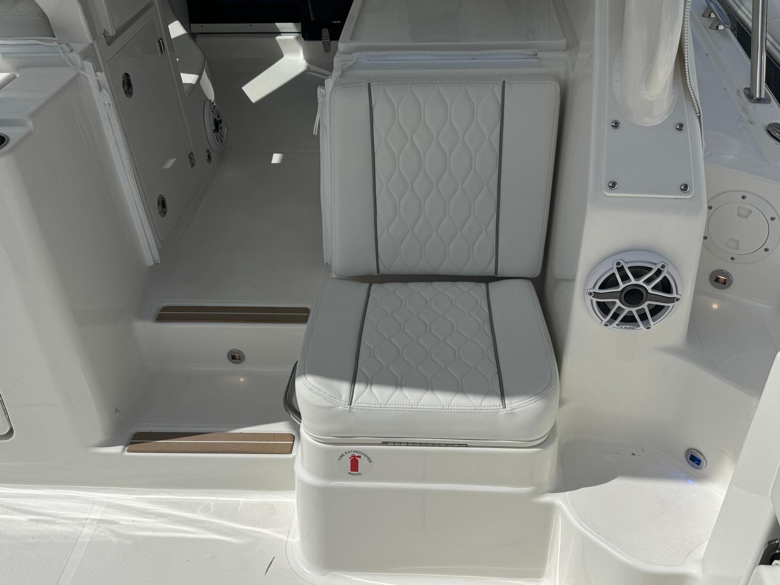 Step aboard the Pursuit 325 OS and discover a world of premium amenities designed to enhance your boating experience. The helm is equipped with a 2NDGARMIN® WIDESCREEN 16" DISPLAY, providing intuitive navigation and real-time data at your fingertips. For expanded functionality, the ADD GMS™ 10 EXPANDER FOR GARMIN® OPTS ensures seamless integration of your electronics, keeping you connected and informed wherever you go.Comfort is paramount on this cruiser, with both cabin and cockpit air conditioning featuring reverse cycle systems (10,000 BTU in the cabin and 12,000 BTU in the cockpit) for year-round climate control. The custom hardtop boasts an integrated electric retractable Makefast sunshade with one-touch operation, allowing you to effortlessly adjust your environment to suit your mood and the weather.Entertaining is a breeze thanks to the Bridgedeck Teak Table with dedicated storage and a fiberglass cockpit table, also with its own storage space. These elegant additions provide the perfect setting for alfresco dining, socializing, or simply enjoying the view. The folding gunwale seat on the starboard side offers flexible seating options, while the upgraded 3 Piece Drop Curtain and Aft Curtain in Stamoid (White) add a touch of sophistication and protection from the elements.