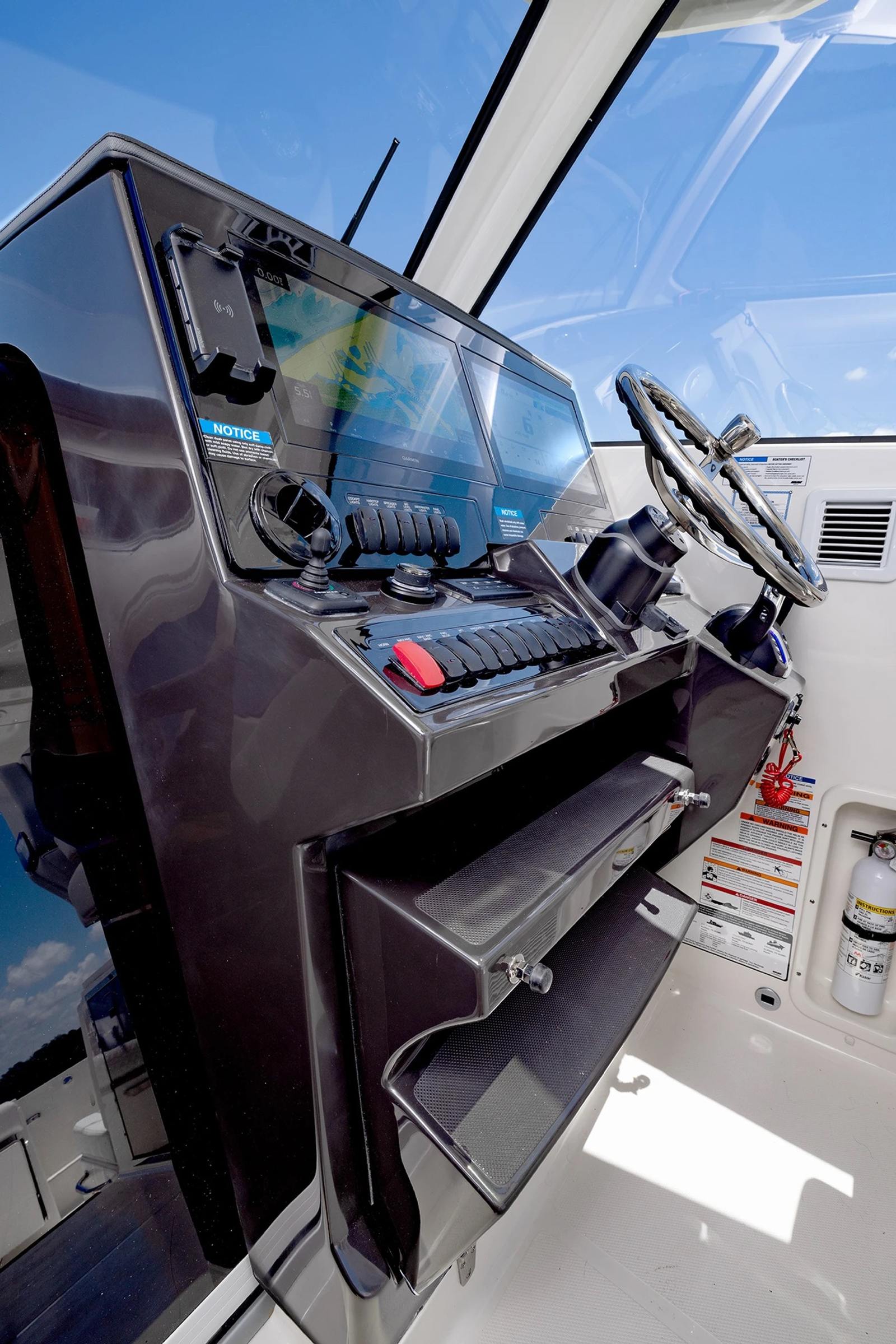 The Pursuit OS 325 is as practical as it is luxurious. Its 34.5-foot length provides ample space for guests and gear, while still being manageable for docking and storage. The Helm Master Full Maneuverability system makes handling the boat in tight spaces a breeze, giving you confidence whether you are docking at a busy marina or navigating narrow channels.The diesel genset and cabin air conditioning system enhance comfort during overnight stays or extended cruises, allowing you to explore further and stay longer. The boat's efficient design and powerful engines offer an ideal blend of performance and fuel economy, making it a smart choice for both short outings and longer journeys.