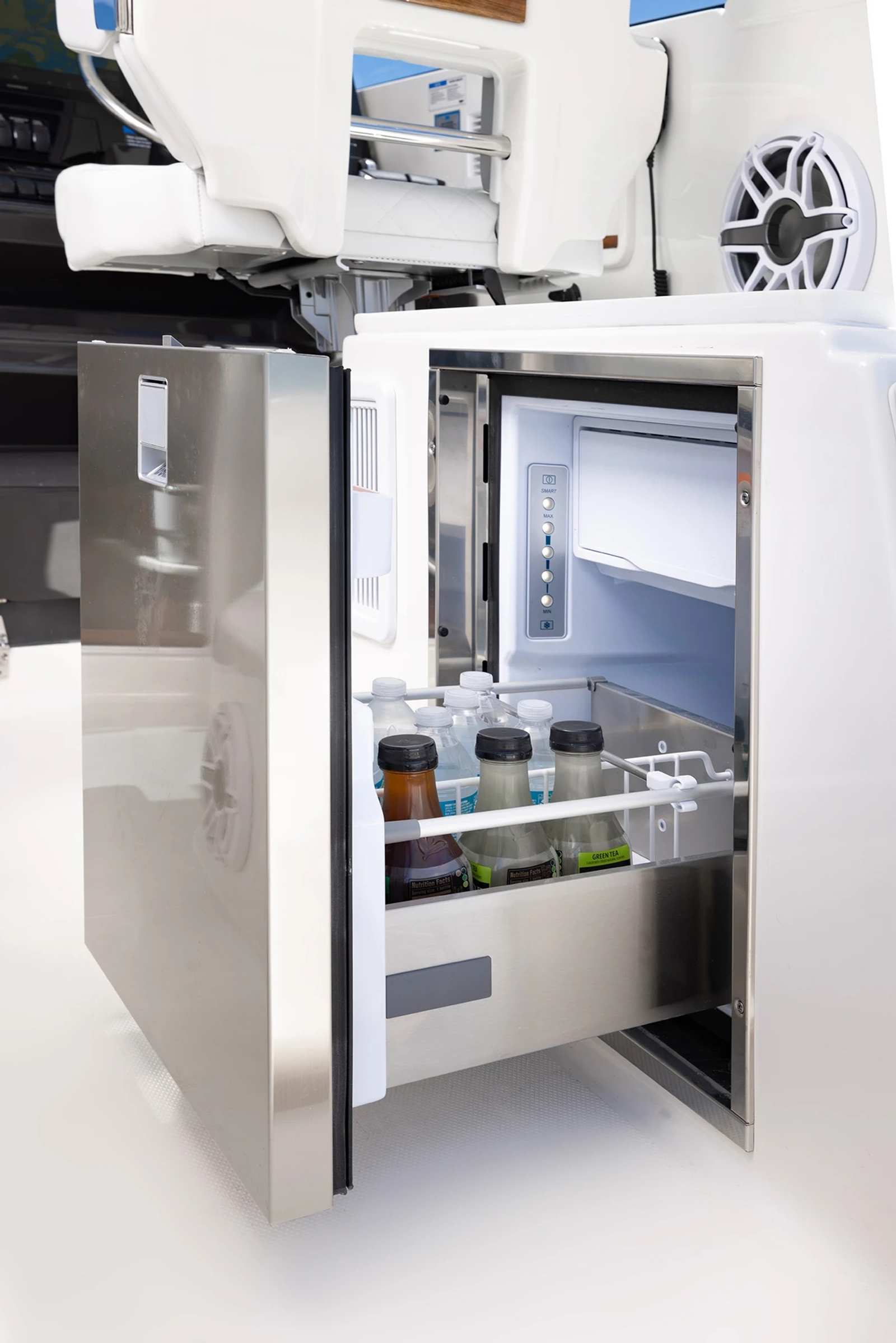 Powering the Pursuit OS 325 are twin Yamaha Pearlescent White F350 engines, delivering a combined 700 horsepower. This dynamic duo ensures exhilarating acceleration, smooth cruising, and reliable performance, whether you are navigating coastal waters or embarking on longer offshore adventures. The advanced Helm Master Full Maneuverability system provides precise control and effortless docking, making every outing stress-free and enjoyable. The Seakeeper Ride Attitude Control System further enhances stability and ride comfort, allowing you to confidently tackle varying sea conditions with ease.