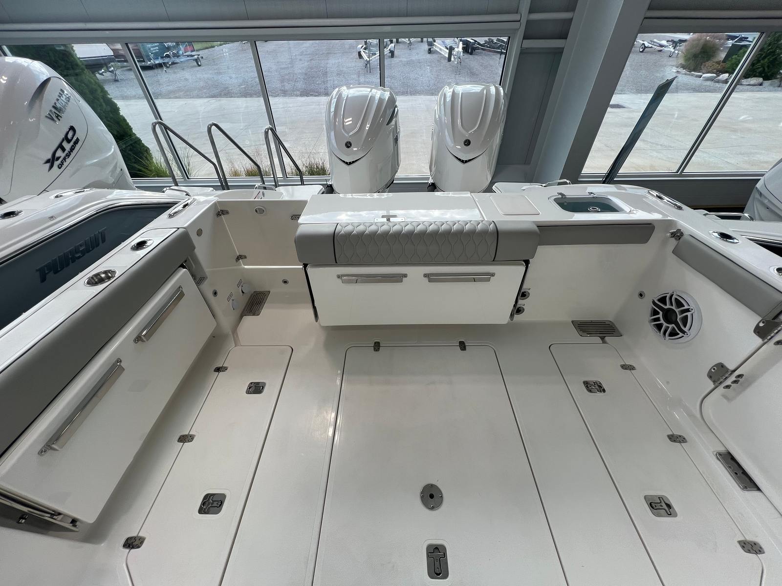 Power and precision define the performance of the Pursuit 325 OS. Equipped with twin engines delivering a combined 700 horsepower, this cruiser is built to impress. The dual-engine setup provides exceptional acceleration, responsive handling, and the confidence to tackle a variety of water conditions. Whether you are cruising along the coastline, exploring hidden coves, or heading offshore for a day of adventure, the Pursuit 325 OS offers the power and reliability you need for a thrilling and safe boating experience. The advanced engineering behind this Pursuit boat for sale ensures optimal fuel efficiency and smooth operation, so you can focus on making the most of your time on the water.
