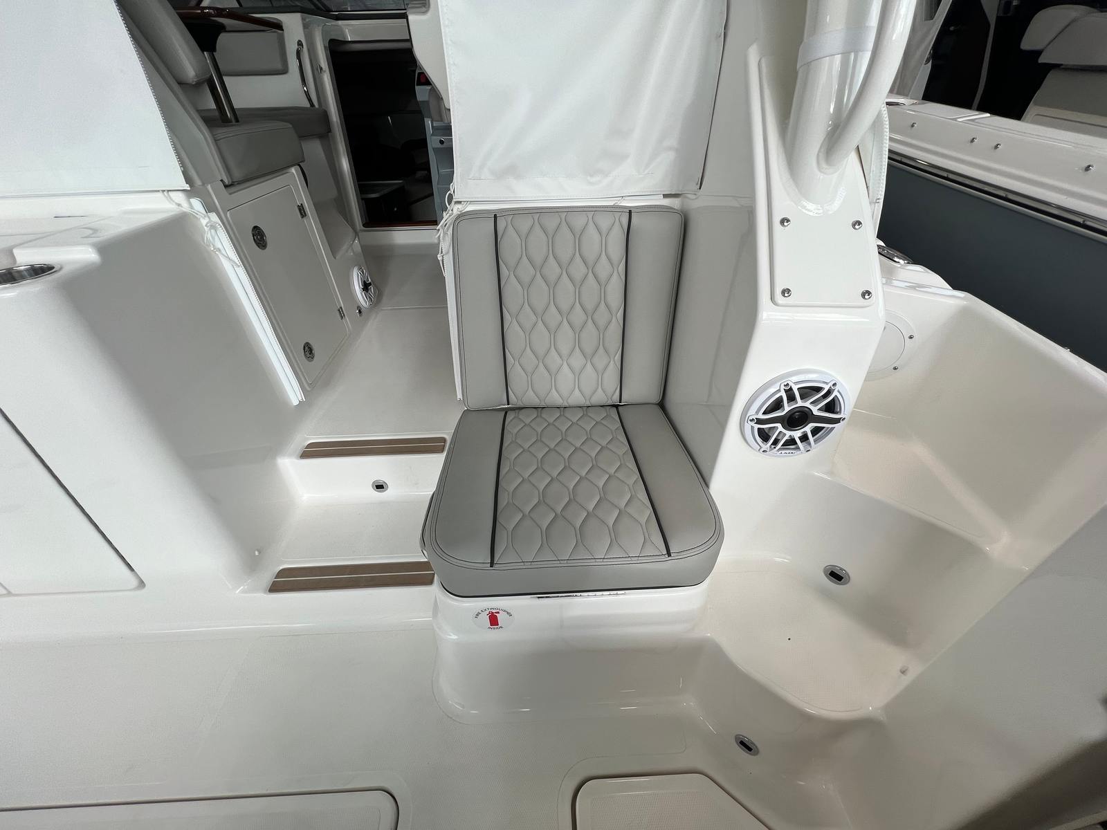 Owning the Pursuit 325 OS means embracing a lifestyle of fun, relaxation, and adventure. The spacious layout and premium amenities create the perfect setting for entertaining friends, hosting family gatherings, or simply unwinding in style. The advanced air conditioning systems in both the cabin and cockpit ensure that everyone stays cool and comfortable, even on the hottest days. The dedicated storage for tables and other essentials keeps the deck clutter-free, allowing you to move about the boat with ease and enjoy every moment on board.The Pursuit 325 OS is designed with socializing in mind, offering plenty of seating and gathering spaces for sharing meals, stories, and laughter. The elegant teak and fiberglass tables provide the ideal backdrop for alfresco dining or sunset cocktails, while the retractable sunshade allows you to customize your environment for maximum comfort. Whether you are seeking solitude or the company of loved ones, this cruiser boat for sale delivers the versatility and luxury you desire.