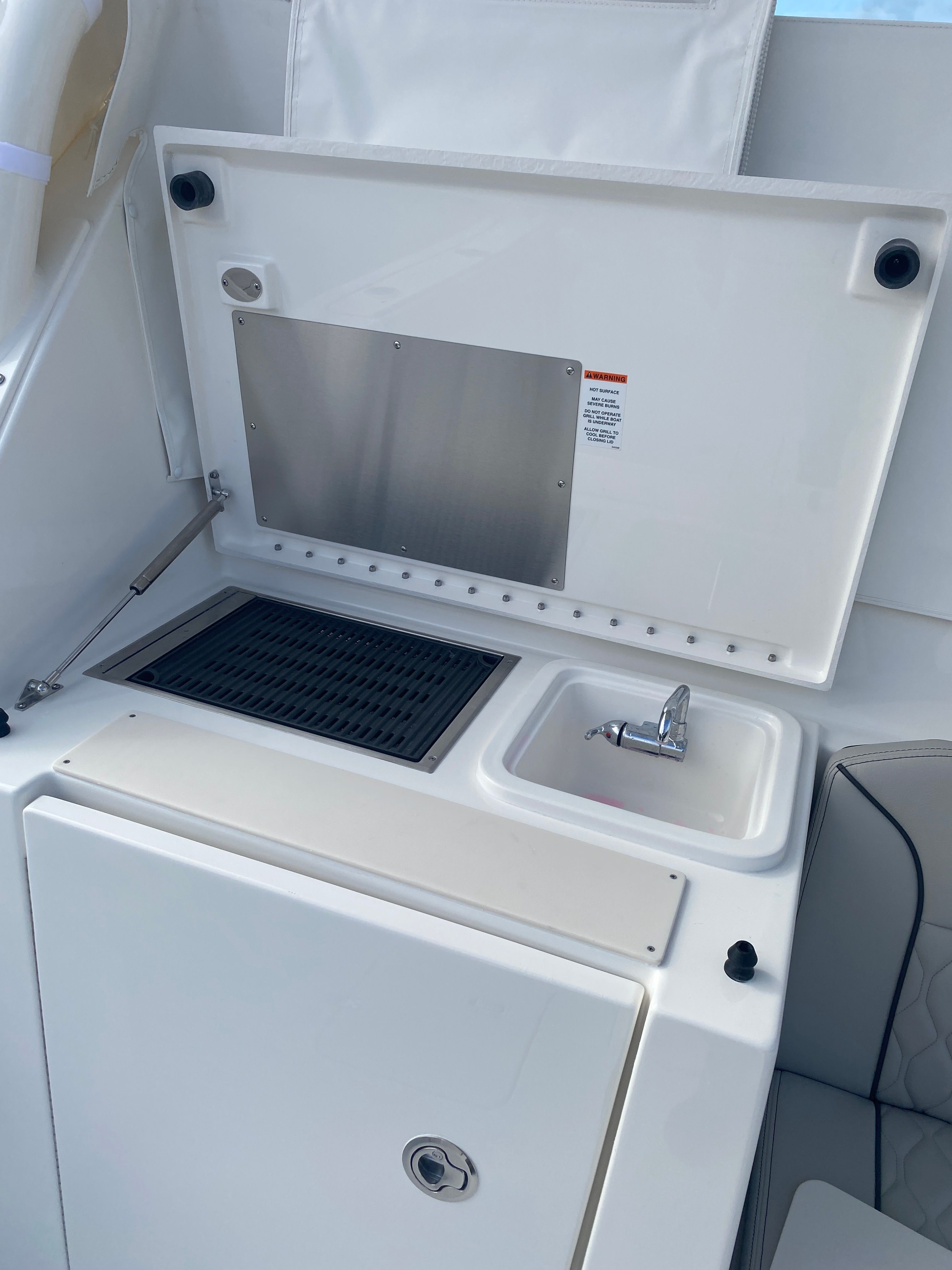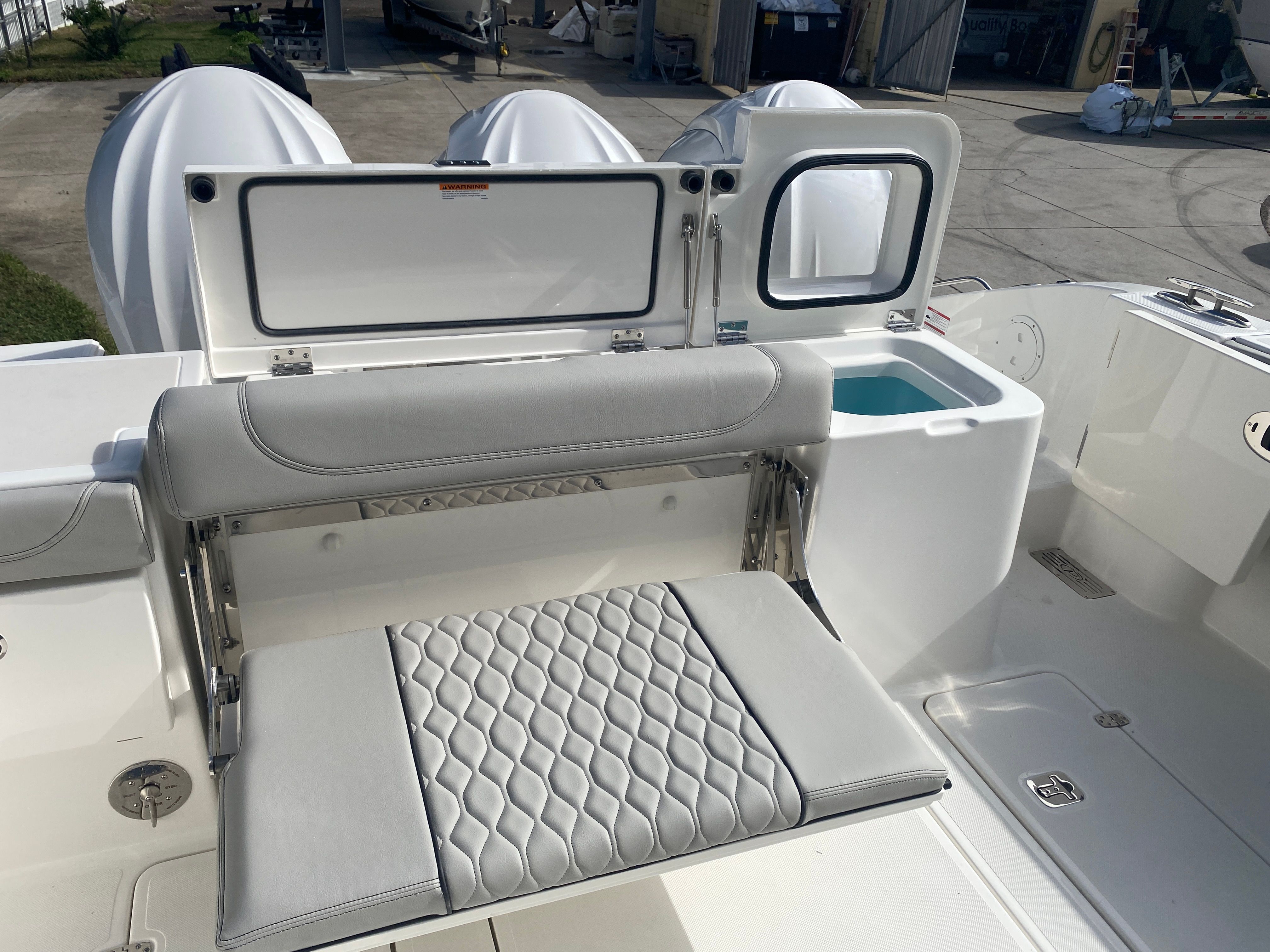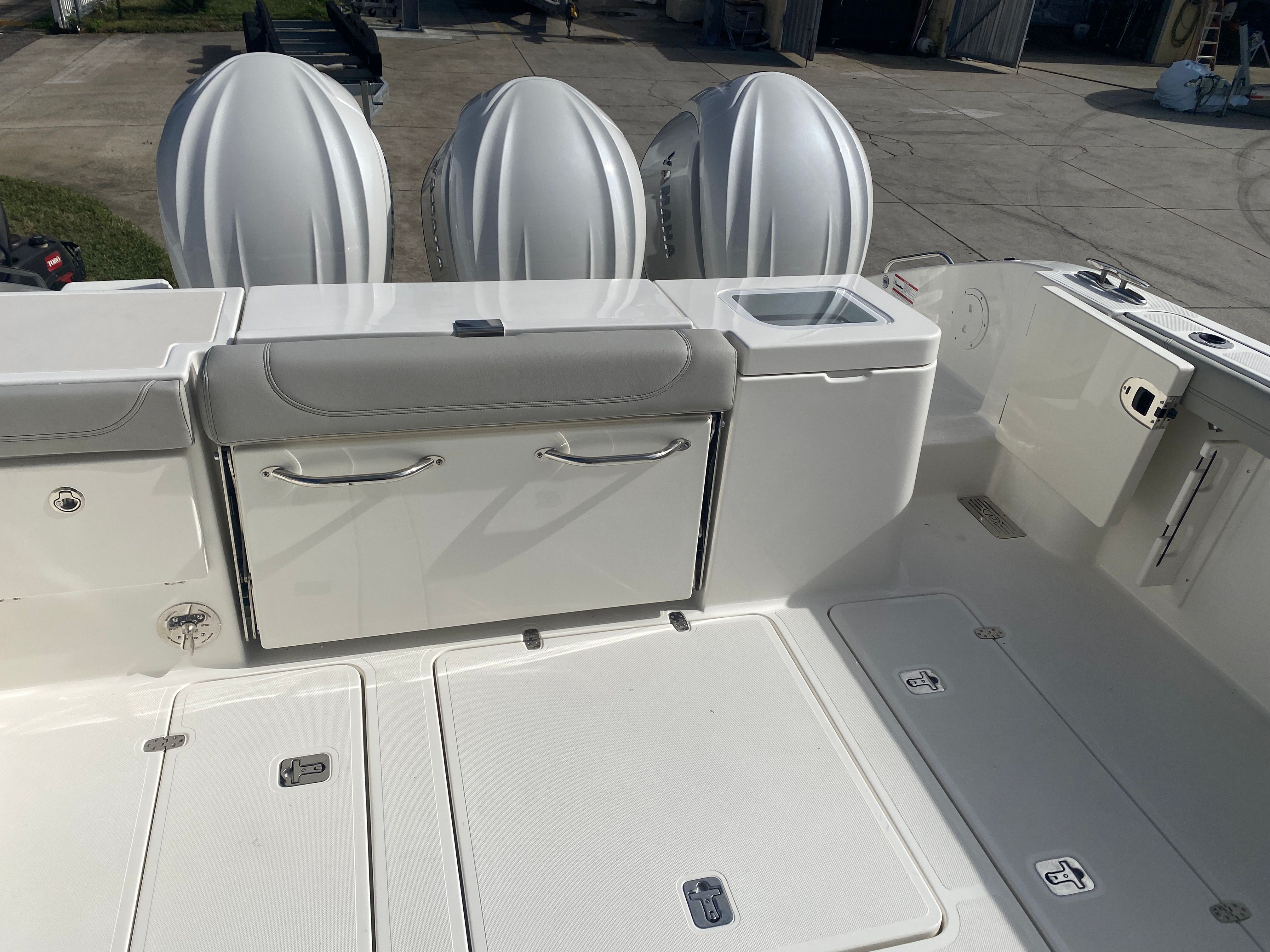 Owning the Pursuit OS 355 Cruiser means embracing a lifestyle of luxury, comfort, and adventure. The spacious layout and premium finishes create an inviting environment for relaxation and socializing, whether you’re hosting a sunset cocktail party or enjoying a quiet morning on the water. The advanced climate control system ensures year-round comfort, while the retractable sunshade lets you tailor your outdoor experience to suit your preferences. With dedicated storage for tables and other amenities, you’ll appreciate the organized and clutter-free living spaces that make every outing enjoyable.The triple Yamaha engines provide not only impressive speed but also the confidence to explore farther and faster. Whether you’re cruising along the coast or heading out for a weekend getaway, the OS 355’s performance capabilities open up a world of possibilities. The integrated spotlight enhances safety, allowing you to navigate with ease after dark and ensuring your adventures are never limited by daylight hours.