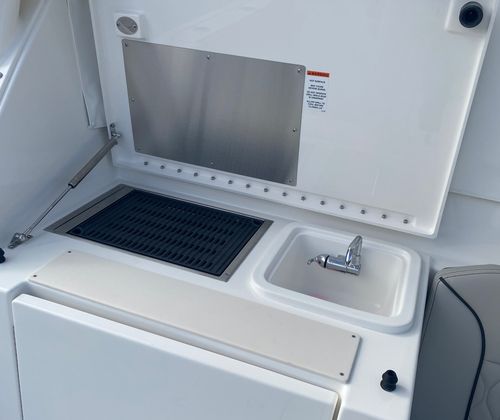 The Pursuit OS 355 Cruiser is designed with practicality in mind, making ownership effortless and enjoyable. The nearly 38-foot length offers generous storage options for gear, supplies, and personal items, keeping your living spaces tidy and functional. The dedicated storage for both the Bridgedeck Teak Table and the fiberglass cockpit table ensures these amenities are always within reach yet out of the way when not in use.Docking and maneuvering are simplified by the boat’s advanced design and powerful engines, allowing for smooth handling in tight spaces and busy marinas. The efficient triple Yamaha engines contribute to better fuel management, so you can spend more time on the water and less time refueling. The integrated climate control system means you can enjoy your cruiser in any season, while the retractable sunshade offers protection from the elements with the touch of a button.
