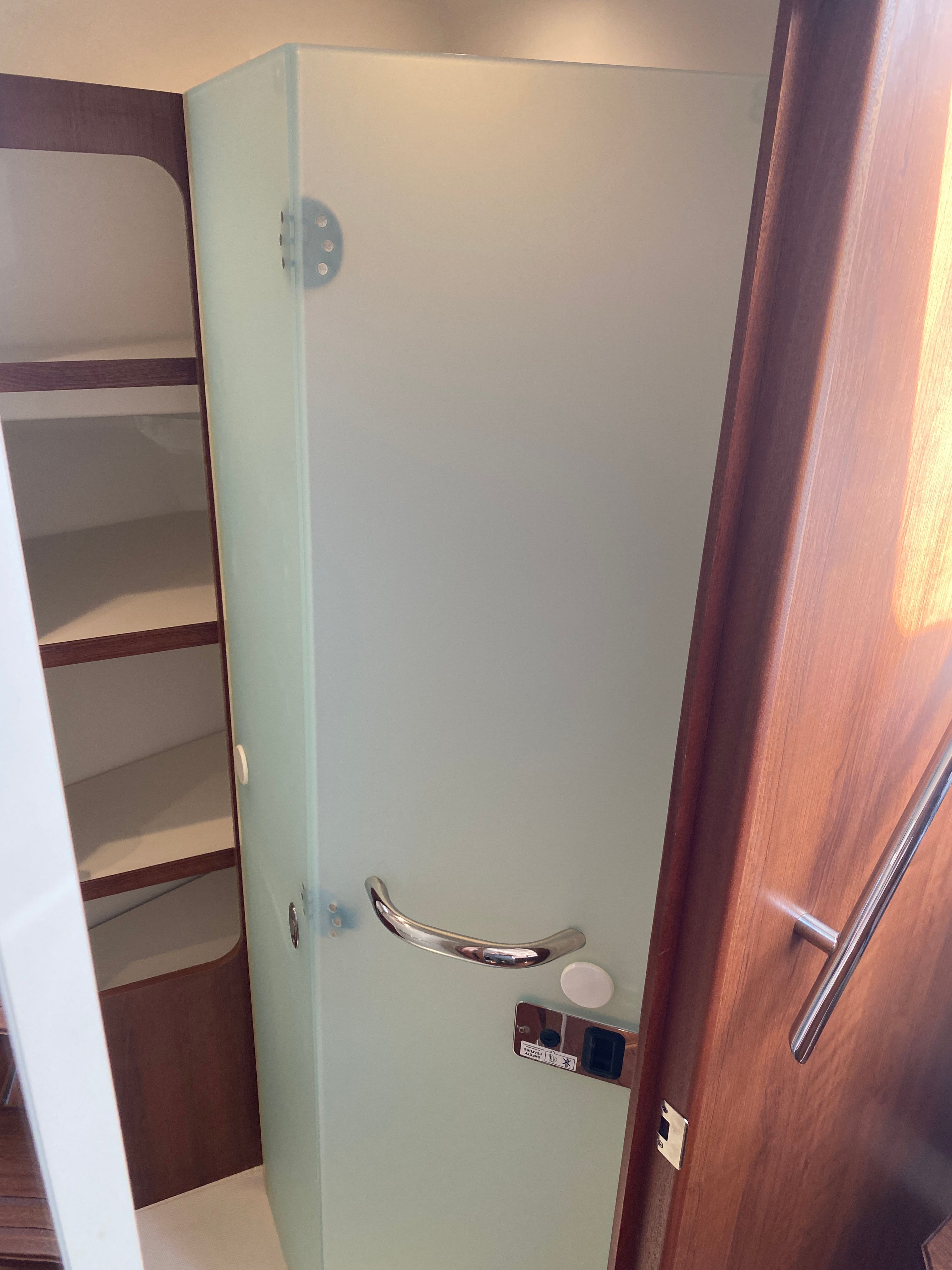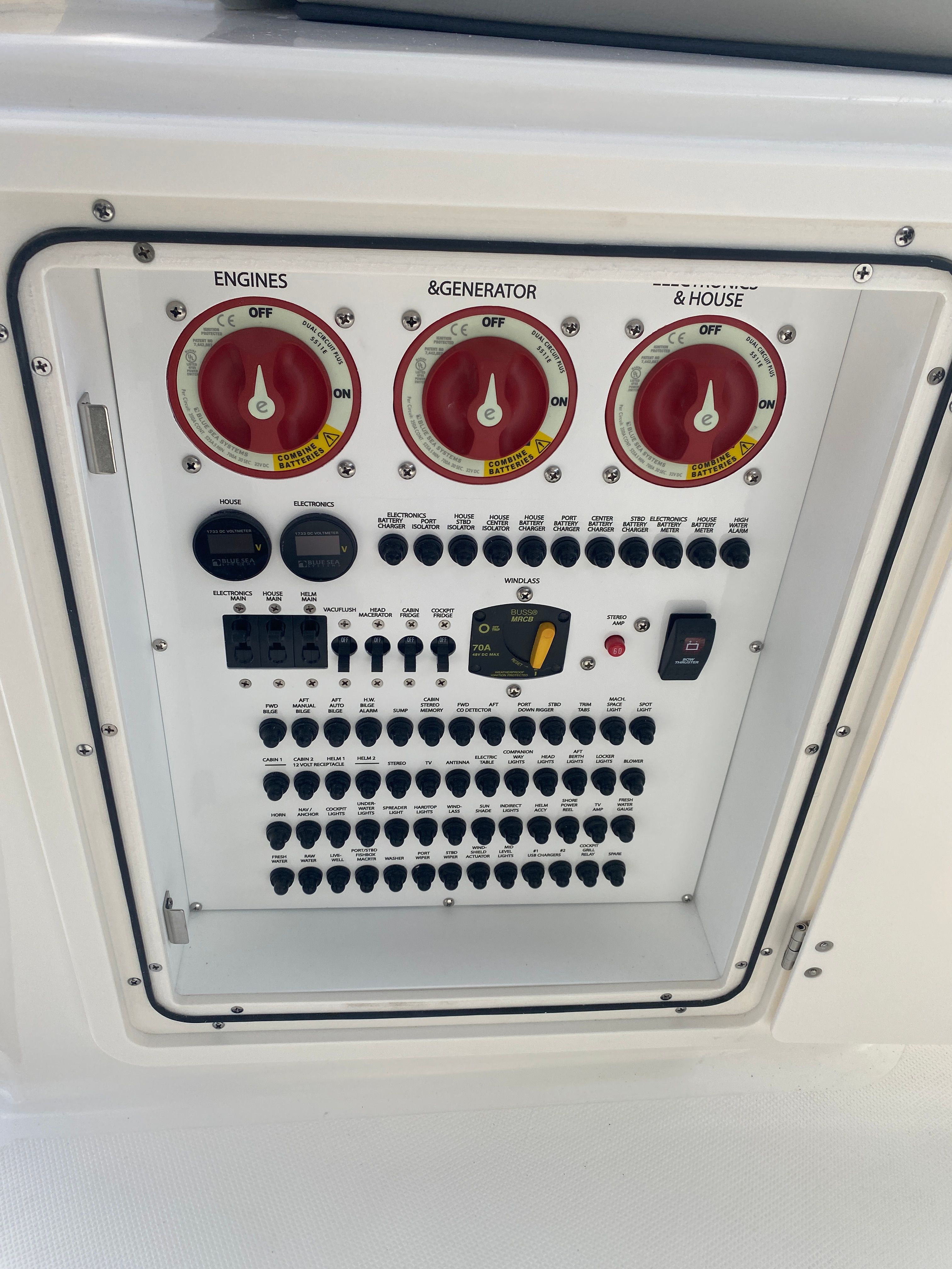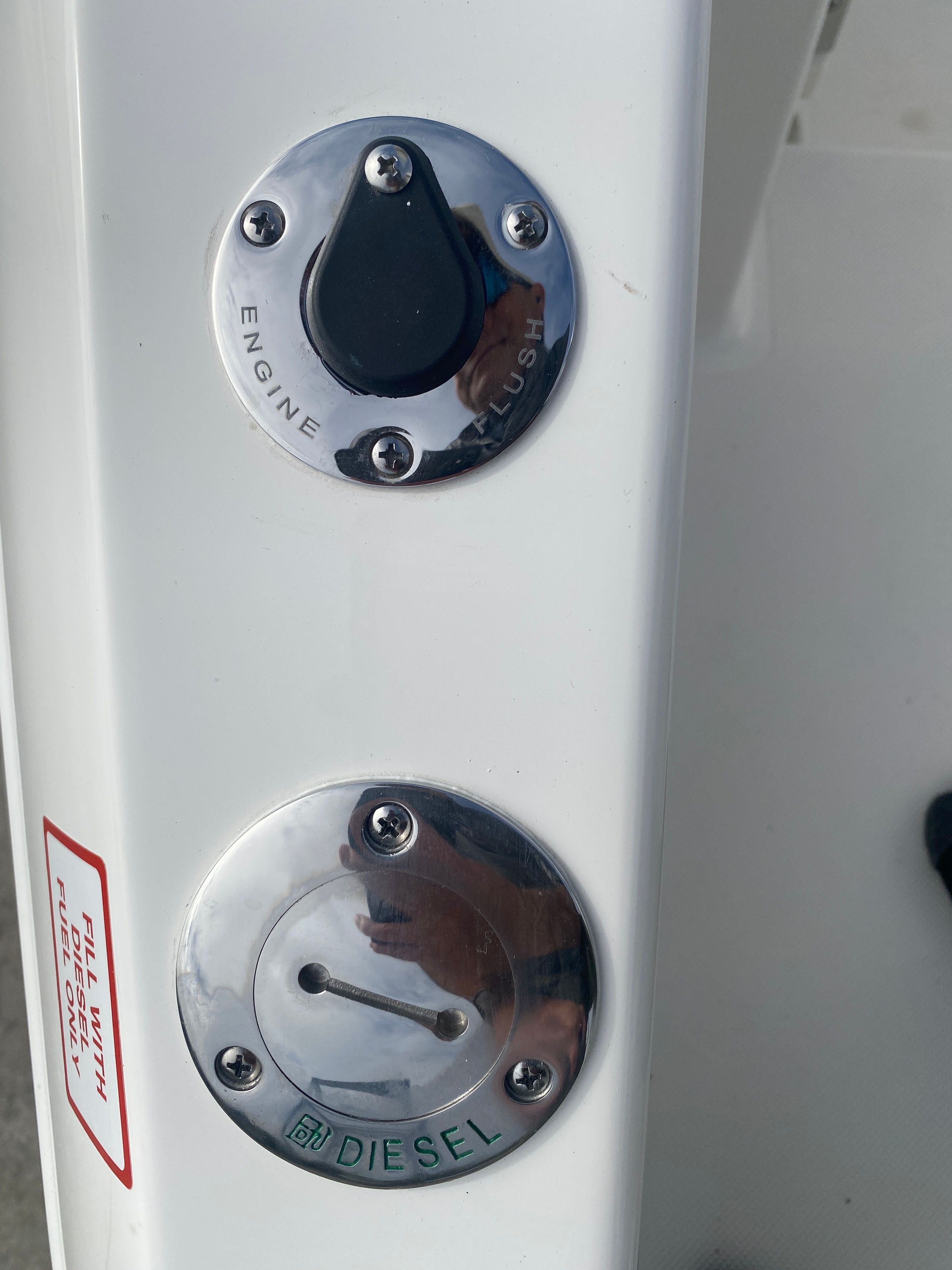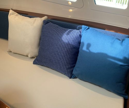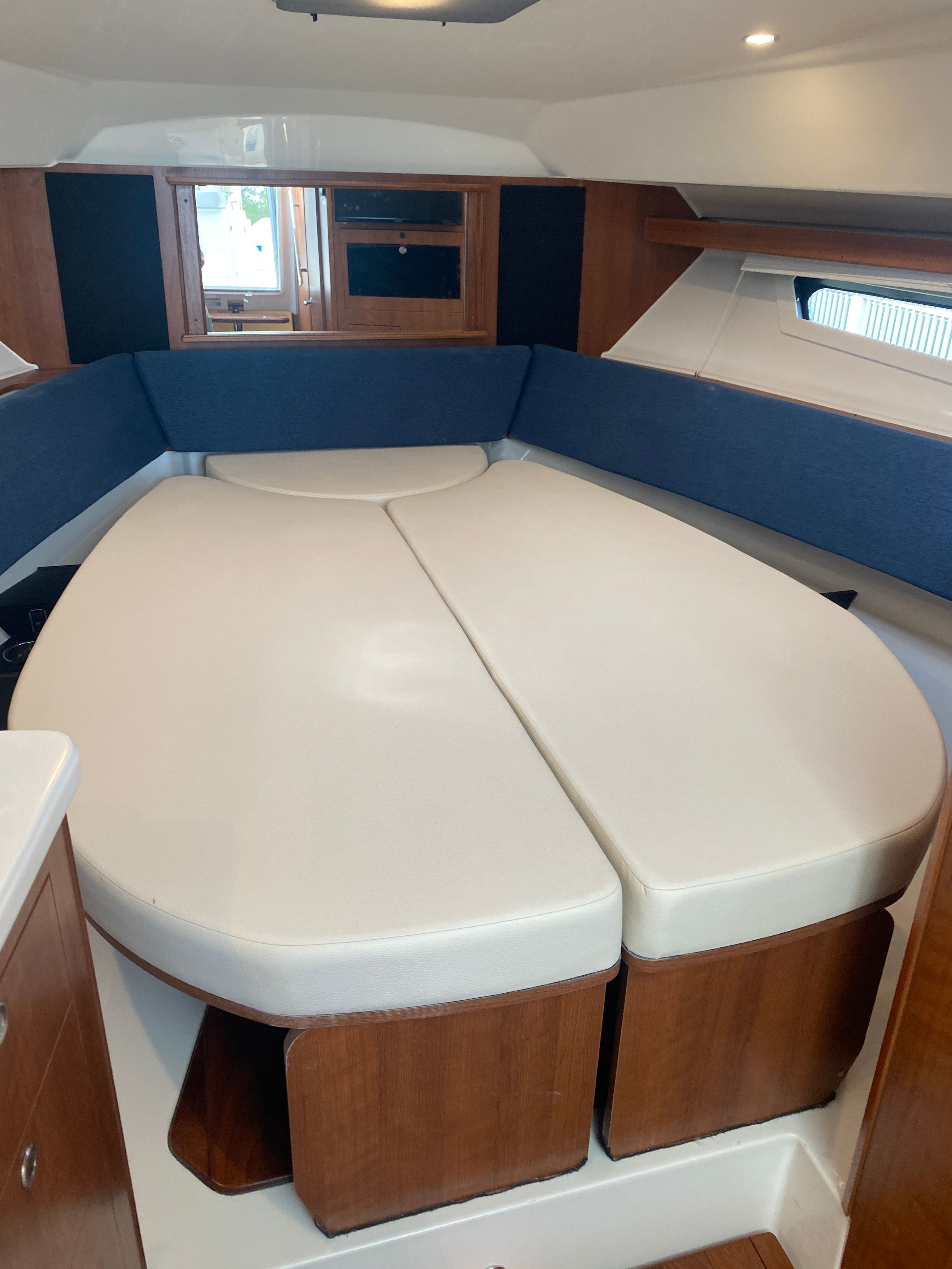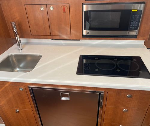 Step aboard the Pursuit OS 355 and discover a world of thoughtful features designed to elevate your boating experience. The Fresh White hull and Platinum bootstripe not only enhance the boat’s visual appeal but also reflect Pursuit’s attention to detail. The Carbon helm provides a sleek, modern command center, while the Tranquil Sea interior fabric offers a soothing environment for relaxation.Enjoy the convenience of a Bridgedeck Teak Table with dedicated storage, perfect for alfresco dining or socializing with friends and family. The cockpit is equipped with air conditioning and reverse cycle heat (16,000 BTU, 240V/60Hz), ensuring comfort in any climate. A custom hardtop with an integrated stainless steel electric retractable Makefast sunshade offers one-touch operation, allowing you to easily adjust your exposure to the sun. The fiberglass cockpit table, also with dedicated storage, adds versatility to your entertaining options. For enhanced safety and visibility, the OS 355 features an ACR RCL-100 LED spotlight with remote control at the helm, providing peace of mind during nighttime navigation.
