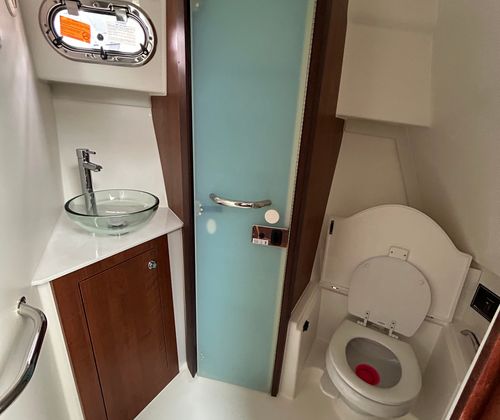 Power and precision come standard on the Pursuit OS 355. Equipped with three high-performance engines delivering a combined 1,050 horsepower, this cruiser boat for sale is built to impress. The triple-engine setup ensures smooth acceleration, responsive handling, and the ability to tackle a variety of water conditions with ease. Whether you’re cruising along the coastline or heading out for offshore adventures, the Pursuit OS 355 offers exhilarating speed and reliable performance. The advanced helm, featuring a carbon finish, puts you in complete control, allowing for effortless navigation and maneuverability.