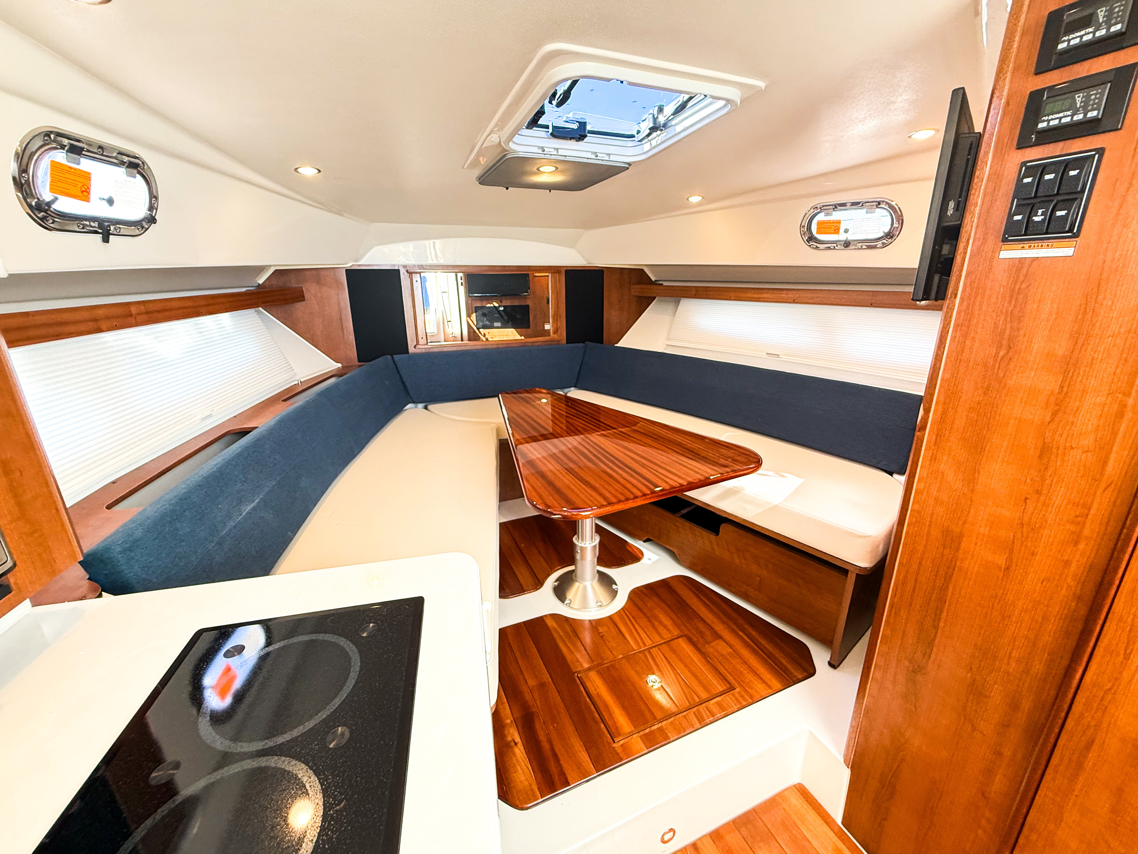 Whether you’re planning a family outing, a fishing trip, or a luxury getaway, the Pursuit OS 355 Cruiser is the ideal companion. Its spacious design and versatile features make it perfect for entertaining, with plenty of room for dining, lounging, and socializing. The powerful triple Yamaha engines provide the speed and reliability needed for offshore adventures, while the advanced helm systems make navigation simple and stress-free. Enjoy sun-soaked afternoons on the forward deck sunpad, cool off in the air-conditioned cockpit, or gather around the teak table for a meal with friends. The Pursuit OS 355 adapts to your lifestyle, offering endless possibilities for fun and relaxation on the water.
