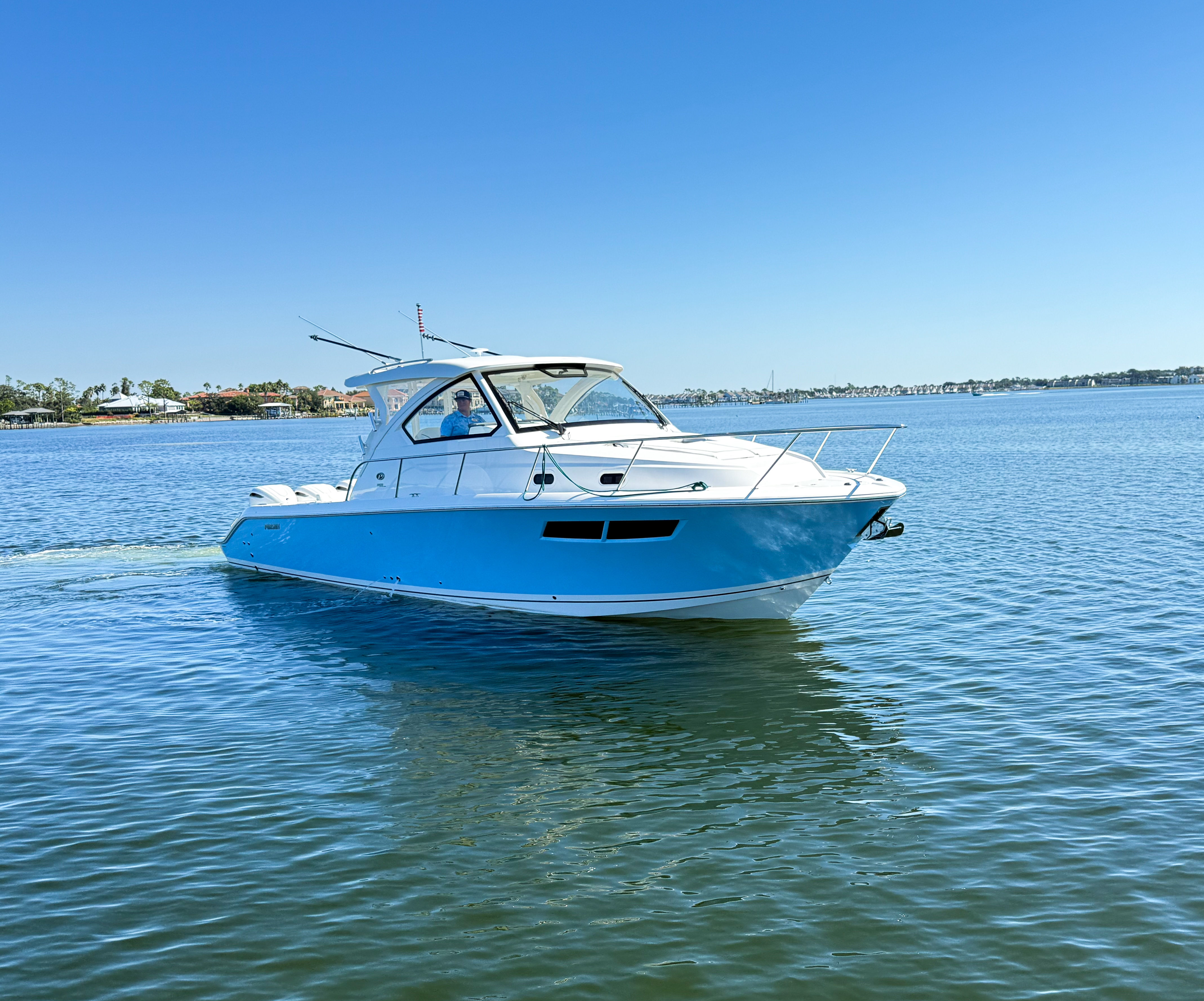 Power and precision define the Pursuit OS 355’s performance. Equipped with triple Yamaha F350 engines in Pearlescent White, this cruiser boasts a combined 1,050 horsepower, ensuring smooth acceleration and impressive speed. The integrated Digital Electric Steering and Helm Master EX Digital Electronic Control system offer effortless handling and precise maneuverability, while the Yamaha Joystick Control provides full control for docking and navigating tight spaces. Whether you’re cruising along the coastline or heading out for a weekend adventure, the Pursuit OS 355 delivers a dynamic and responsive ride that’s both thrilling and reliable.