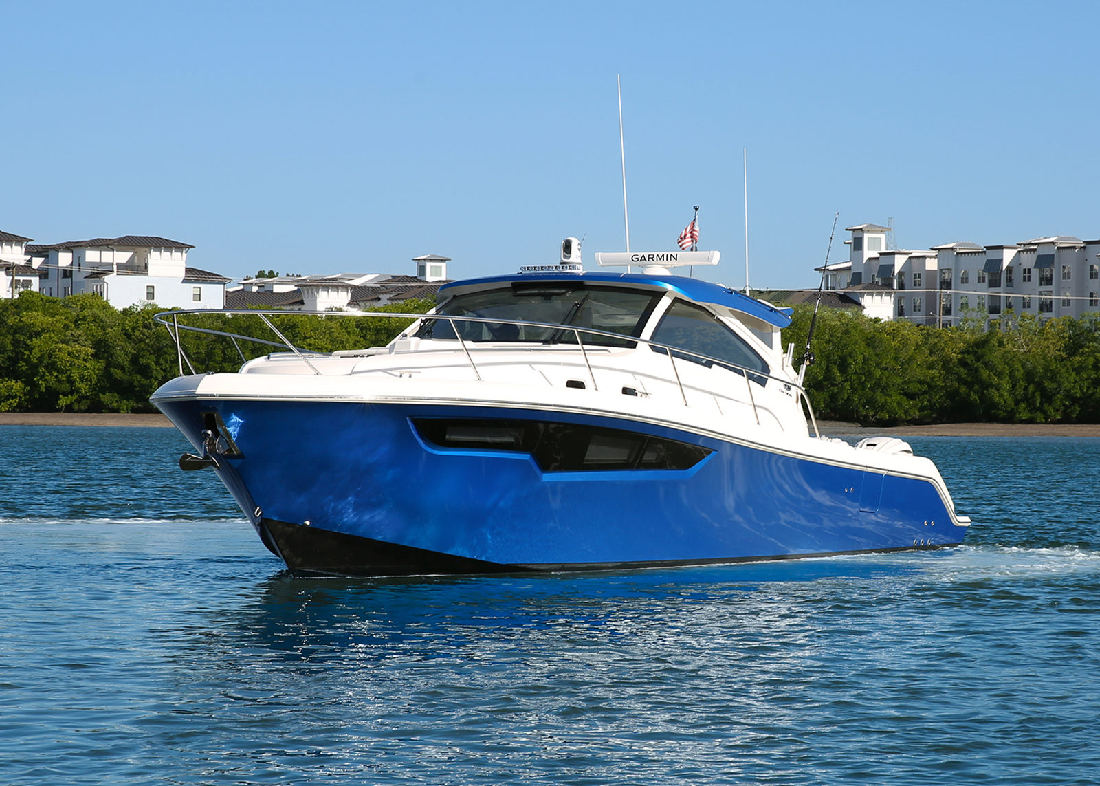 Triple Yamaha® Digital 450 XTO (Pearlescent White) with Integrated Electric Steering (DES), Helm Master® EX Digital Electronic Control (DEC) and Yamaha® Joystick Control with Full Maneuverability (Set Point™ and Autopilot), Multifunction Display Interface, Manual Engine Flushing System.