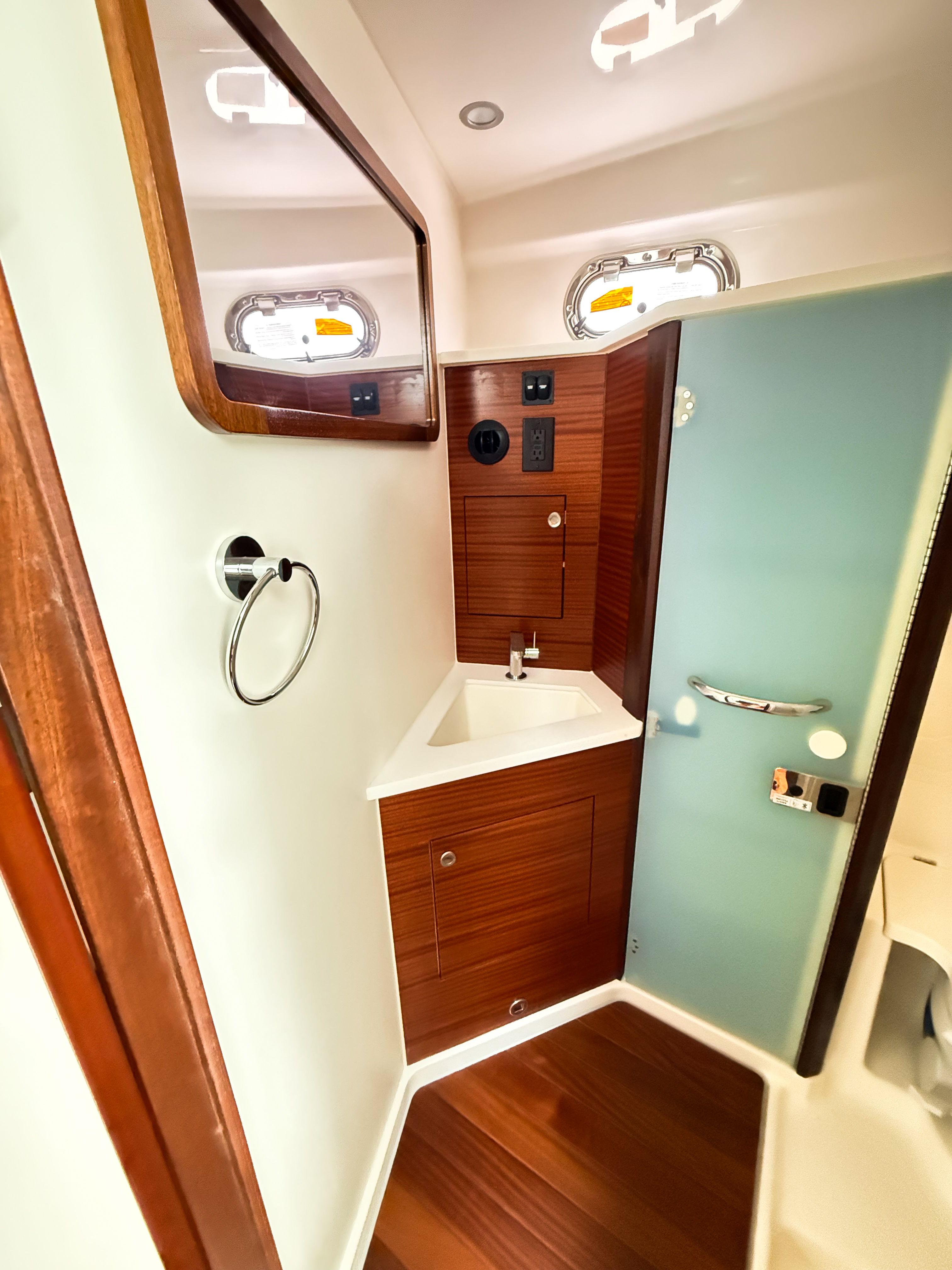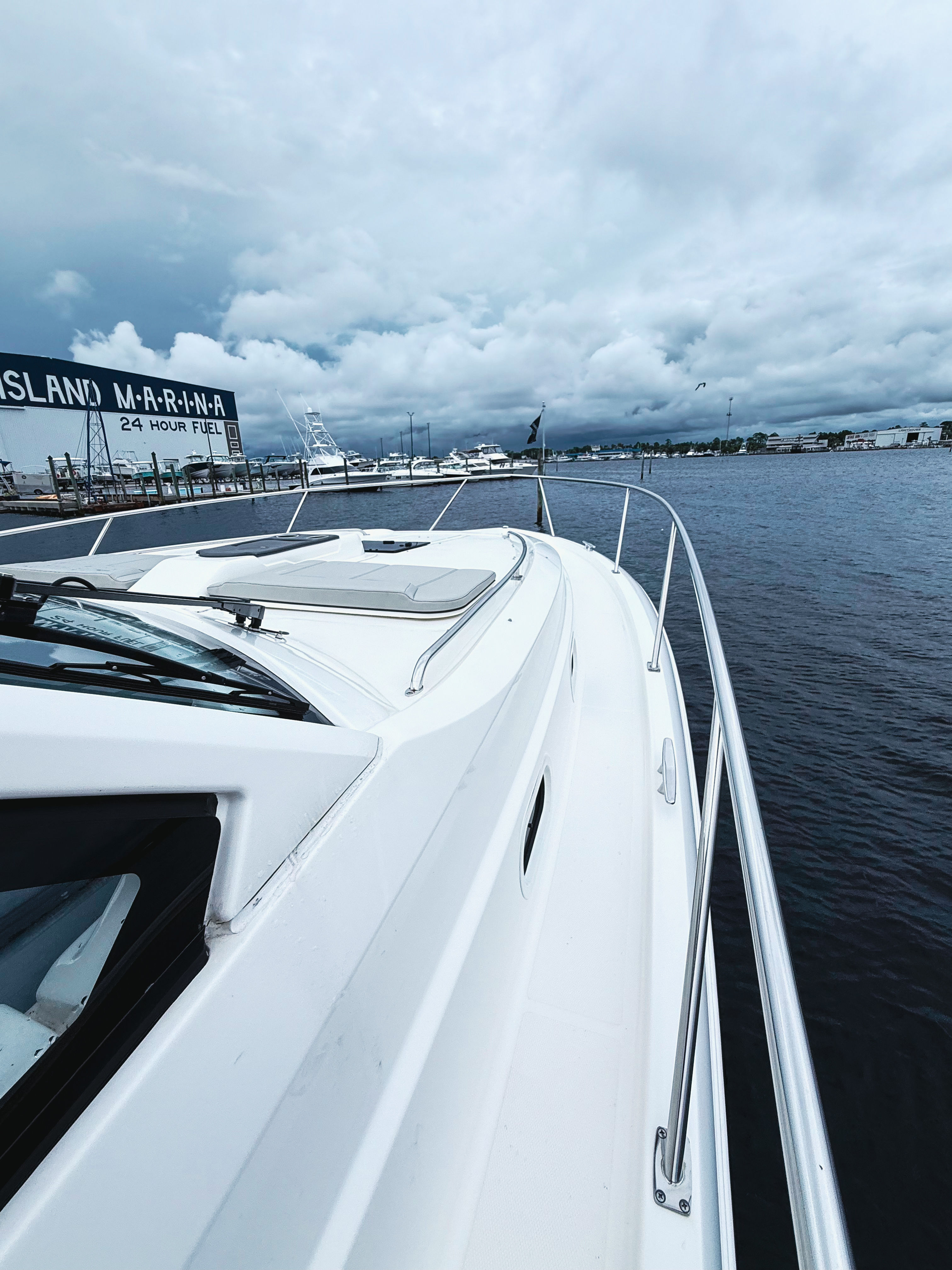 Beyond its impressive performance and luxurious amenities, the Pursuit OS 405 is designed with practicality in mind. The hardtop-mounted rod holders make it easy to transition from cruising to fishing, while the advanced navigation and safety features ensure you can explore new waters with confidence. The aft curtain upgrade offers protection from wind and spray, making it easier to enjoy your time on the water in varying conditions.Docking and maneuvering are simplified by the vessel’s responsive handling and triple-engine setup, allowing for precise control in tight spaces. The OS 405’s efficient design also means you can spend more time enjoying the water and less time worrying about maintenance or fuel consumption. Ample storage throughout the boat ensures that all your gear, supplies, and personal items are organized and easily accessible, making every outing smooth and stress-free.