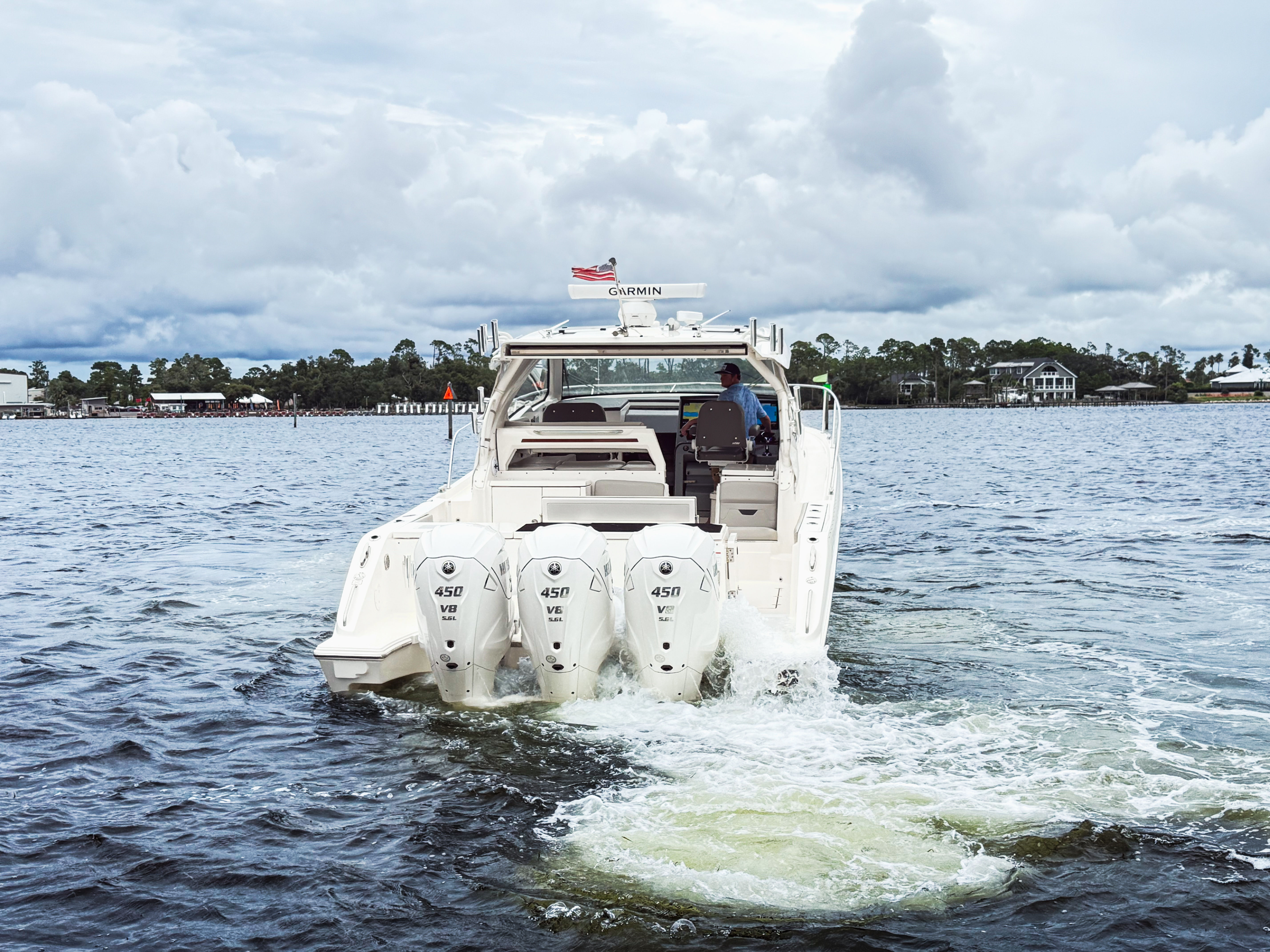 - Triple Yamaha® Digital 450 XTO (Pearlescent White) w/Integrated Electric Steering (DES), Helm Master® EX Digital Electronic Control (DEC) and Yamaha® Joystick Control with Full Maneuverability (Set PointTM and Autopilot), Multifunction Display Interface, Manual Engine Flushing System