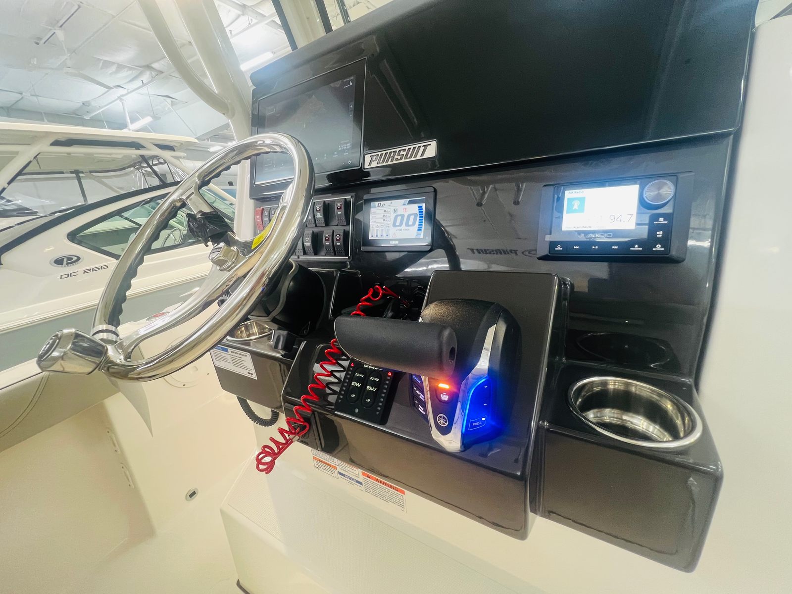 At the heart of the Pursuit S 248 is a powerful Yamaha Digital F300 V6 Offshore engine, finished in a stunning Pearlescent White. With 300 horsepower at your command, this Center Console boat is engineered for exhilarating performance, whether you’re cruising along the coastline, heading offshore for a day of fishing, or making a quick run to your favorite waterfront restaurant. The integrated Digital Electric Steering (DES) and Helm Master EX Digital Electronic Control (DEC) system provide precise, effortless handling and smooth throttle response, ensuring you’re always in complete control. This advanced setup not only enhances your boating experience but also delivers the reliability and efficiency that Yamaha engines are known for.