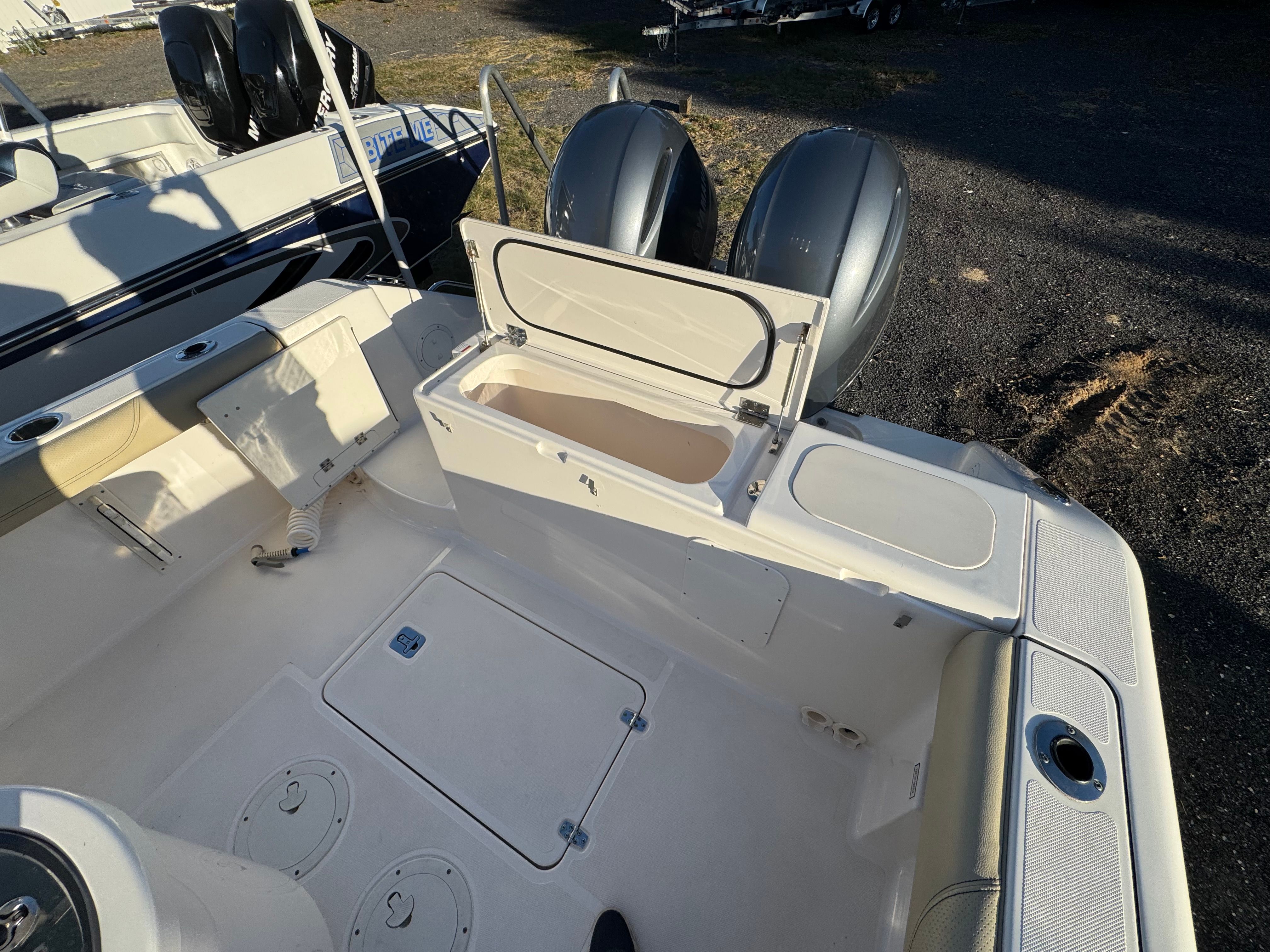 Equipped with twin engines boasting a combined 300 horsepower, the Pursuit S 260 Center Console is engineered for exhilarating performance on the water. The dual-engine setup provides impressive acceleration, smooth cruising, and the confidence to tackle a variety of conditions, from calm lakes to choppy coastal waters. Whether you’re heading out for an early morning fishing expedition or enjoying a leisurely sunset cruise, this Pursuit boat for sale delivers the power and responsiveness you need for a truly enjoyable boating experience. The efficient engine configuration also contributes to better fuel economy, allowing you to spend more time on the water and less time at the pump.