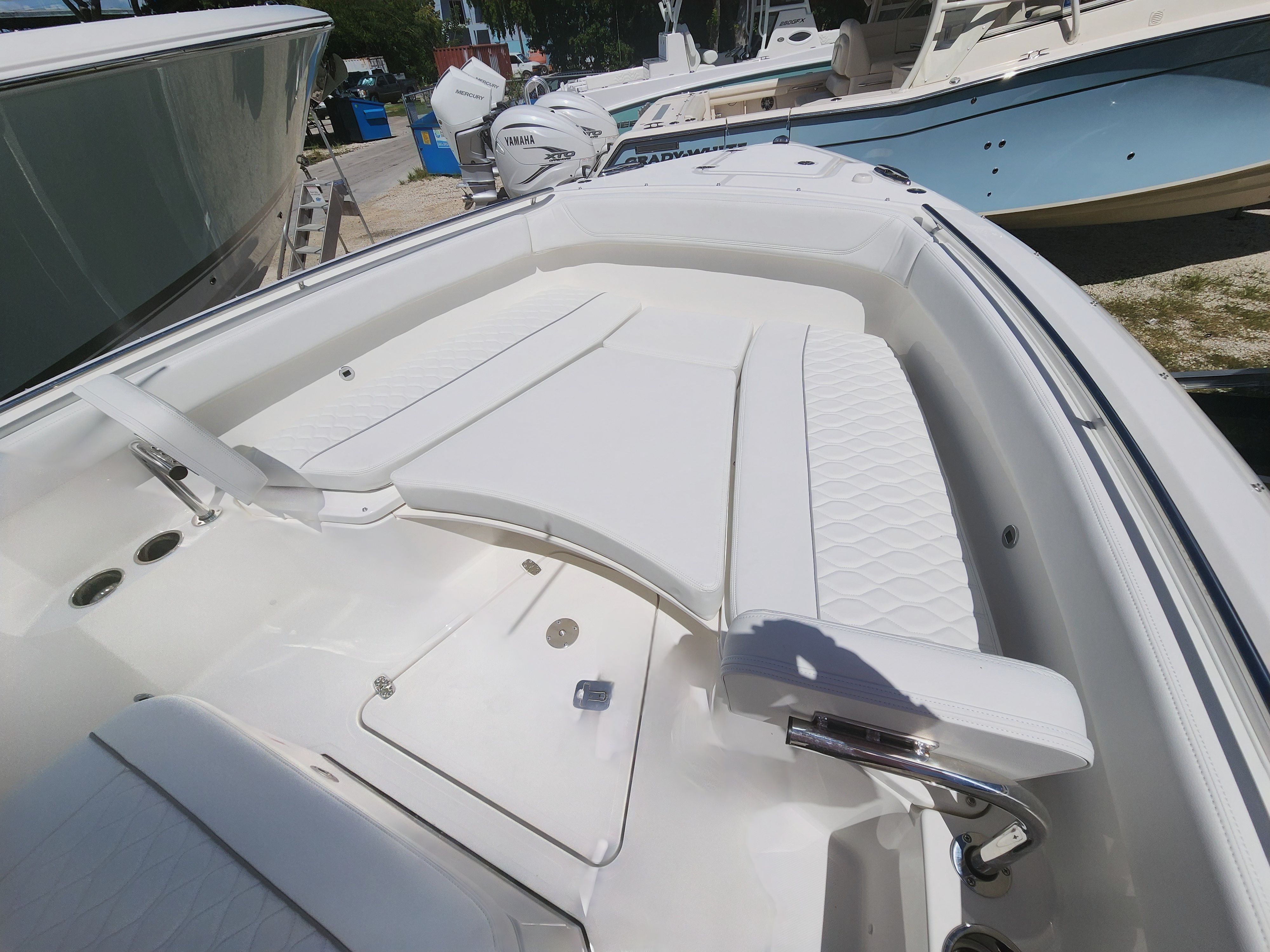 Owning the Pursuit S 268 Center Console boat means embracing a lifestyle of fun, relaxation, and adventure. The spacious layout and thoughtful design make it easy to entertain guests, enjoy sun-soaked afternoons, or embark on memorable fishing trips. The advanced audio system transforms every outing into a celebration, while the accent lighting sets the mood for evening cruises. Comfortable seating options throughout the boat ensure everyone has a place to unwind, whether you’re lounging on the sunpad, relaxing in the bow, or enjoying the cockpit table with friends.The Pursuit S 268’s ergonomic helm and premium seating provide unmatched comfort for long days on the water, while the fold-down seats and adjustable features accommodate a variety of activities and group sizes. The dedicated storage solutions keep your gear organized and accessible, allowing you to focus on enjoying your time on the water. With its stylish design and high-end finishes, this Pursuit boat for sale is as much a statement piece as it is a functional vessel.