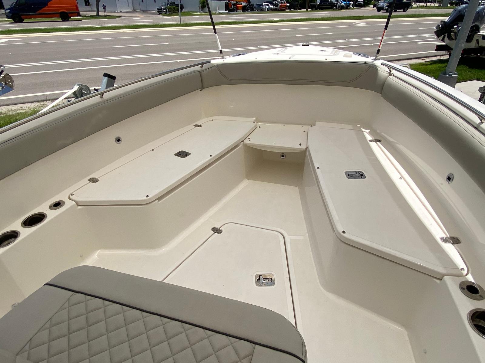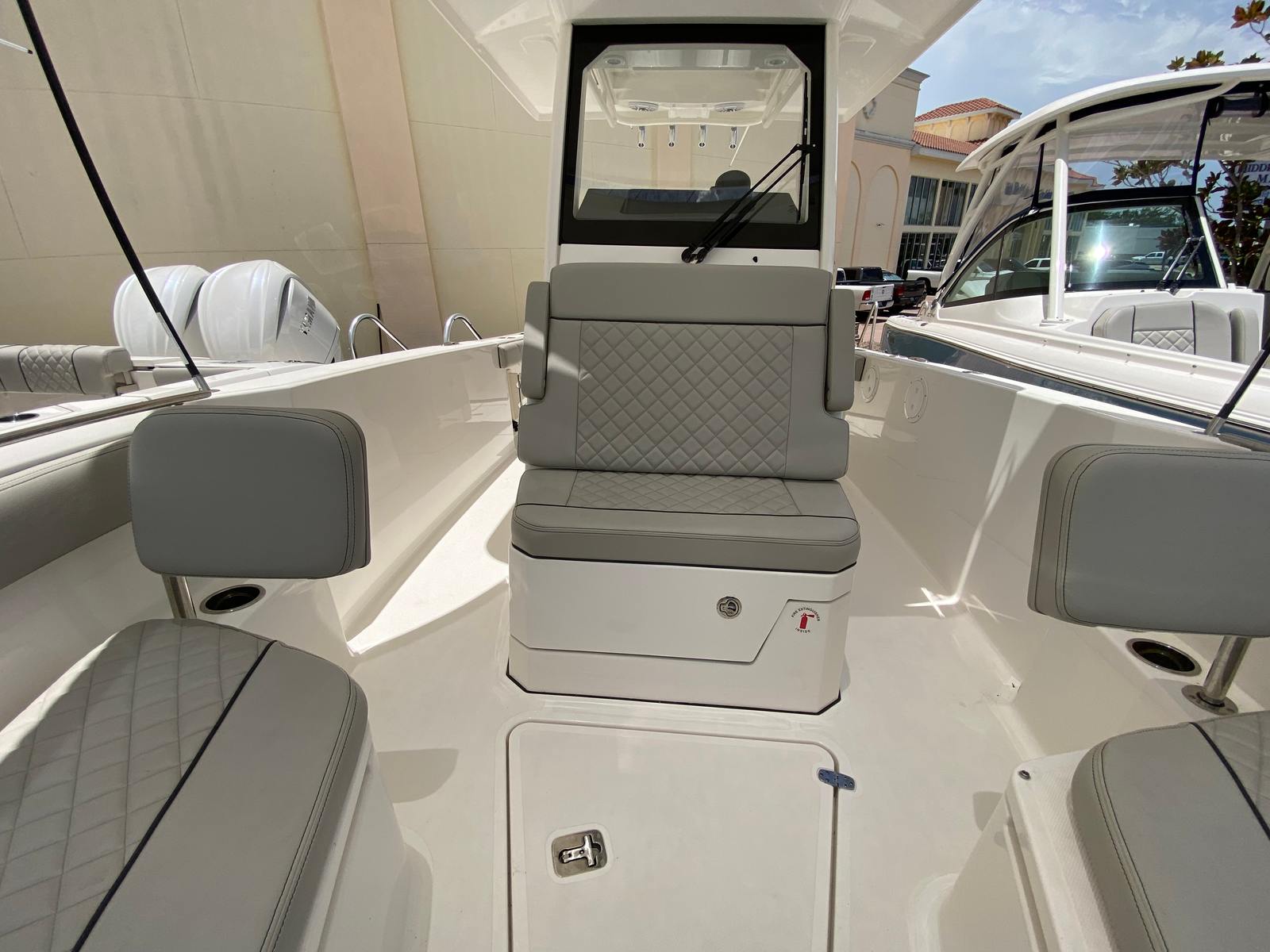 The Pursuit S 268 is loaded with premium features that set it apart from other Center Console boats for sale. The advanced windlass/anchoring system provides effortless anchoring, allowing you to secure your spot with the push of a button. Enjoy your favorite music with the premium stereo, amp, and speakers, complete with Sirius satellite radio for endless entertainment options. The premium hardtop, paired with a windshield and wiper, offers protection from the elements while maintaining clear visibility. The hardtop liner in fresh white adds a touch of elegance, complementing the boat’s sophisticated aesthetic.Navigation is a breeze thanks to the Garmin widescreen 12" display package, which includes a second 12" display for enhanced situational awareness. The cadet gray leaning post cover adds both style and durability, while the all-color spectrum underwater lights (three in total) create a captivating ambiance for evening cruises. Bow seating with port and starboard backrests ensures comfort for all passengers, and blue LED accent lights (mid-level, four in total) provide a modern touch that enhances the boat’s visual appeal.