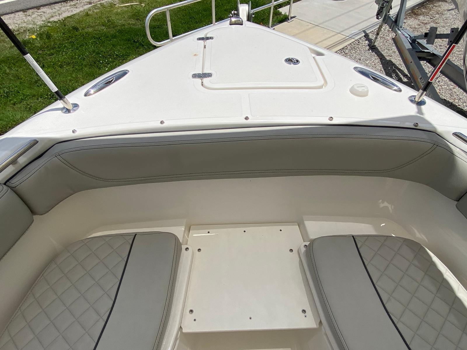 This Center Console boat for sale is as practical as it is luxurious. The windlass/anchoring system streamlines the process of securing your boat, saving time and effort during stops. The dual Garmin displays offer reliable navigation, helping you chart your course and avoid hazards with precision. The leaning post cover protects key areas from wear and tear, while the hardtop and windshield shield you from the elements.Storage solutions throughout the Pursuit S 268 make it easy to stow gear, tackle, and personal items, keeping the deck organized and clutter-free. The efficient engine setup ensures you get the most out of every gallon of fuel, making longer trips more enjoyable and cost-effective. Docking is simplified by the boat’s responsive handling, allowing you to maneuver confidently in tight spaces.