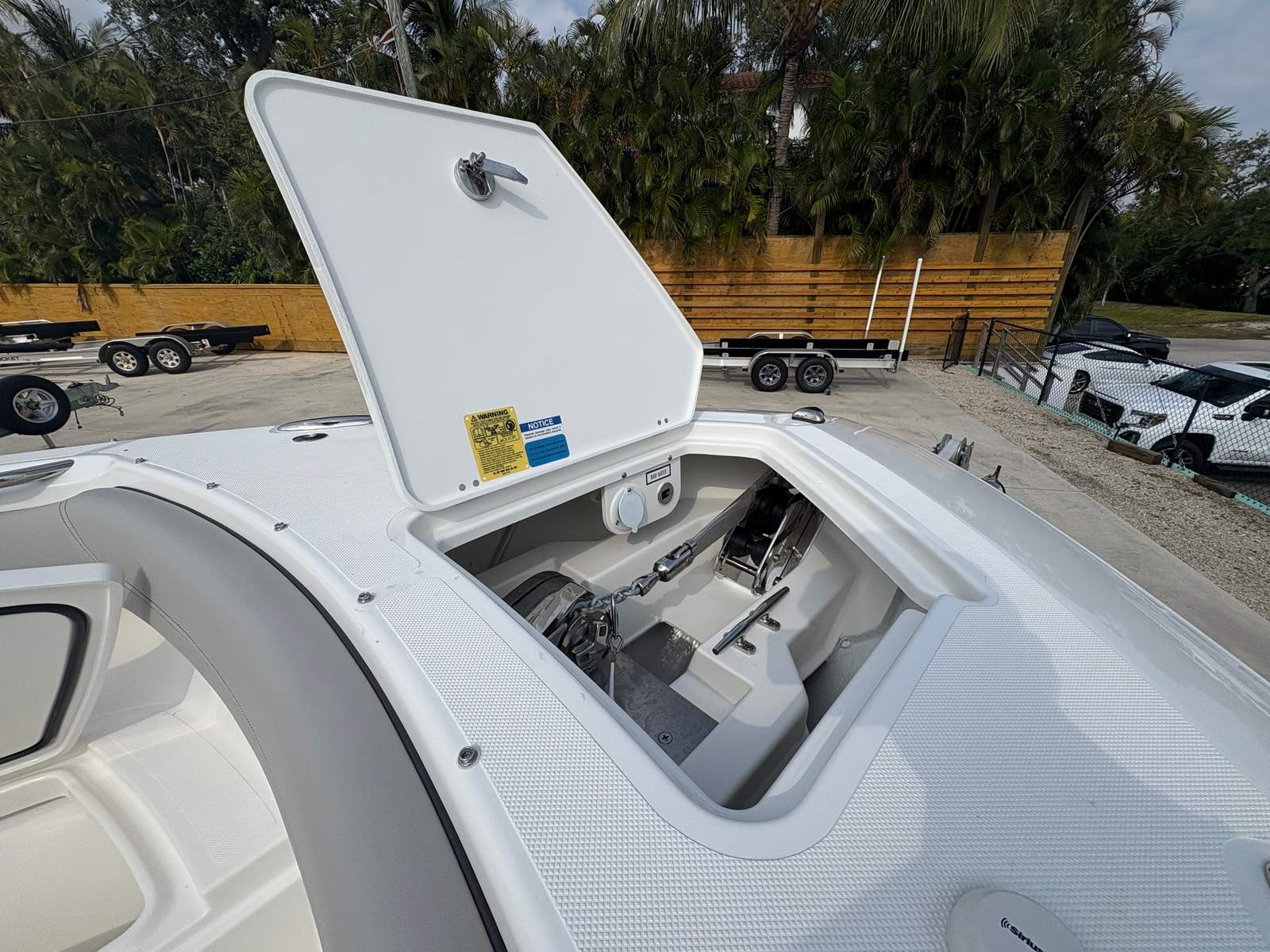 The Pursuit S 288 Center Console is packed with features that elevate your boating experience. The Fresh White hull color, complemented by the Black Bootstripe with Black Accent, creates a modern and sophisticated look. The helm and footrest are finished in Carbon, providing a stylish and comfortable command center, while the hardtop liner in Fresh White adds to the boat’s clean and contemporary aesthetic.For easy access to and from the water, the hullside boarding ladder is a practical addition, making swimming, diving, or boarding from the dock a breeze. Dockside power with a battery charger ensures your boat is always ready for action, keeping your systems powered up and your batteries in top condition.Lighting is a standout feature on the S 288, with all color spectrum underwater lights and blue LED accent lights at the mid-level. These lighting options not only enhance the boat’s visual appeal but also create a vibrant and inviting atmosphere for evening cruises or dockside gatherings.