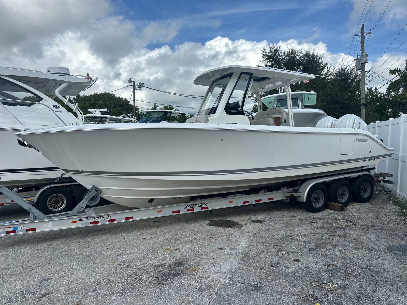 The 2026 Pursuit S 288 Center Console is a 30-foot marvel that combines modern design with cutting-edge technology. Pursuit boats are renowned for their craftsmanship, and the S 288 model exemplifies this reputation with its Fresh White hull color and Platinum Boot Stripe accented with Platinum details. The Hardtop Liner also features a Fresh White finish, while the helm and footrest are elegantly styled in Carbon, creating a sophisticated and inviting atmosphere. Whether you’re cruising along the coastline or anchored at your favorite spot, this Pursuit boat for sale offers a striking presence and unmatched comfort.