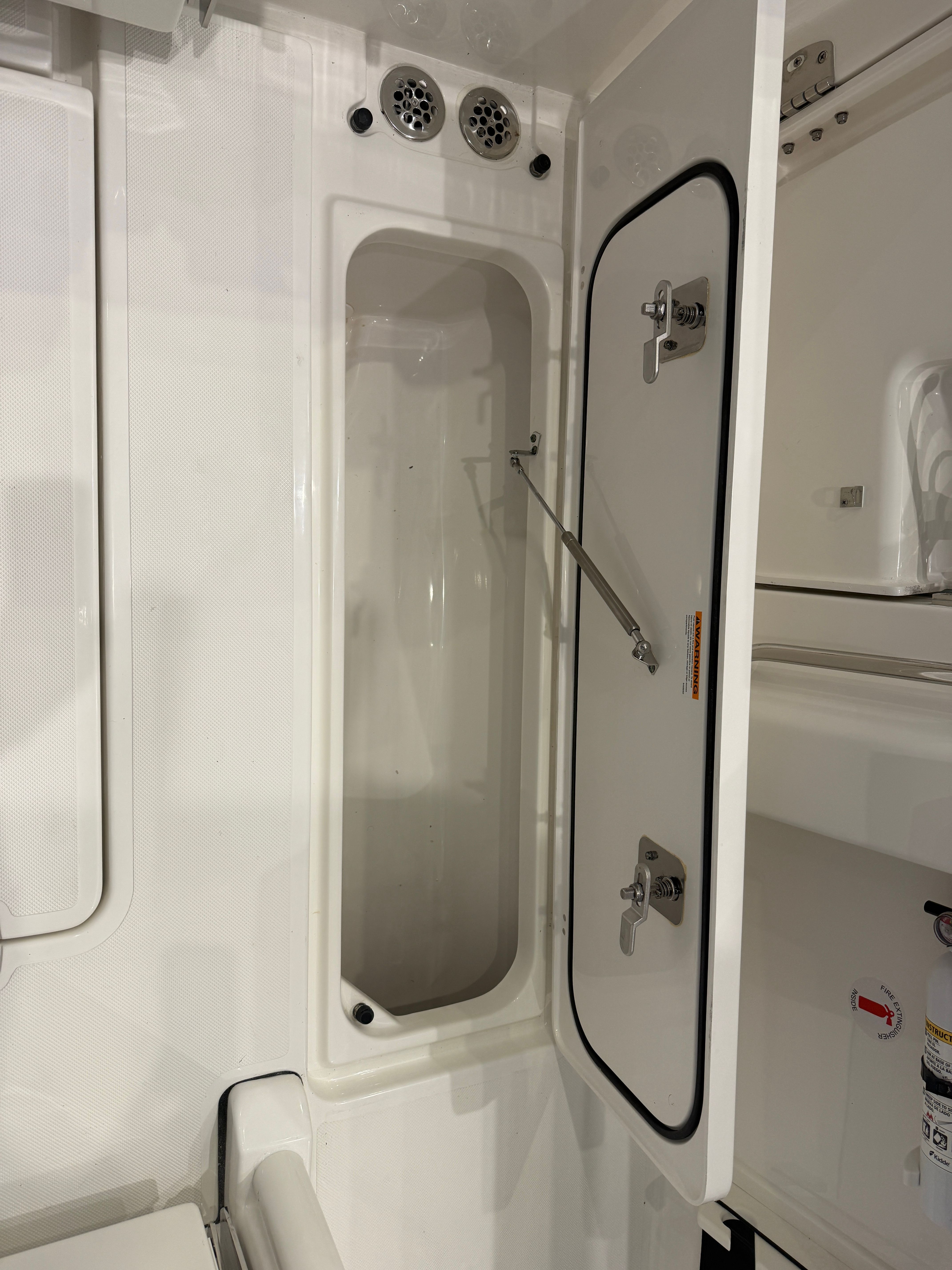 The Pursuit S 288 is packed with premium features designed to enhance your boating lifestyle. The twin Yamaha F300XSB2 engines are complemented by a joystick control system, allowing for precise handling and stress-free docking. The hull’s Sea Mist color and Platinum boot stripe with accent add a touch of elegance, while the carbon helm and footrest provide a modern, sporty feel at the helm station. The hardtop liner in Sea Mist not only looks fantastic but also offers protection from the elements, ensuring comfort during long days on the water.For added convenience, the S 288 is equipped with 110V/60HZ dockside power and a battery charger, making it easy to keep your electronics and onboard systems powered up. The helm control hardtop-mounted LED spotlight enhances visibility during nighttime excursions, adding an extra layer of safety and functionality. The white exterior sport upholstery is both stylish and durable, designed to withstand the rigors of marine environments while providing a comfortable seating experience for you and your guests.
