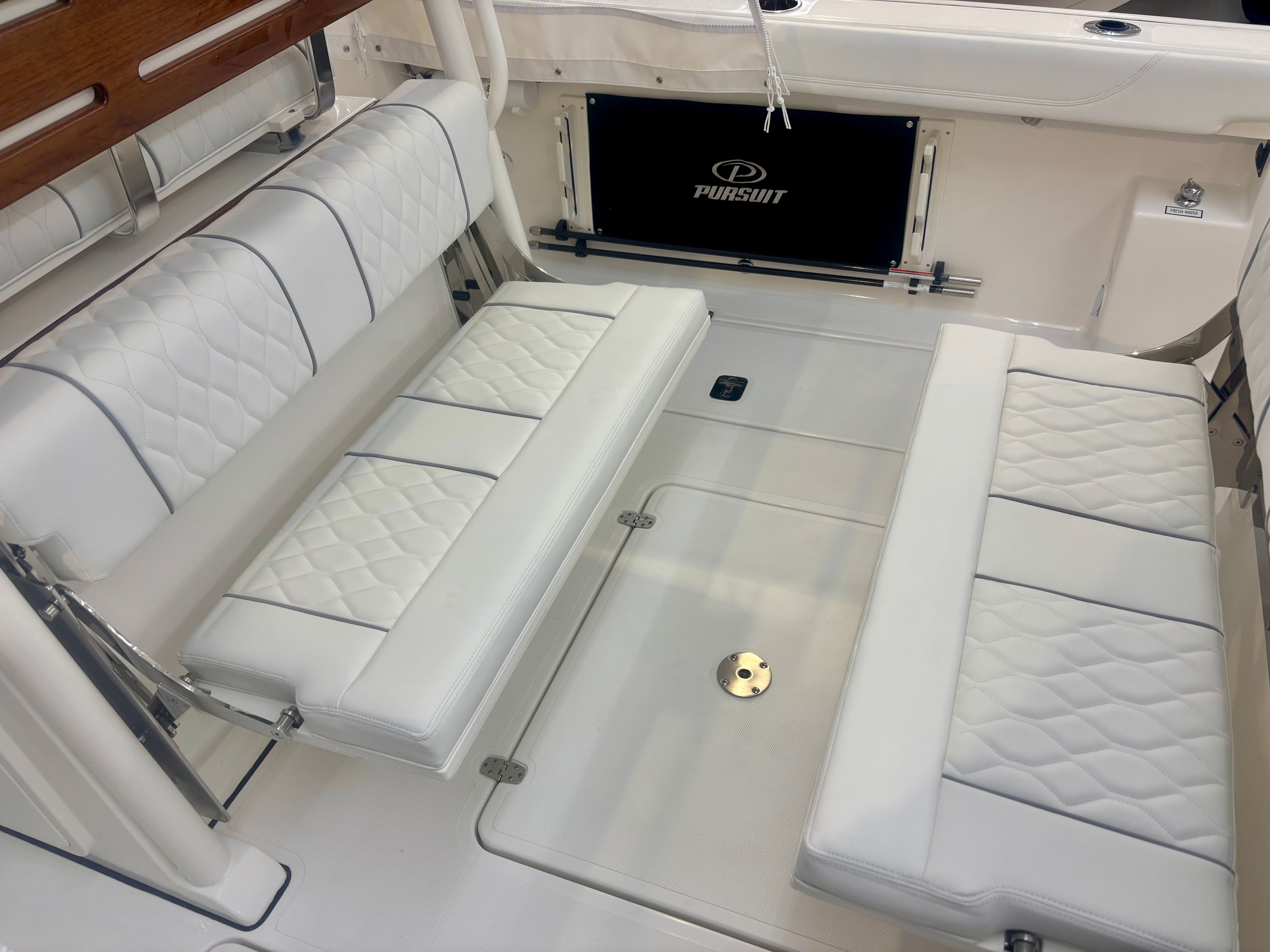Owning the Pursuit S 288 center console means embracing a lifestyle of fun, relaxation, and adventure. The spacious layout is perfect for hosting friends and family, with ample seating and a thoughtfully designed cockpit that encourages socializing. The dedicated storage for the fiberglass table and the stowable sunshade make it easy to transition from fishing to entertaining, ensuring every outing is tailored to your needs.The advanced Yamaha engine systems not only deliver impressive speed and agility but also contribute to a quieter, smoother ride. The joystick control system, with features like Set Point and Autopilot, takes the stress out of docking and maneuvering, allowing you to focus on enjoying your time on the water. The Pursuit S 288’s premium finishes and attention to detail create an environment where comfort and luxury are always within reach.
