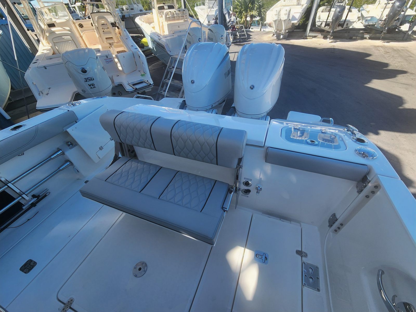 Owning the Pursuit S 288 means embracing a lifestyle of fun, relaxation, and adventure. This center console boat is designed for maximum enjoyment, offering a spacious and versatile deck layout that encourages socializing, sunbathing, and water sports. The stowable sunshades provide customizable comfort, allowing you to create the perfect environment for any activity, from lounging in the shade to soaking up the sun. The dedicated storage for the fiberglass table ensures your deck remains clutter-free, while the LED accent lighting transforms evening outings into memorable events.The Pursuit S 288’s powerful twin Yamaha engines not only deliver thrilling performance but also inspire confidence with their reliability and efficiency. Whether you’re chasing the next big catch or exploring new destinations, you’ll appreciate the smooth ride and responsive handling that make every trip enjoyable. The advanced joystick control system takes the stress out of docking and maneuvering, so you can spend more time having fun and less time worrying about logistics.