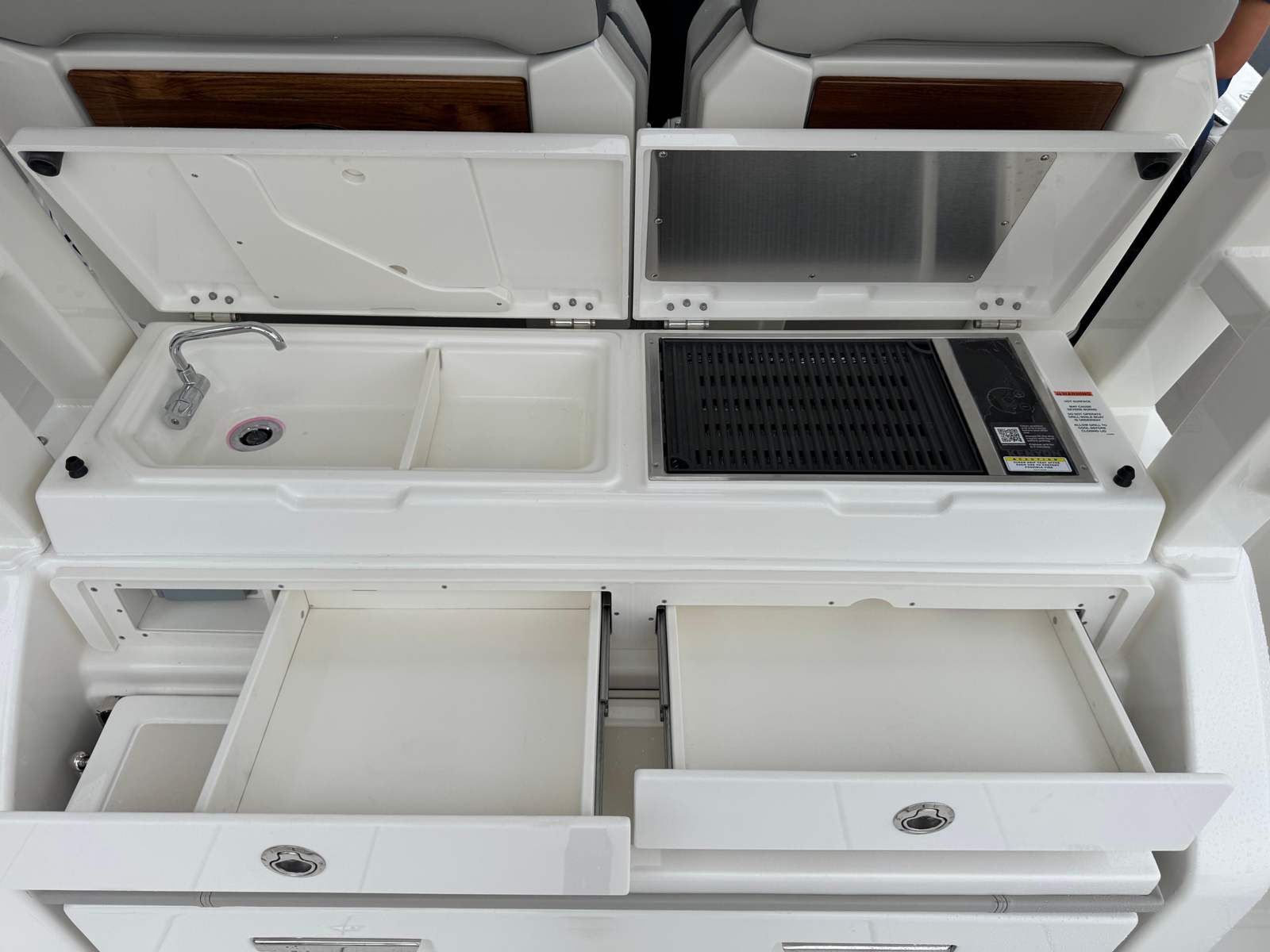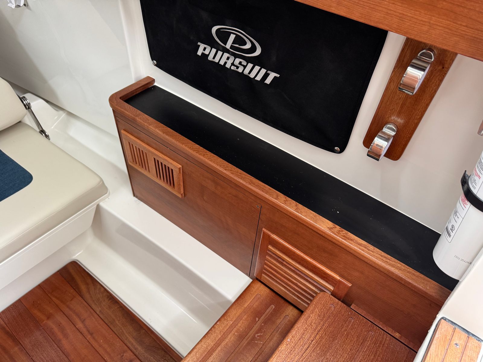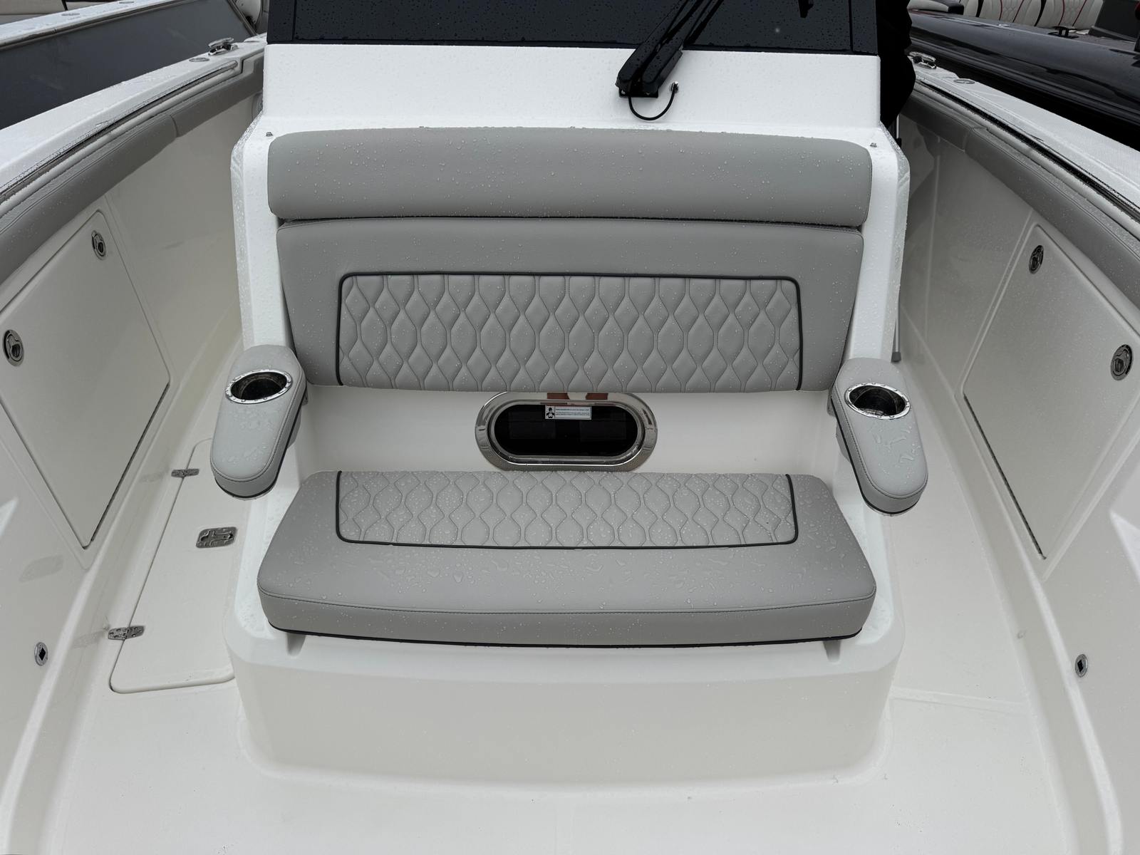 The Pursuit S 328 is loaded with features designed to enhance your boating experience. The hullside’s fresh white finish and platinum bootstripe create a visually stunning profile, while the black canvas adds a touch of elegance and durability. The carbon helm provides a modern, high-tech command center, ensuring that every control is within easy reach and intuitively arranged. Inside, the tranquil sea interior offers a serene and inviting atmosphere, perfect for relaxing after a day of excitement.Comfort is further elevated with 110v/60Hz cabin air conditioning, ensuring a cool and pleasant environment no matter the weather outside. The 110v/60Hz cockpit grill allows you to prepare delicious meals right on board, transforming your boat into a floating oasis for entertaining family and friends. For anglers, the four bow rod holders provide ample space to store your gear and keep your favorite rods at the ready.