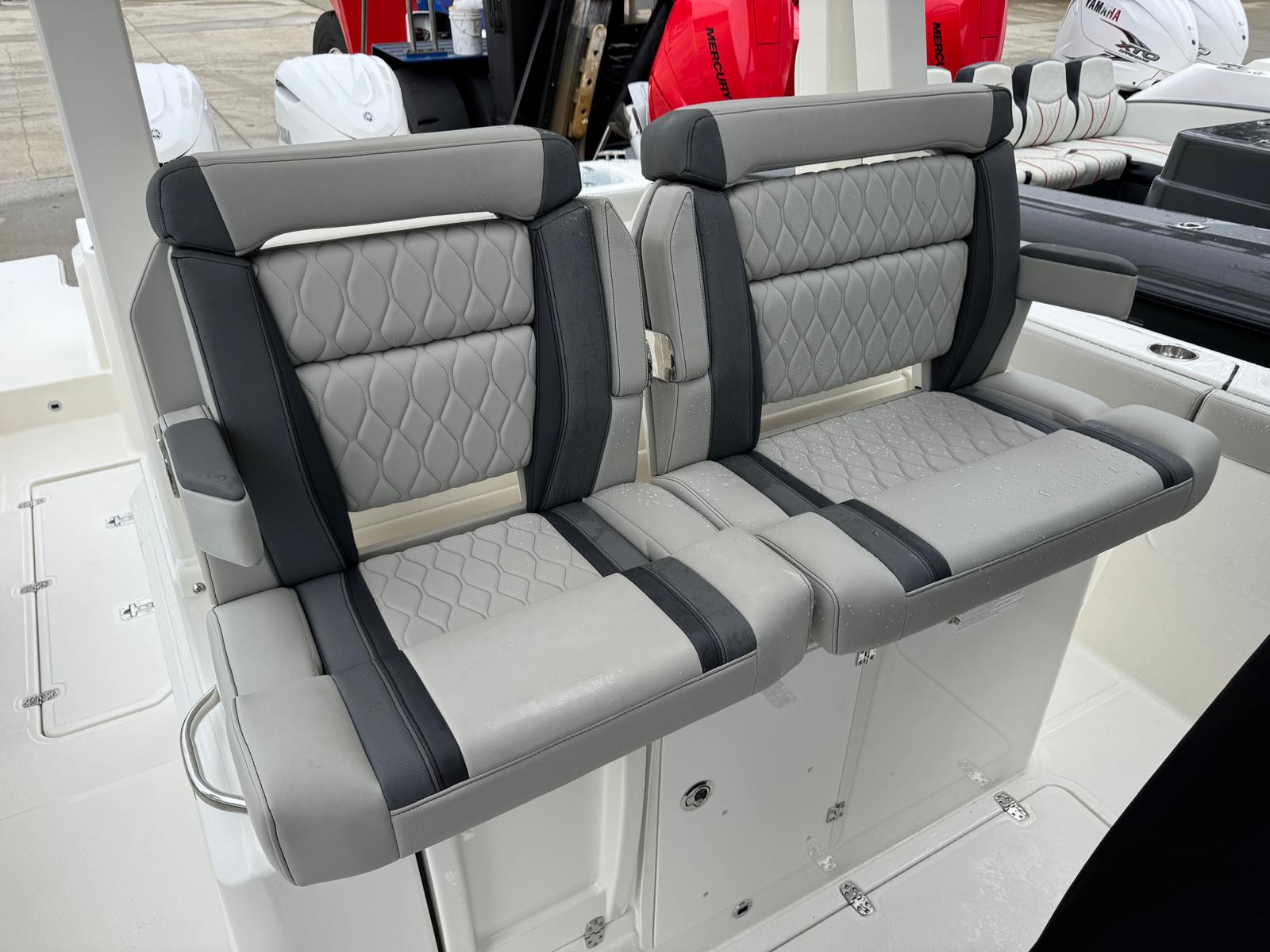 Power and precision are at the heart of the Pursuit S 328. Equipped with twin Yamaha F350 engines in a striking pearlescent white finish, this center console boat boasts a combined 700 horsepower. The advanced Yamaha Joystick system offers effortless maneuverability, making docking and tight turns a breeze, even in challenging conditions. Whether you are cruising along the coastline, heading offshore for a day of fishing, or simply enjoying a leisurely ride, the Pursuit S 328 delivers a smooth, responsive, and exhilarating performance every time you hit the water.