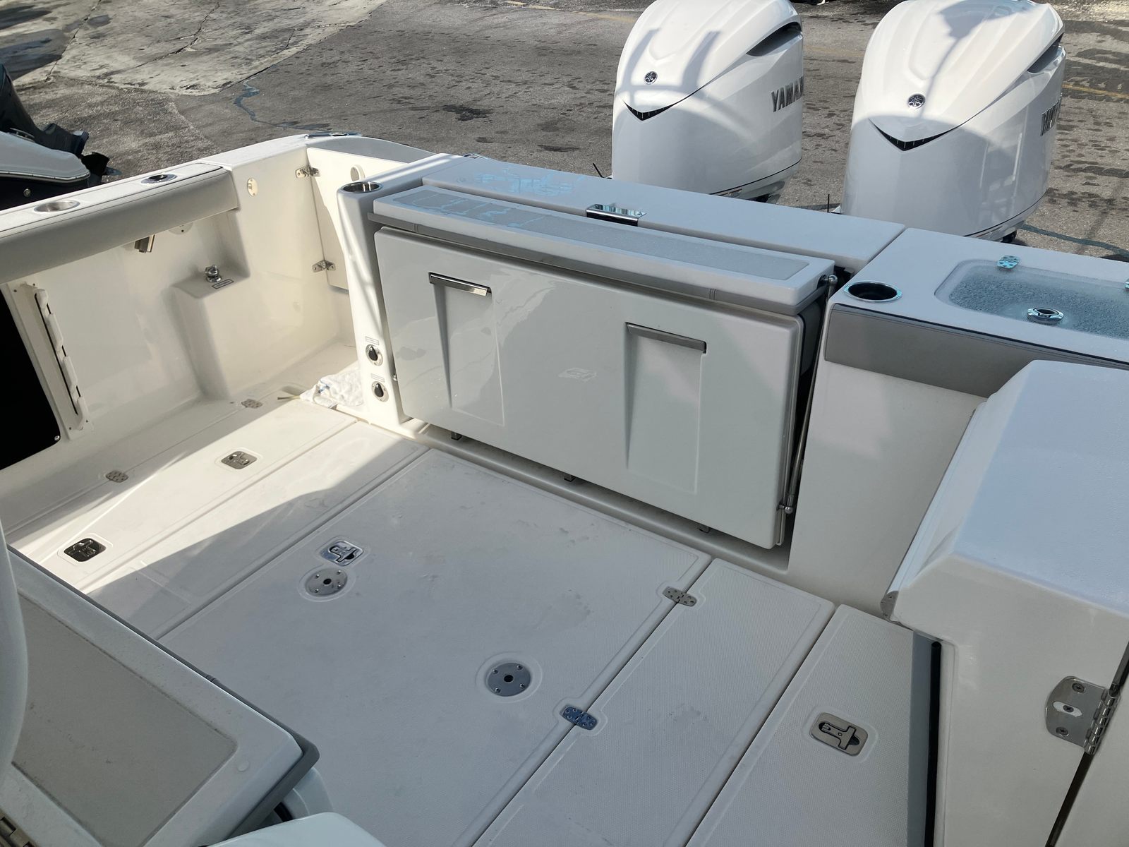 Power and precision are at the heart of the Pursuit S 328’s design. Equipped with twin Yamaha F350 engines in a striking Pearlescent White finish, this Center Console boat delivers a total of 700 horsepower. The advanced Yamaha engines are renowned for their reliability, smooth operation, and impressive acceleration, ensuring you have all the power you need for offshore excursions, watersports, or leisurely cruises. The dual-engine setup not only enhances speed and agility but also provides added safety and maneuverability, making docking and navigating tight spaces a breeze. With this level of performance, the S 328 is ready to tackle any adventure you have in mind.