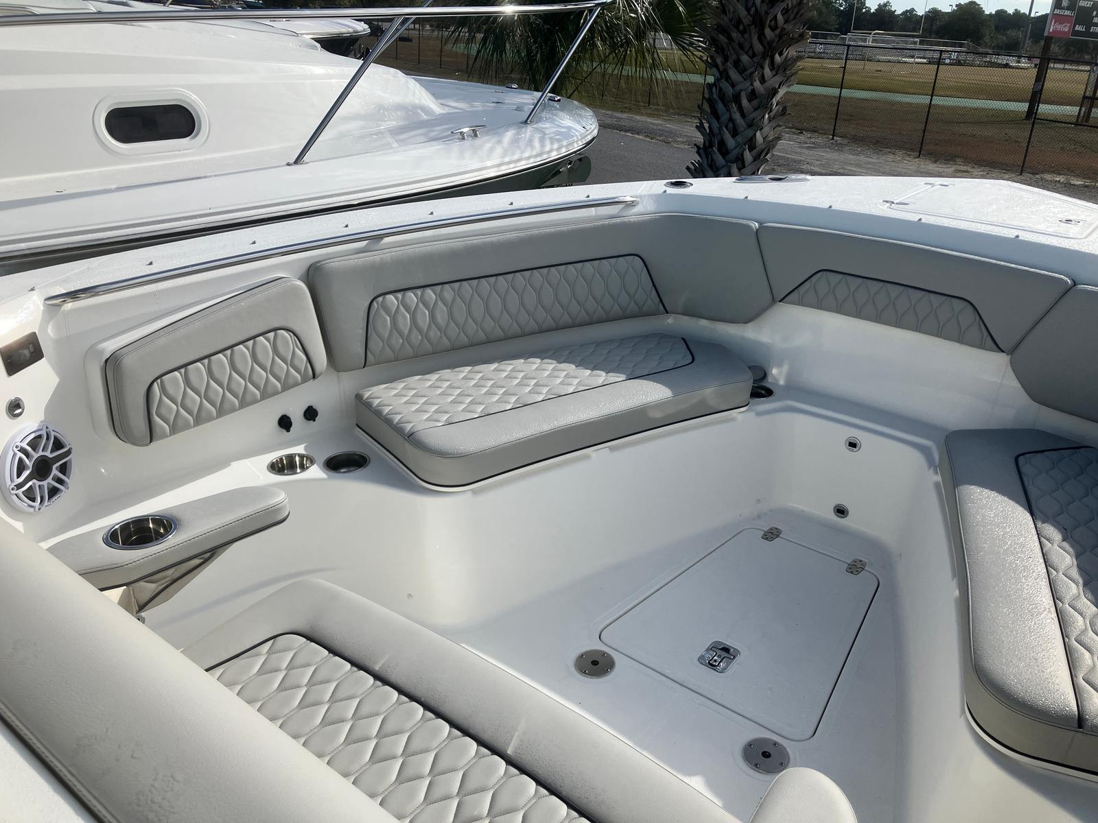 Owning the Pursuit S 328 Center Console boat means embracing a lifestyle of fun, relaxation, and unforgettable moments on the water. The spacious layout is perfect for entertaining family and friends, with ample seating and open deck space for socializing, sunbathing, or enjoying a meal. The luxurious interior fabric and protective covers ensure everyone stays comfortable, no matter the weather. The advanced helm design puts you in complete control, making navigation effortless and enjoyable. Whether you’re chasing the thrill of offshore fishing or simply cruising along the coast, the S 328 offers the versatility to suit any adventure. Its powerful twin engines guarantee exhilarating rides, while the thoughtful storage solutions keep your gear organized and accessible.