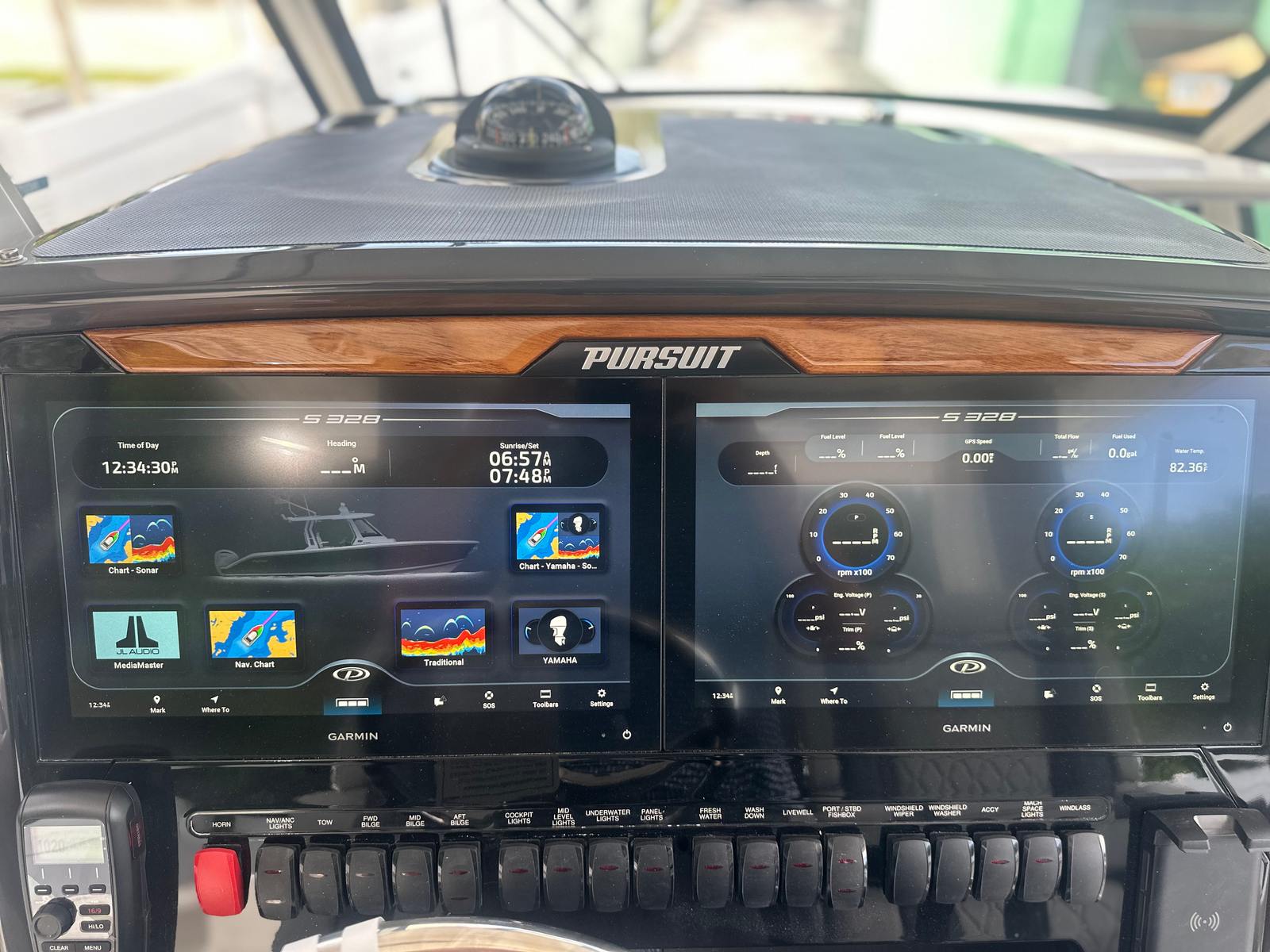 At the heart of the Pursuit S 328 are twin Yamaha Pearlescent White F350 engines, delivering a combined 700 horsepower. These powerful outboards are renowned for their reliability, smooth operation, and impressive fuel efficiency, making them ideal for both high-speed cruising and leisurely outings. The advanced Helm Master Full Maneuverability system provides precise control and effortless docking, allowing you to navigate tight spaces and challenging conditions with confidence. Whether you are chasing the horizon or exploring hidden coves, the S 328’s performance capabilities ensure a thrilling and responsive ride every time you hit the water.